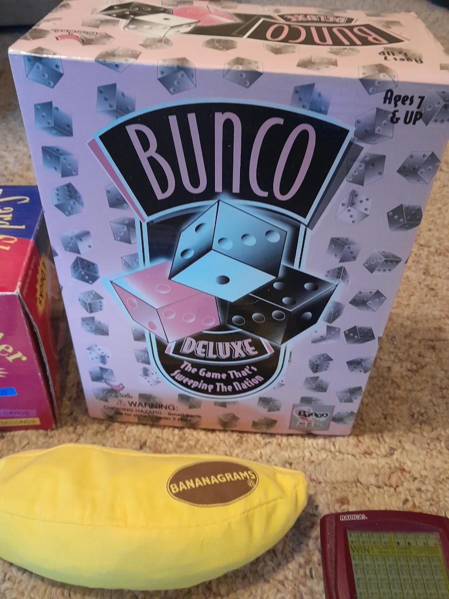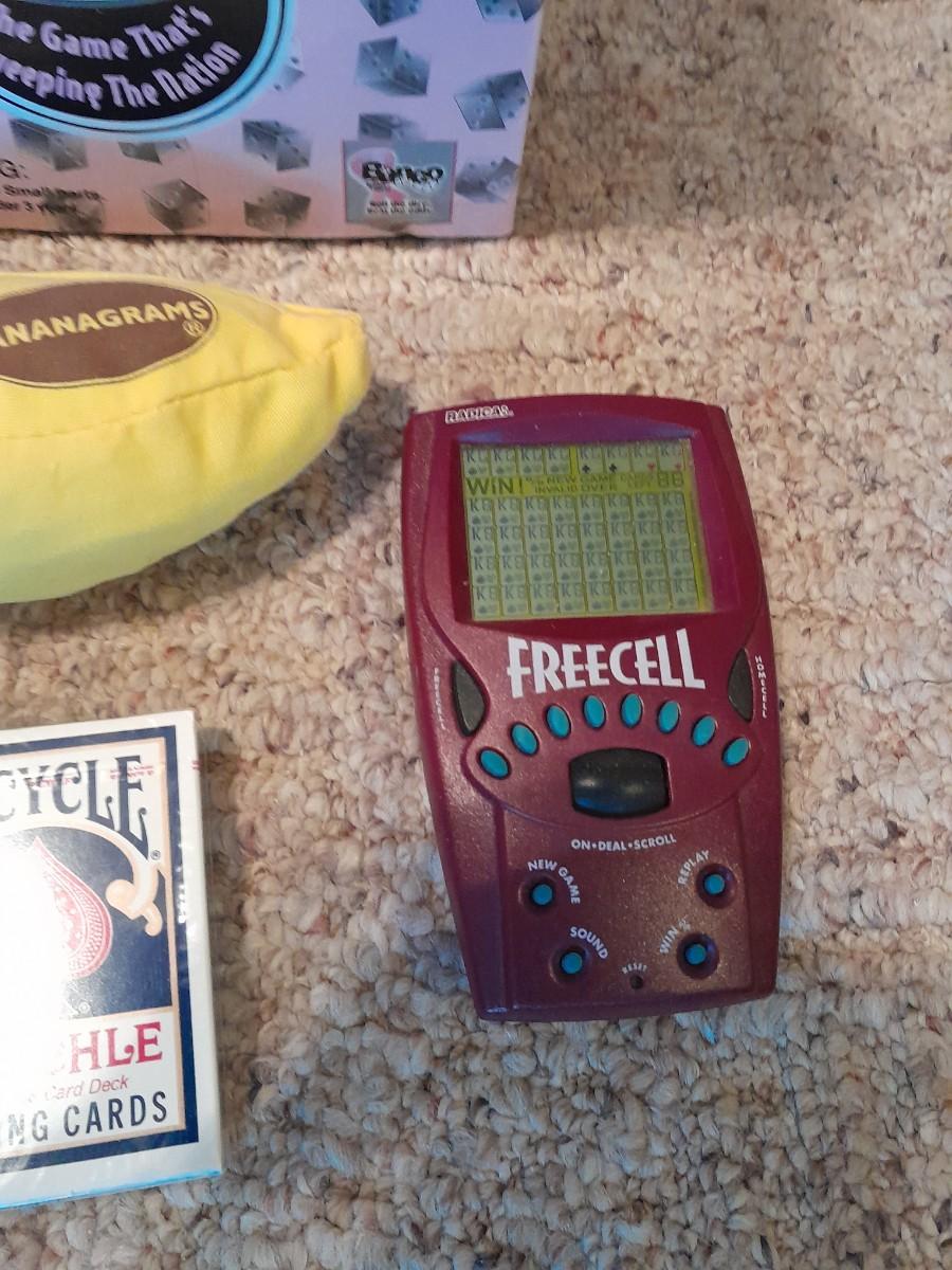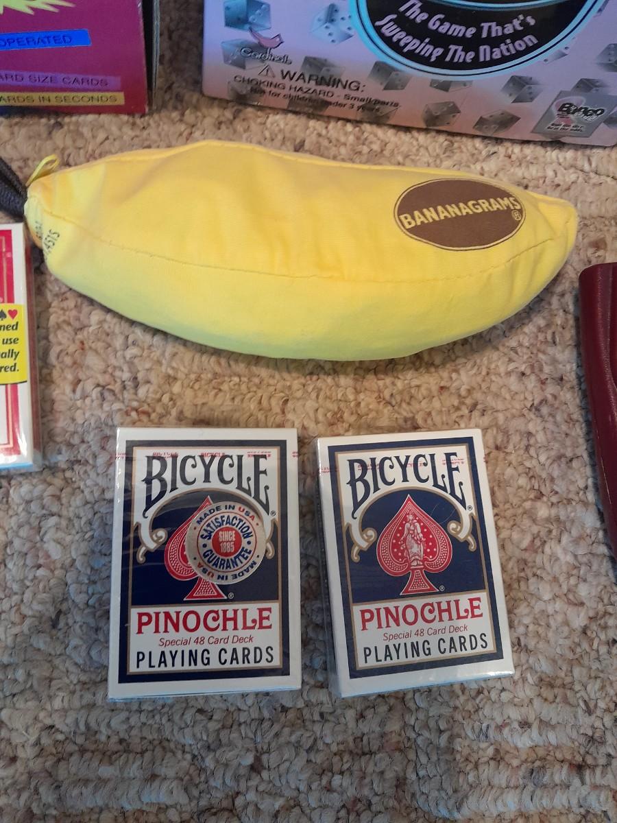 CARD SHUFFLER, BUNCO GAME, ELECTRONIC BATTERY OPERATED FREECELL, DECKS OF CARDS, AND BANANAGRAMS GAME