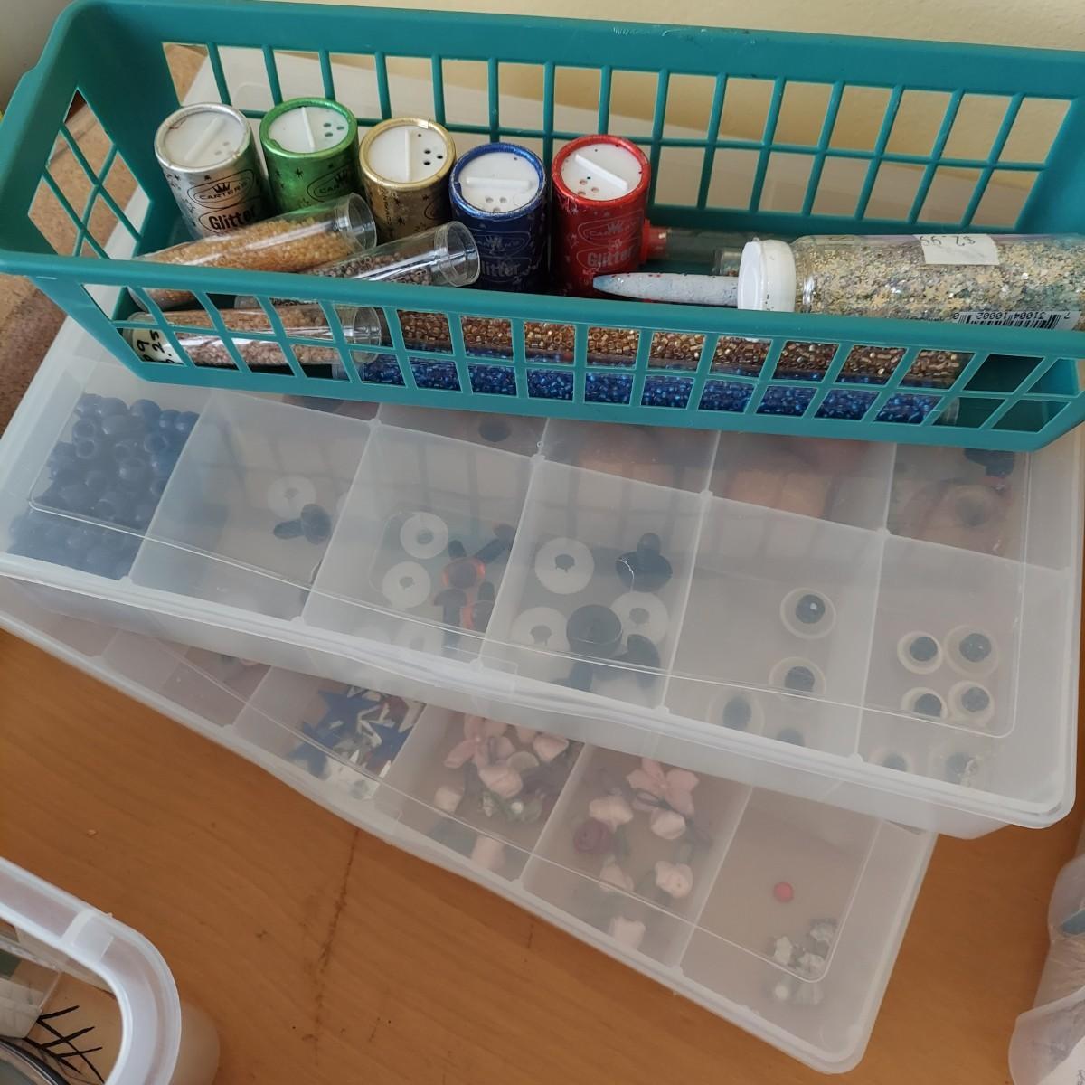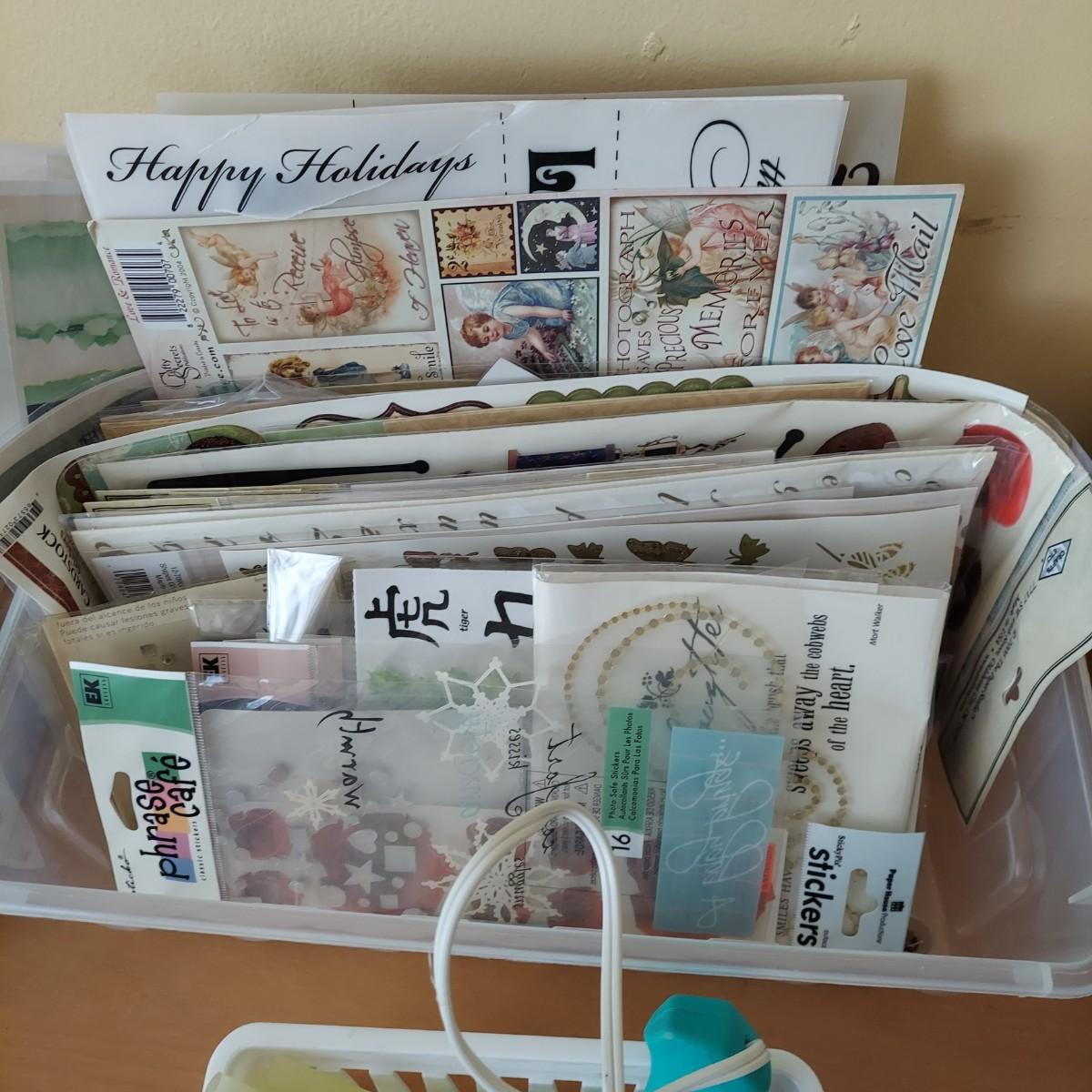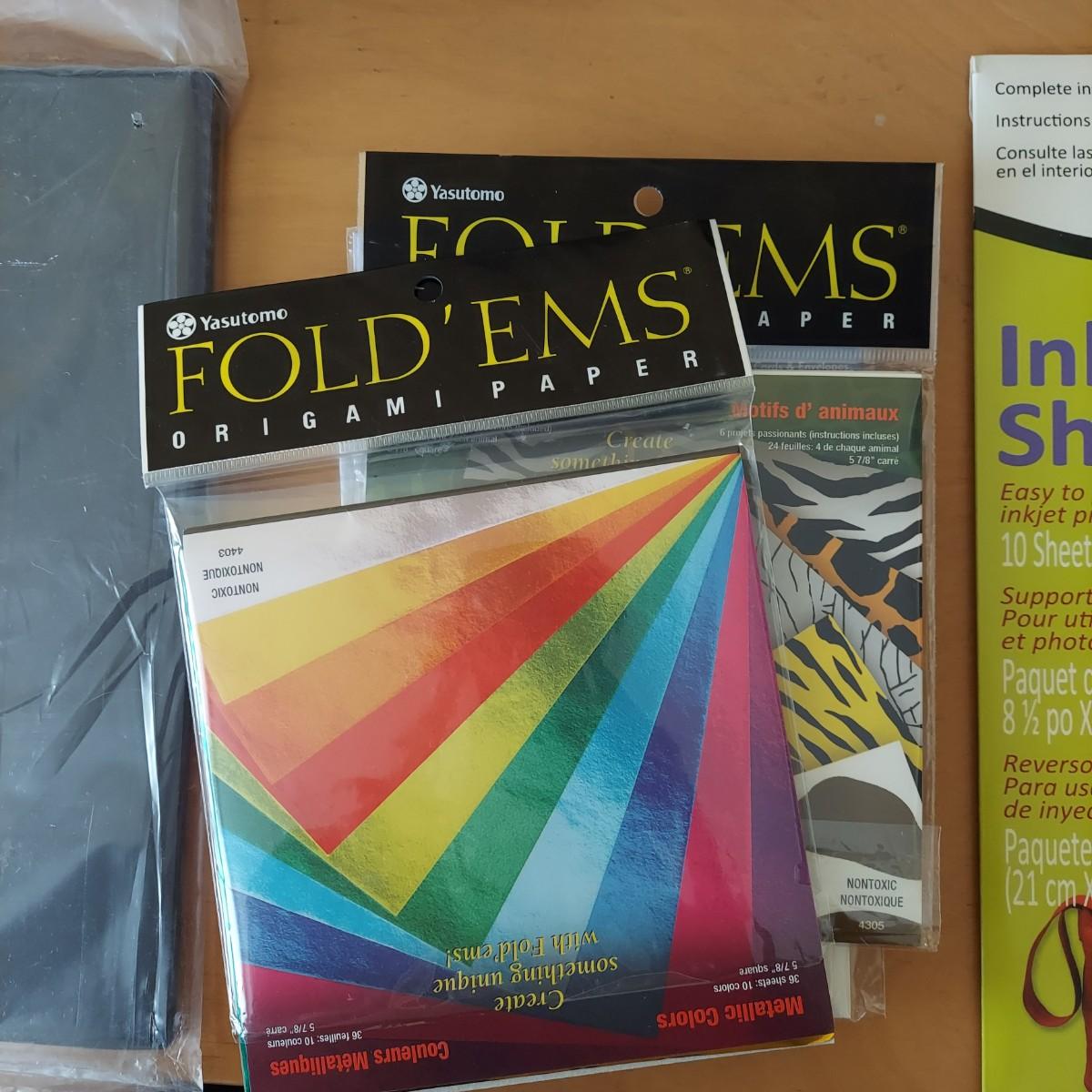 Large lot of craft supplies, mostly for paper crafts. Includes a stack of 12” x 12” and a stack of 8.5” x 11” card stock, some new in package. Plus, several rubber stamps, pre-cut photo mats, magnetic sheets, stickers, origami paper, beads and more. Please see photos for details.