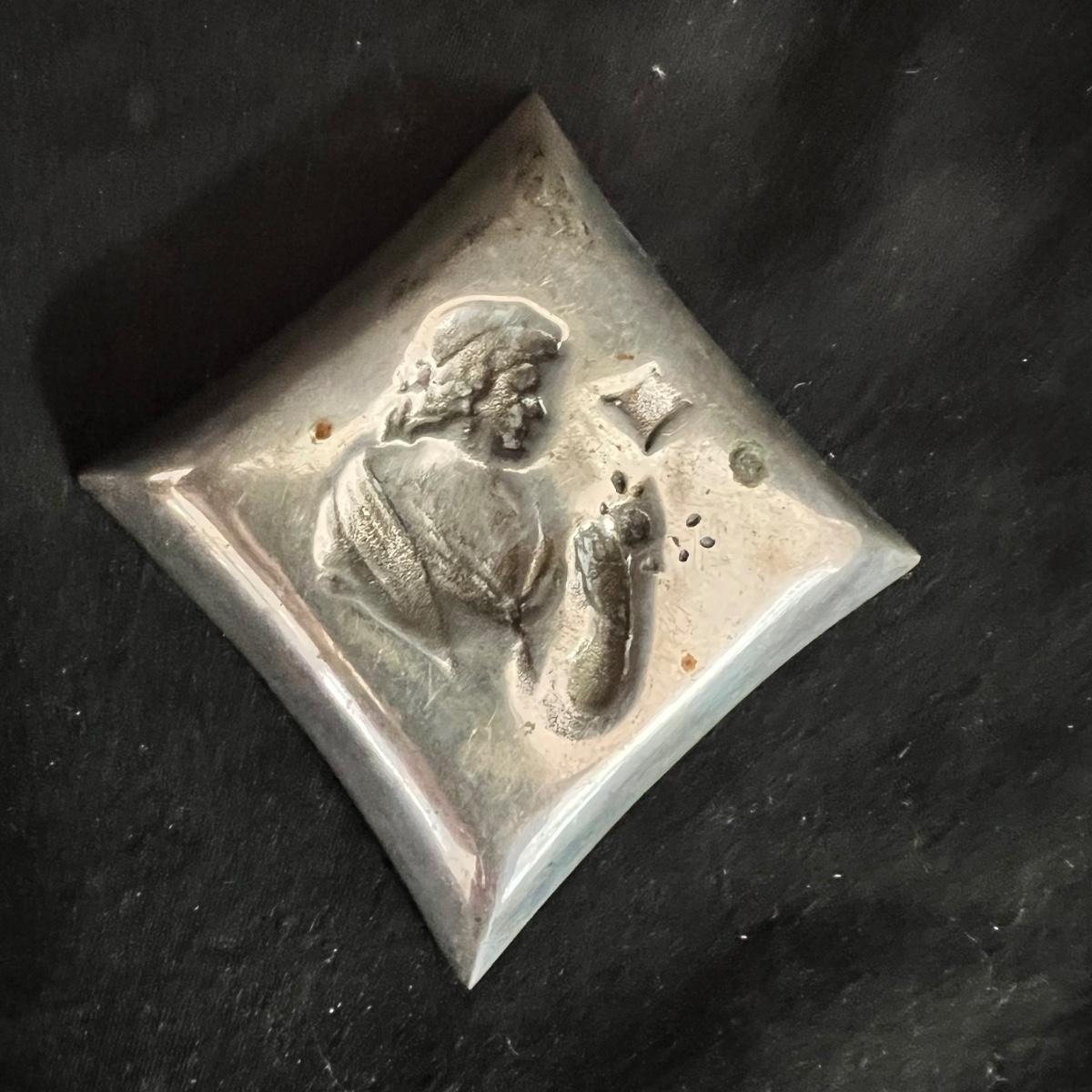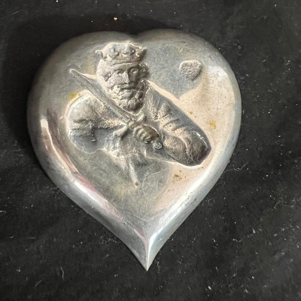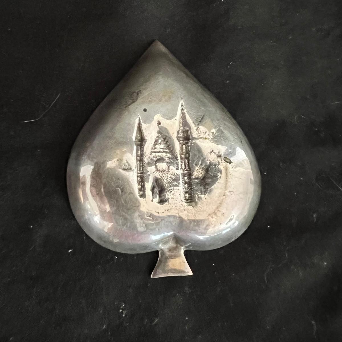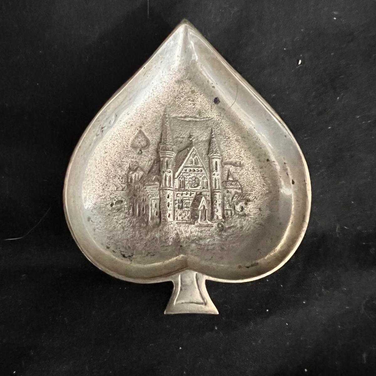 A set of four silver dishes, shaped in a club, spade, heart and diamond. Each dish measures approximately 2.25” x 2.25”.