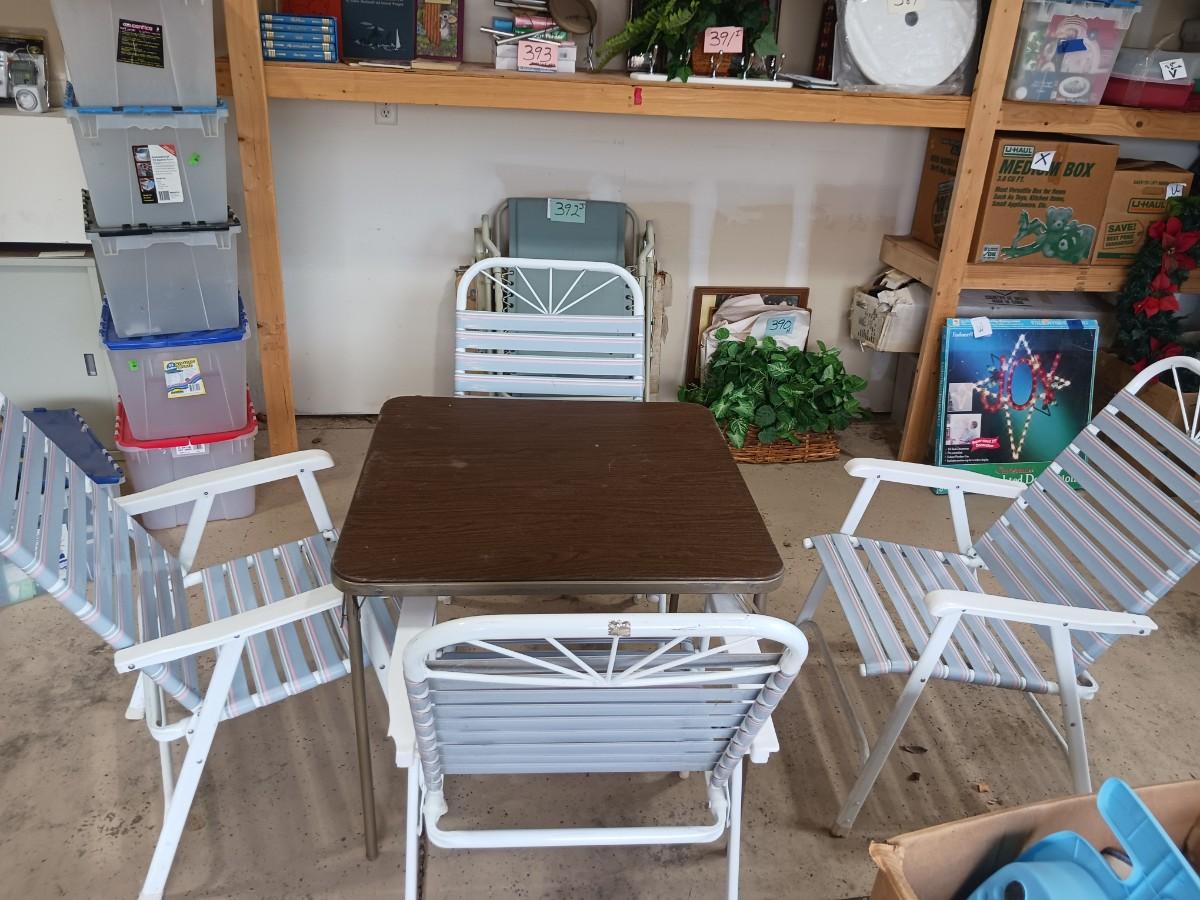 CARD TABLE W/ FOUR FOLDING CHAIRS