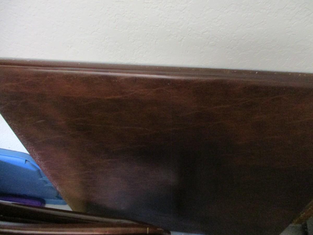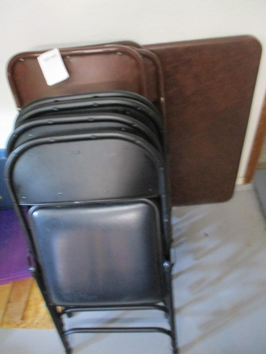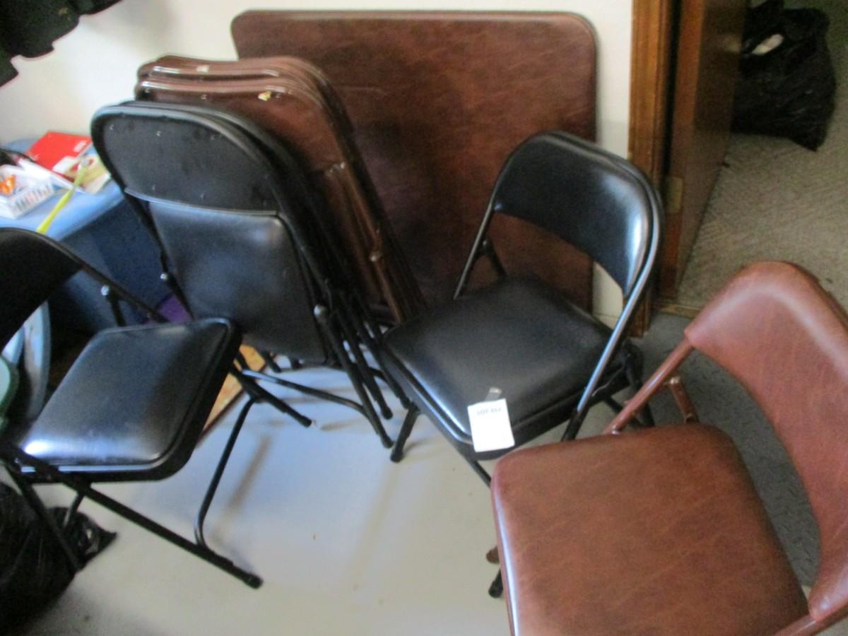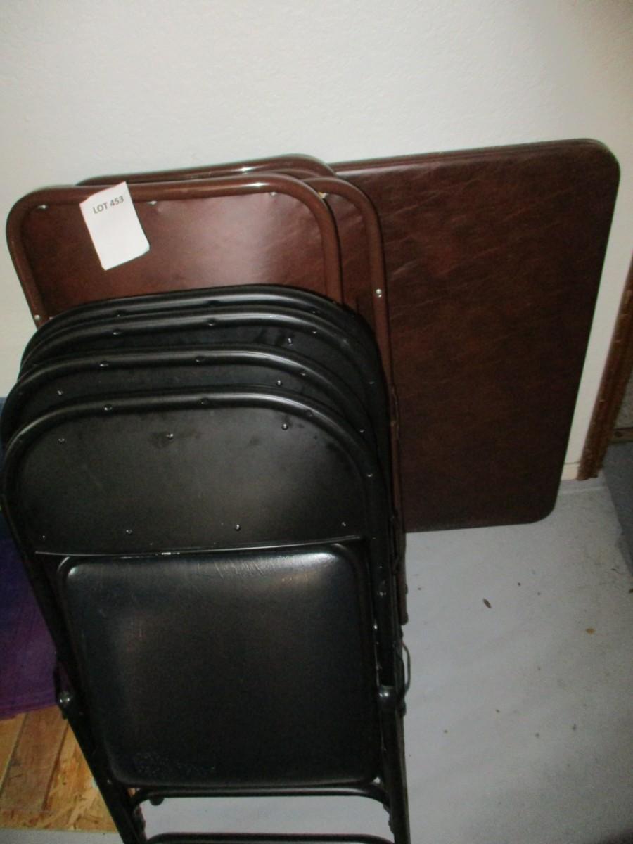 Brown Card Table with Cushion leather chairs. Set of black cushion seat chairs. No matching table
