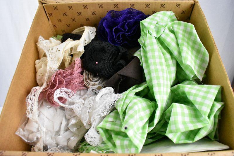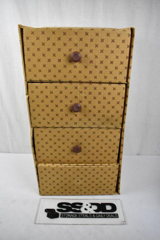 Cardboard 4 Drawer Tower w/ Craft Supplies included Fabric, Yarn, Ribbon, & Lace