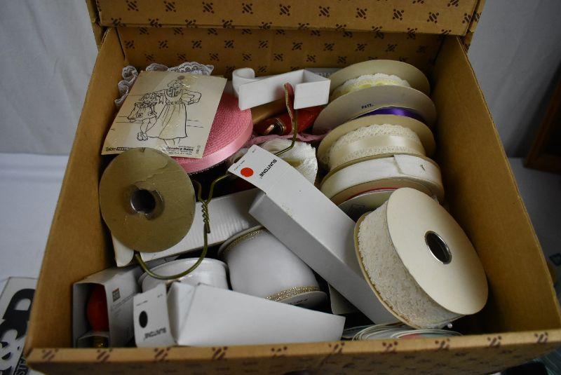 Cardboard 4 Drawer Tower with Craft Supplies included: Fabric, Yarn, Ribbon, & Lace