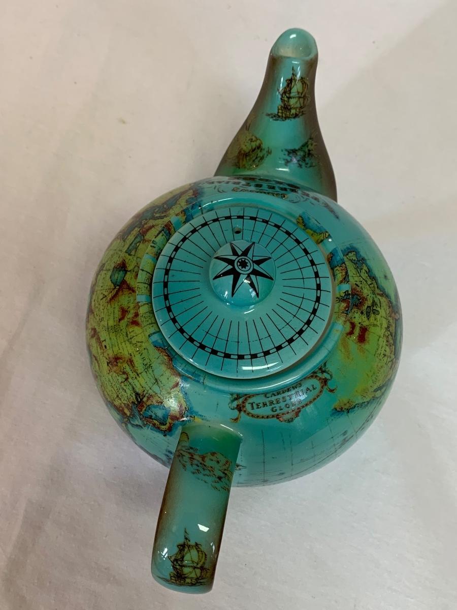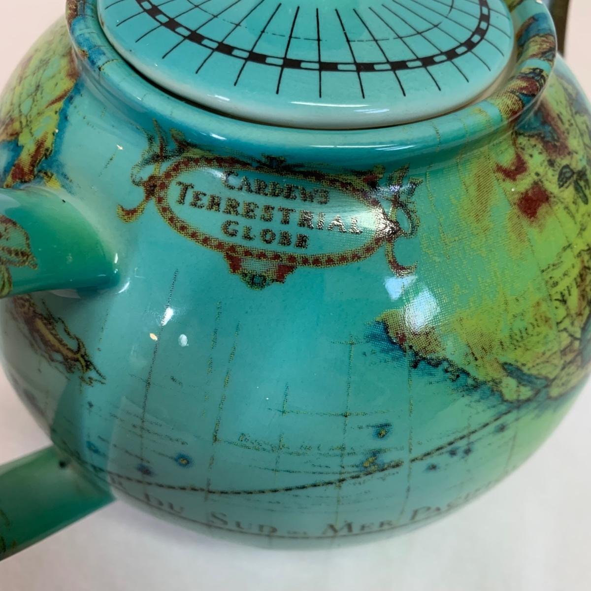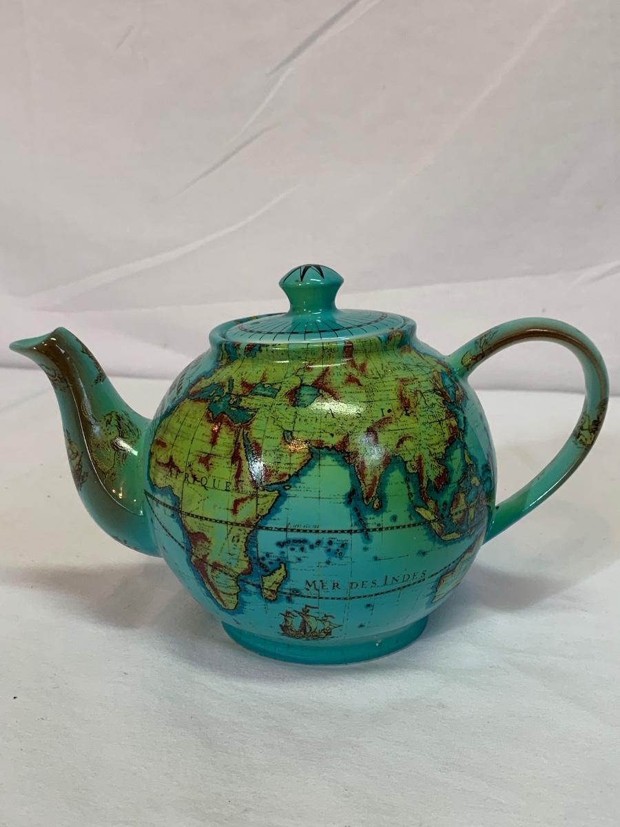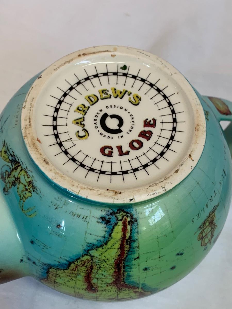 Cardew’s Terrestrial Globe ceramic teapot. Teapot measures approximately 9.5” x 6” x 5.5”H. It does not appear to have any chips, cracks, or crazing. It does have some residue that will need to be cleaned. Please note that is has a glossy finish and some pictures show glare.