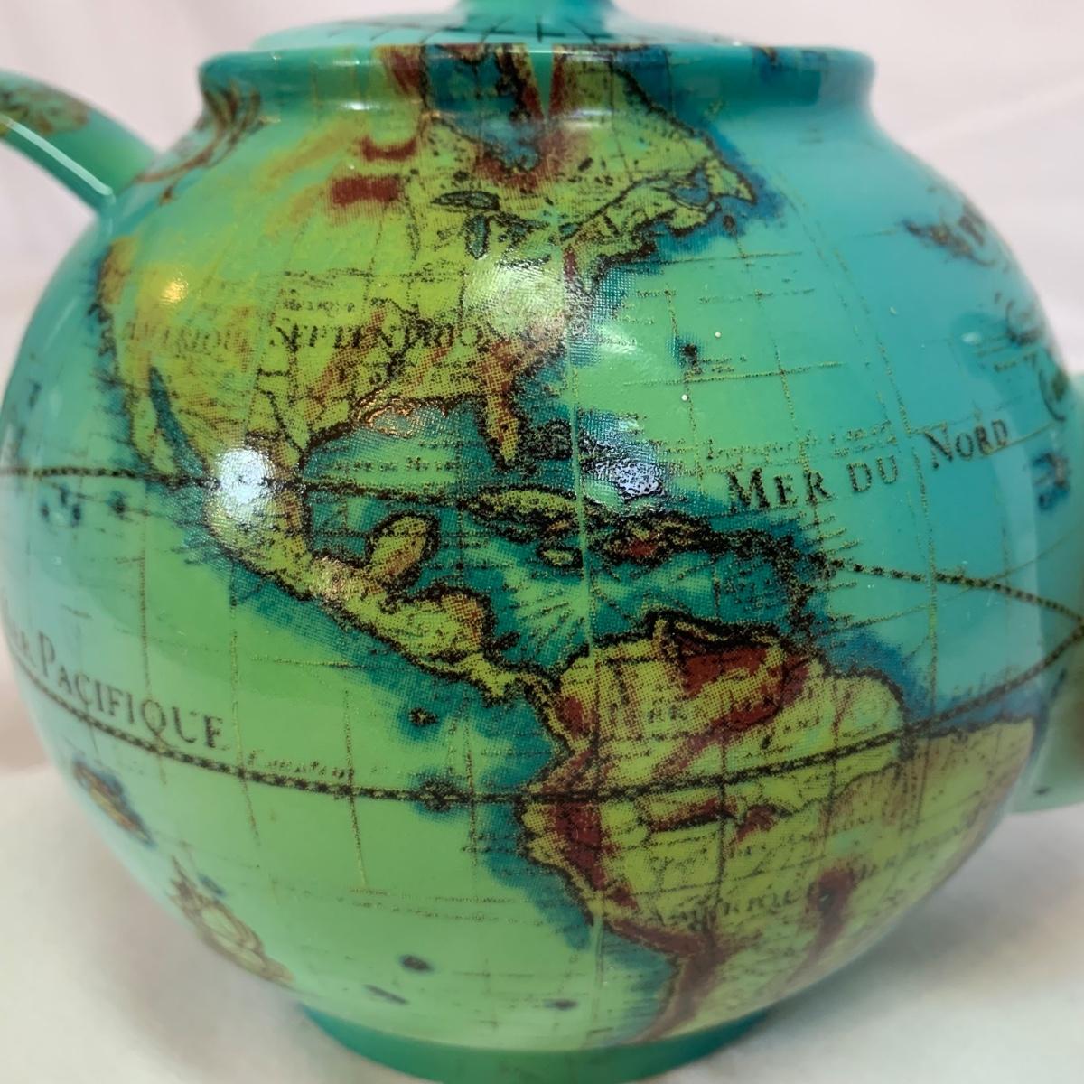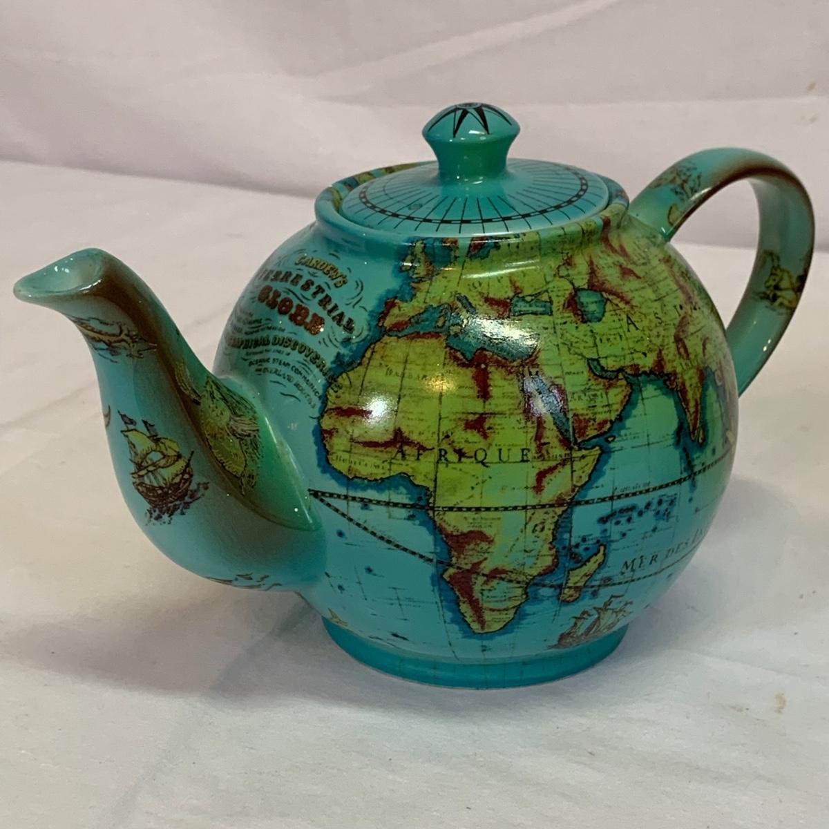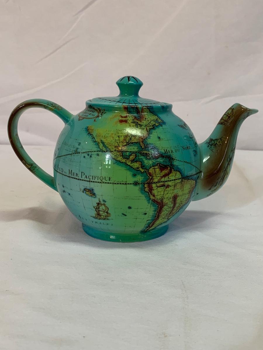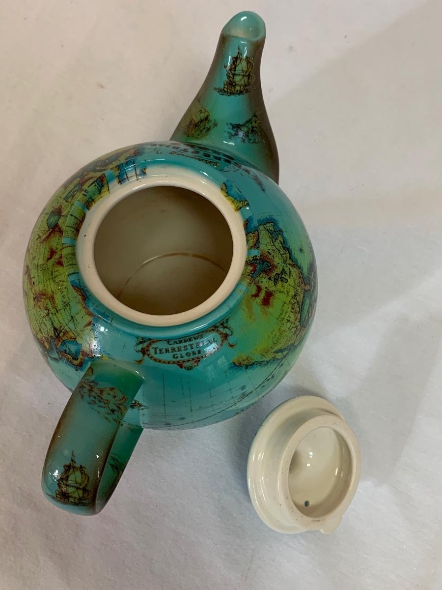 Cardew’s Terrestrial Globe ceramic teapot. Teapot measures approximately 9.5” x 6” x 5.5”H. It does not appear to have any chips, cracks, or crazing. It does have some residue that will need to be cleaned. Please note that is has a glossy finish and some pictures show glare.