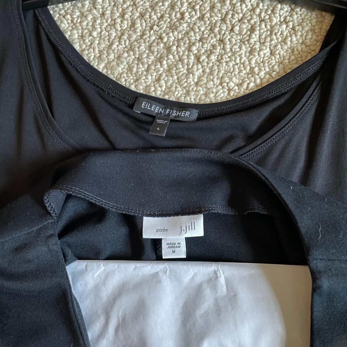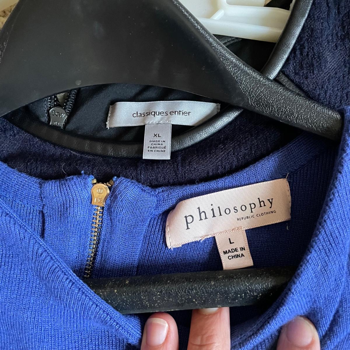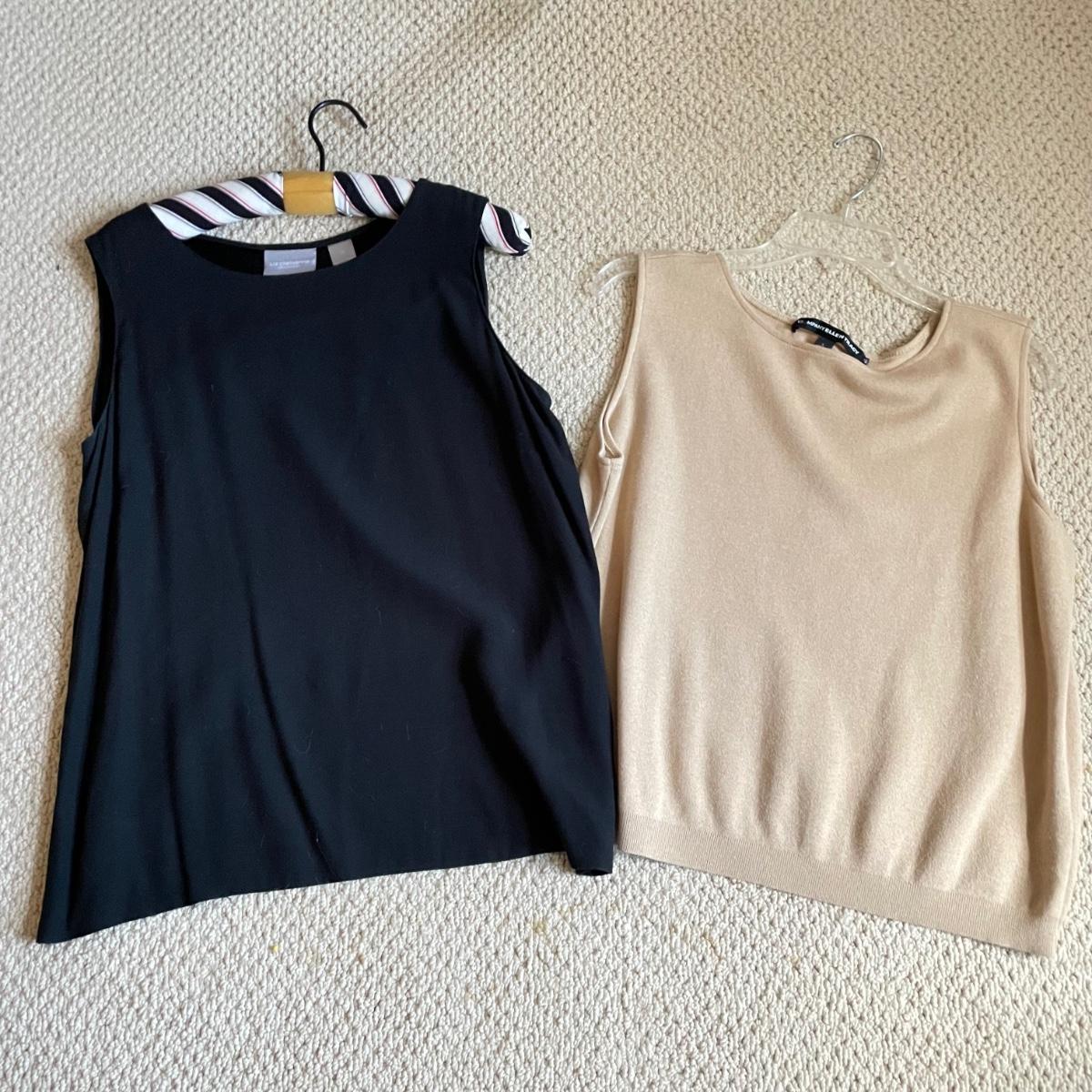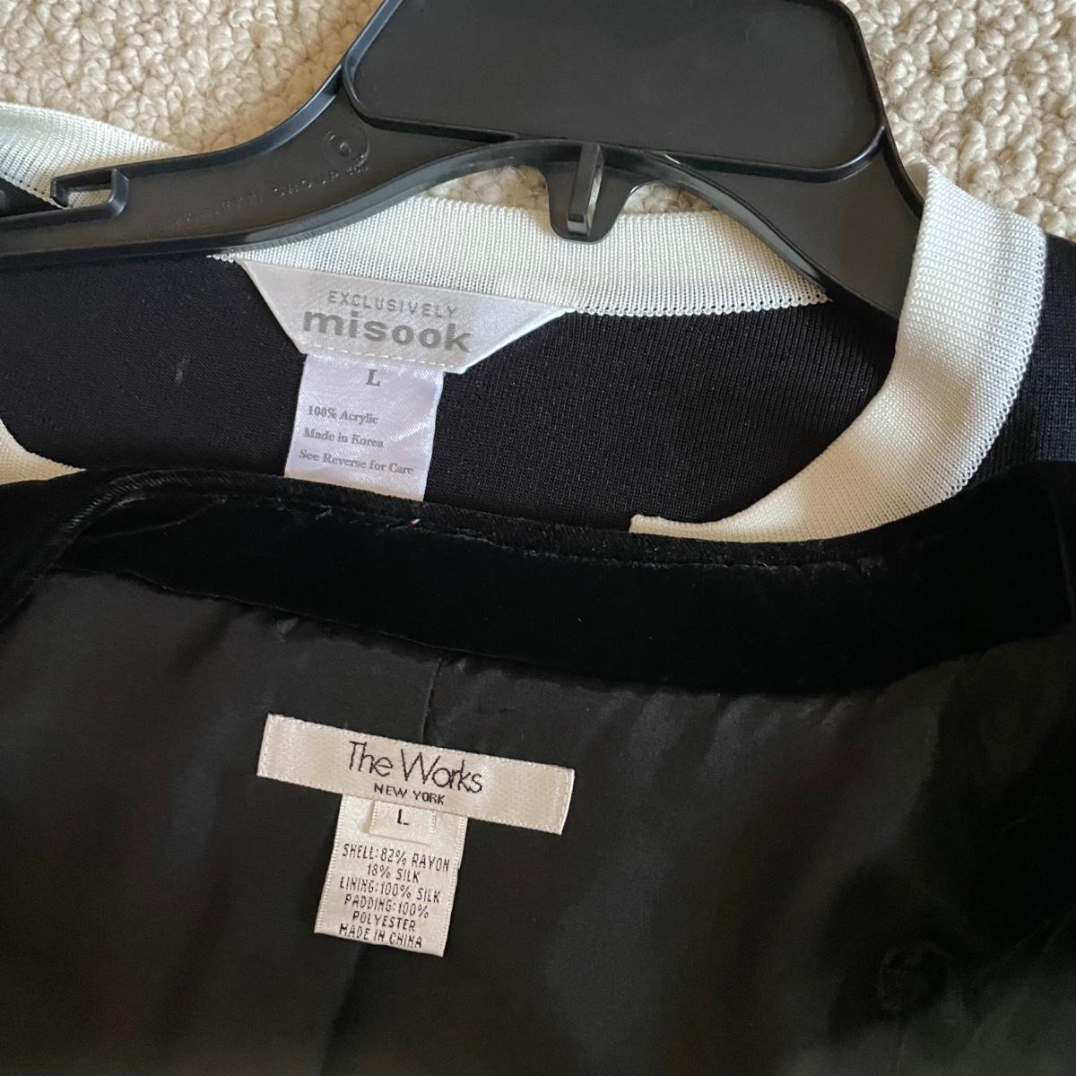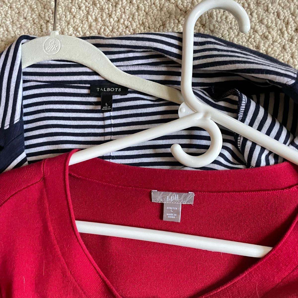 Eleven cardigans and other long sleeve sweaters and jackets plus eight sleeveless shirts to wear with them. Sizes are mostly large and some tops are duplicates. See images. Local pick up only.