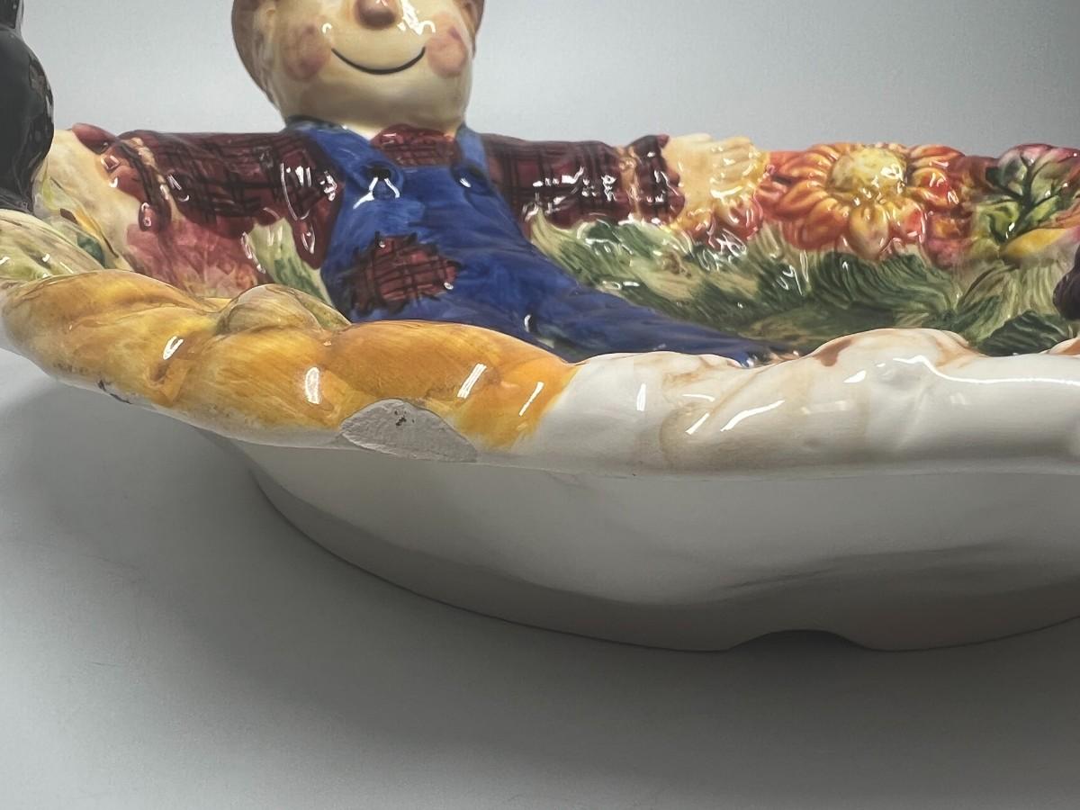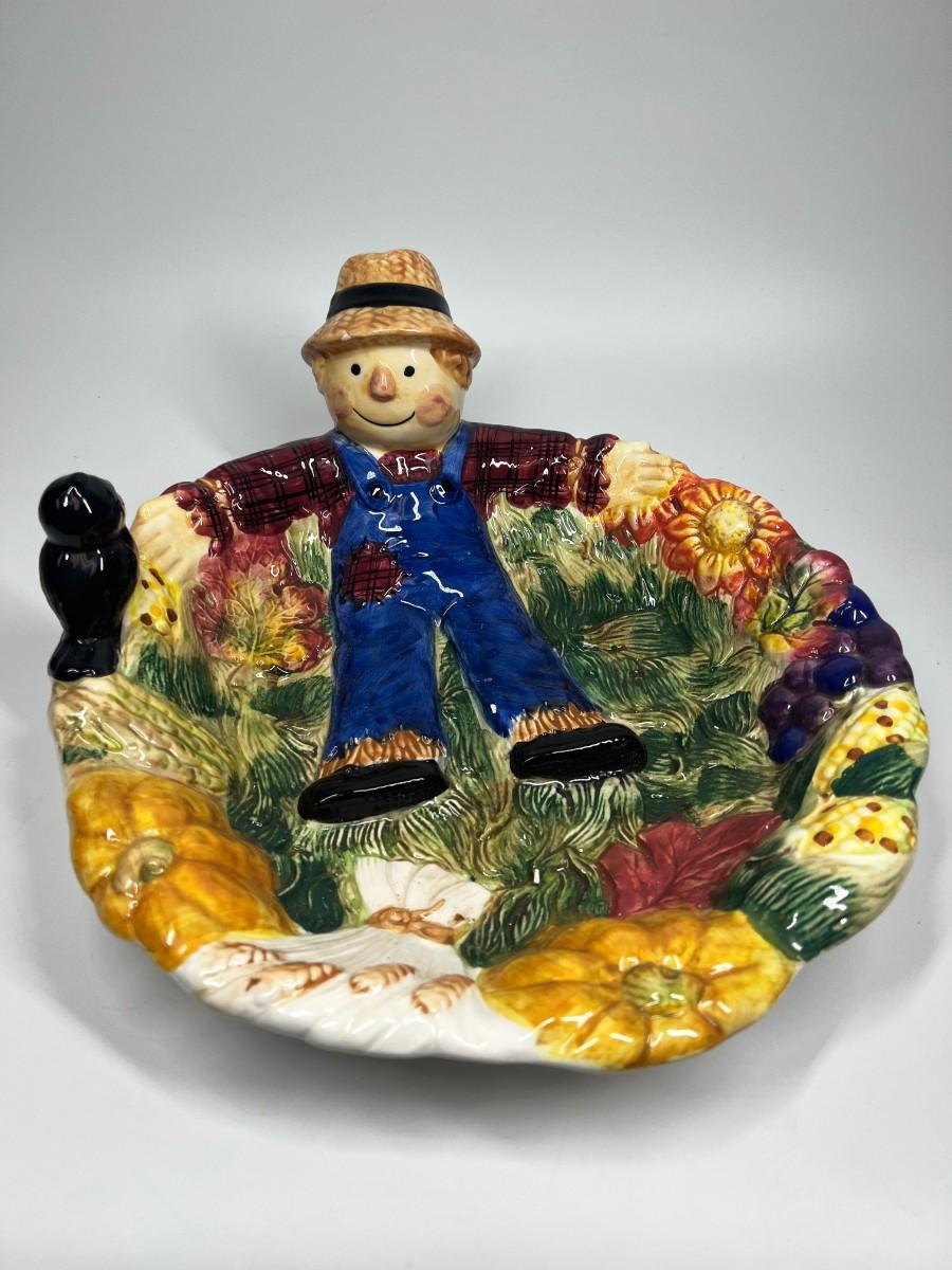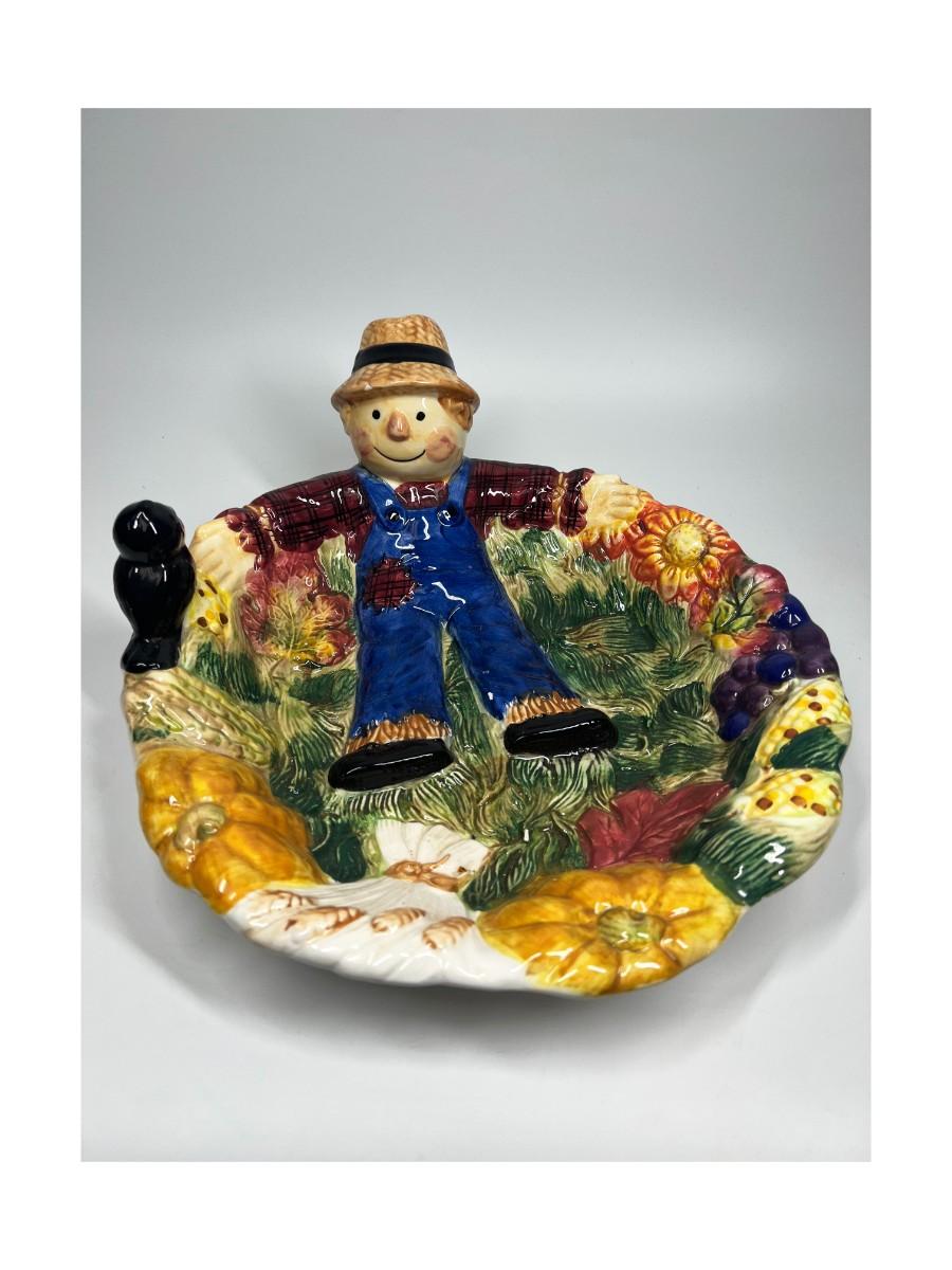 Cardinal Inc. Autumn Fall Hand Painted Scarecrow Ceramic Bowl