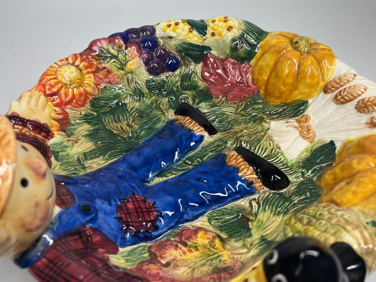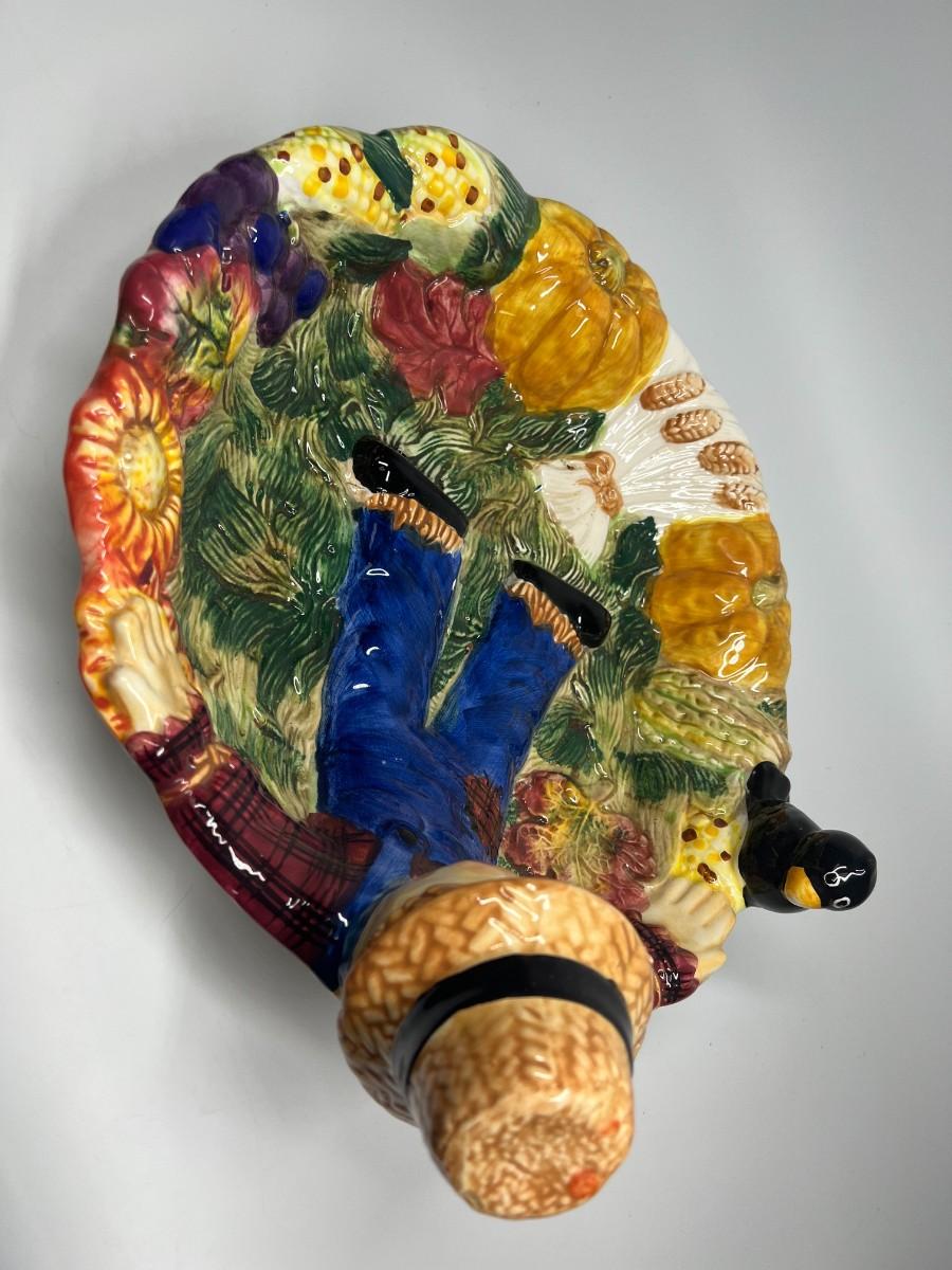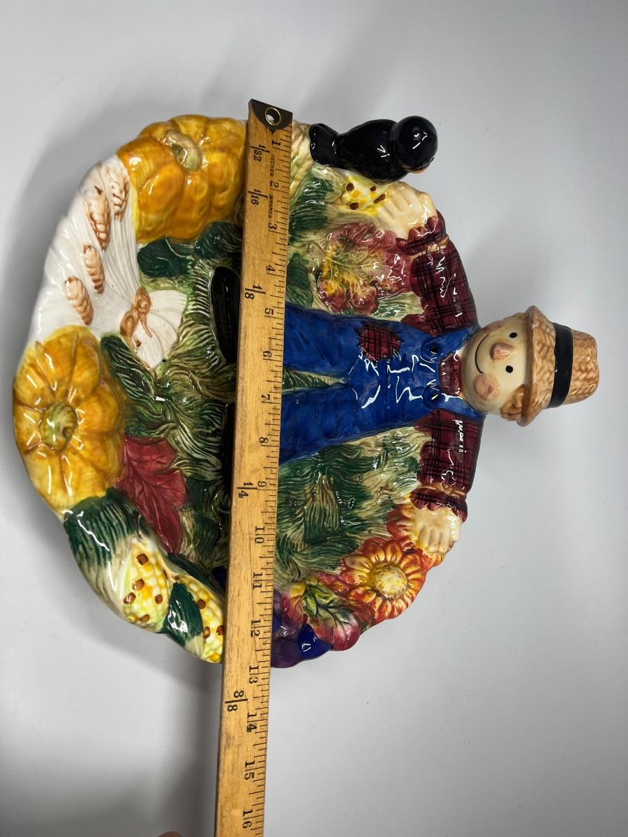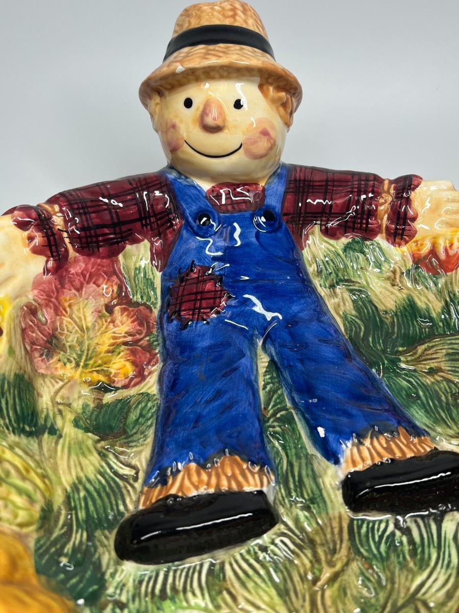 Cardinal Inc. Autumn Fall Hand Painted Scarecrow Ceramic Bowl