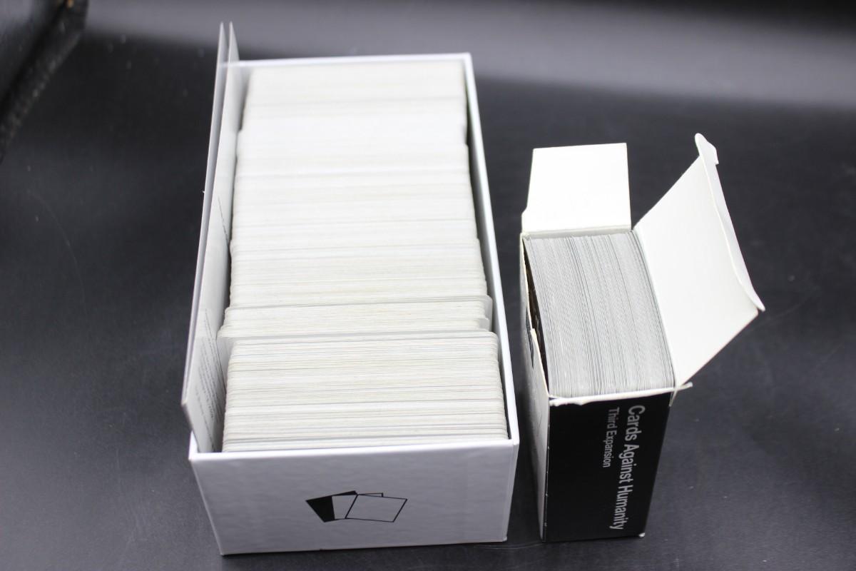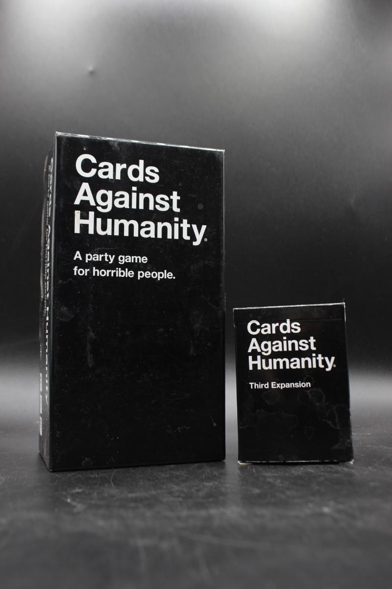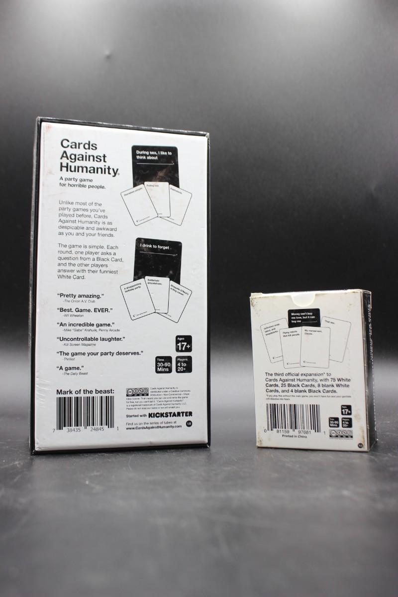 Cards Against Humanity card game with Expansion Pack #3. Good used condition. NOT FOR CHILDREN, ADULTS 18+.