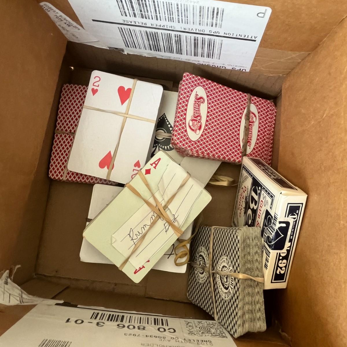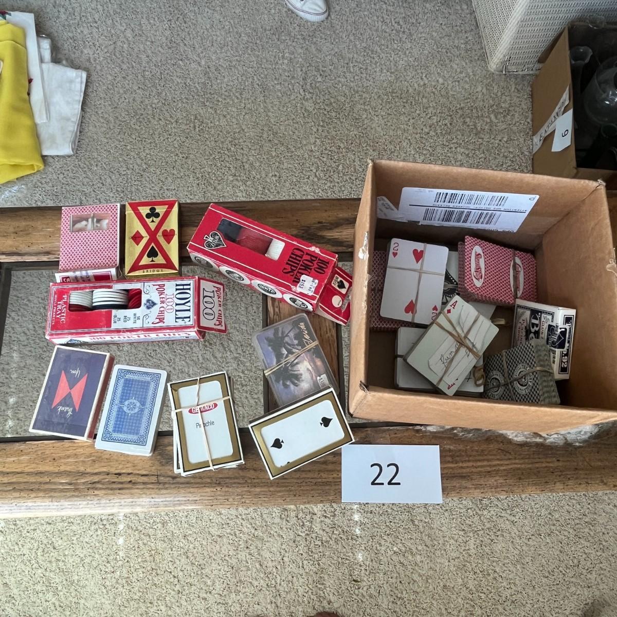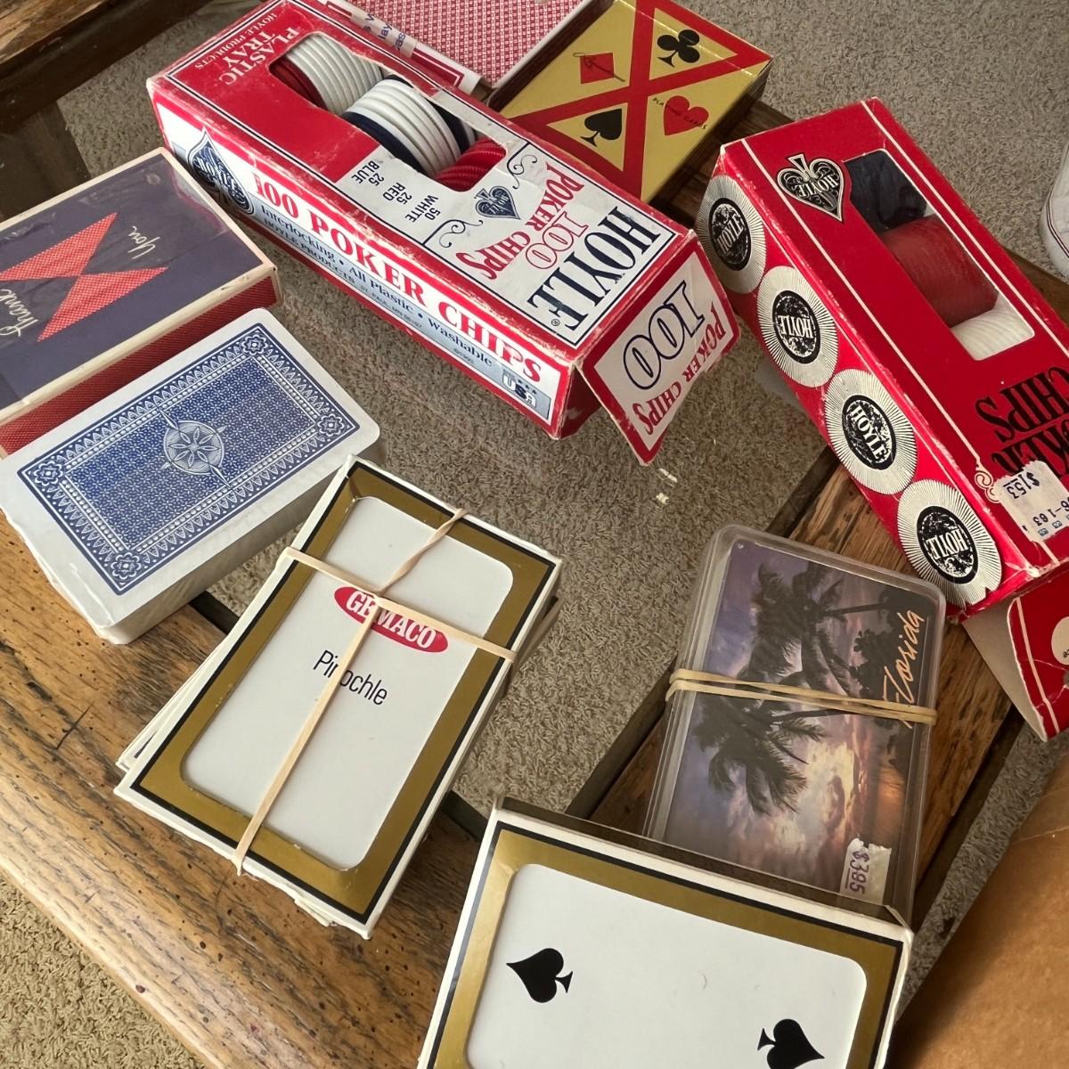 Various decks of cards and poker chips