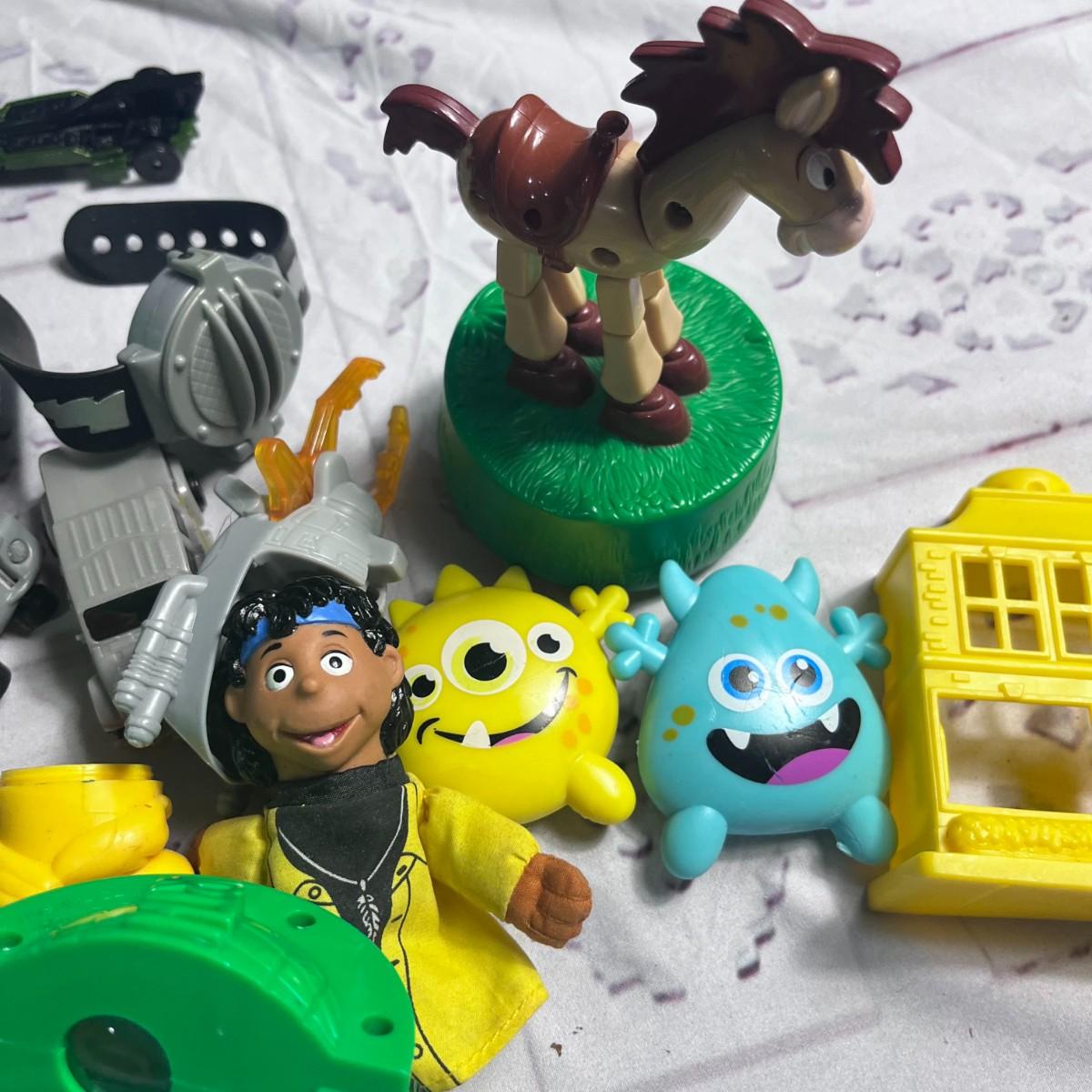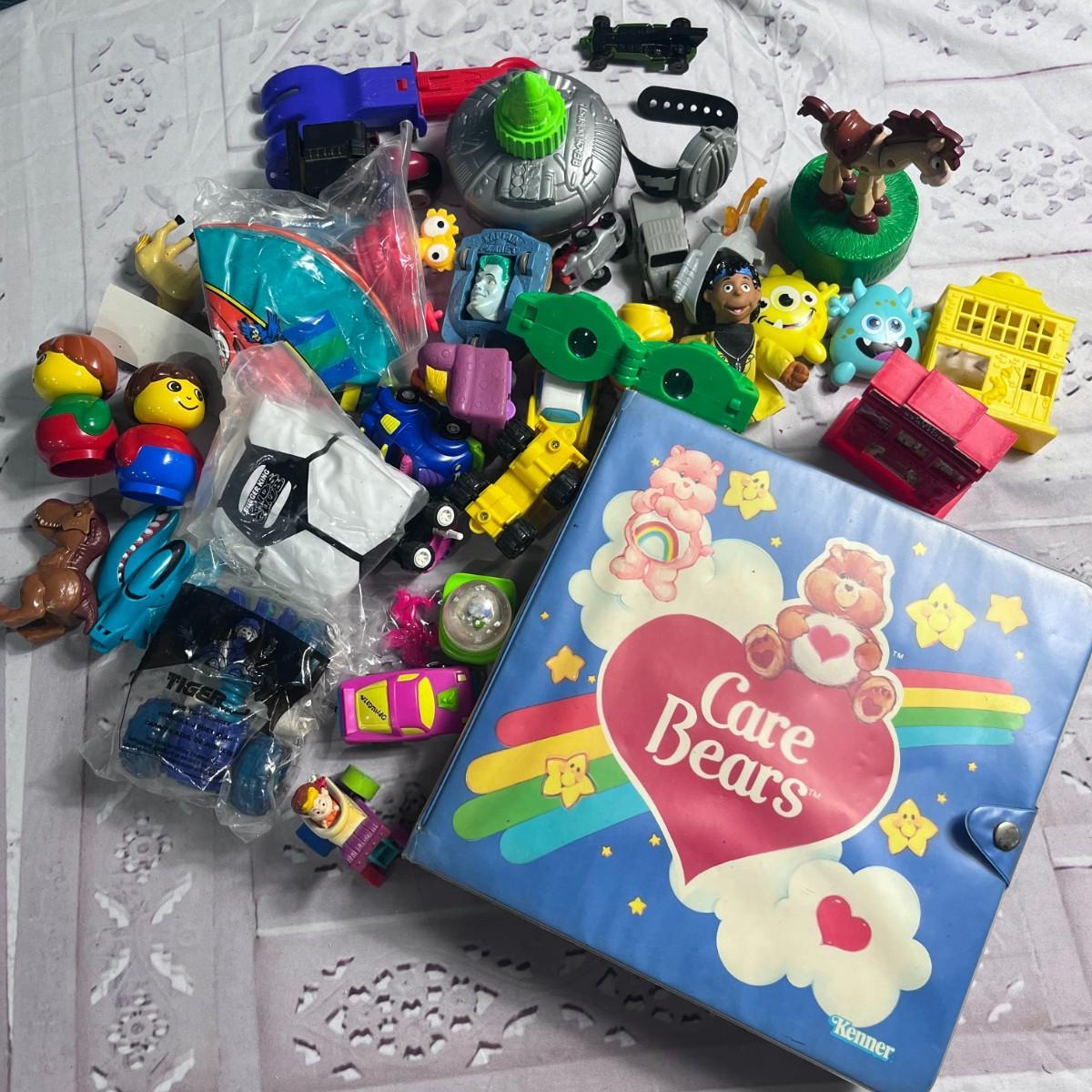 CARE BEARS SECTIONED STORAGE BOX AND MANY SMALL TOYS