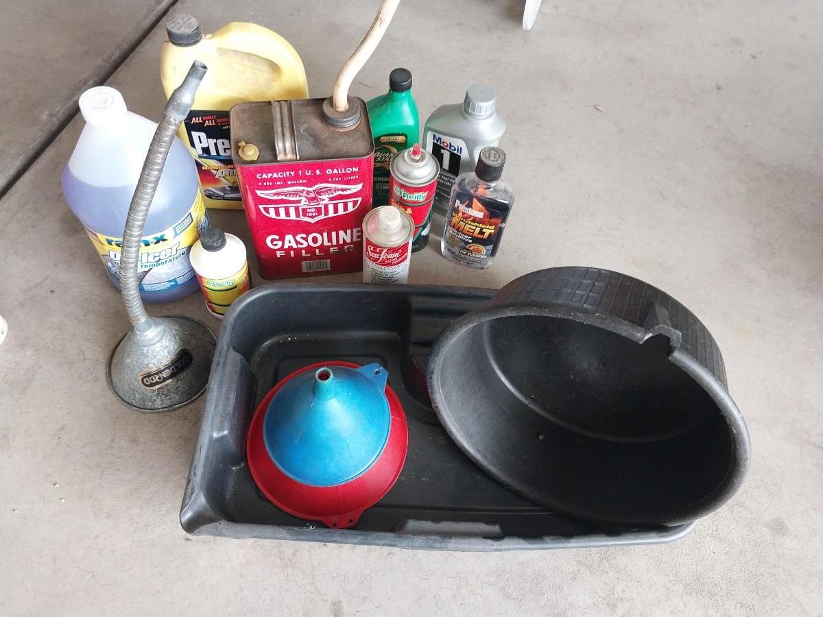 OIL PANS-FUNNELS-DEICER-GASCAN-PRESTON MELT AND MUCH MORE