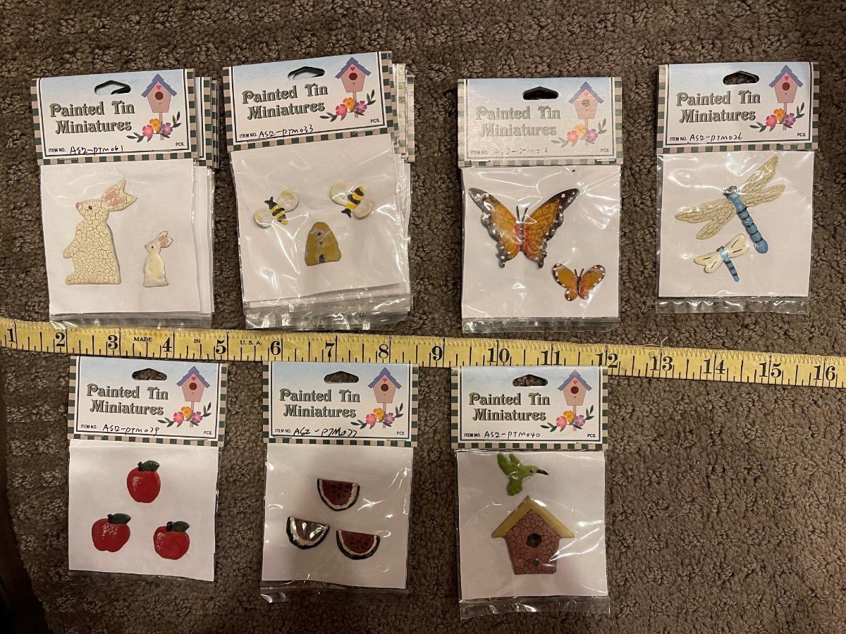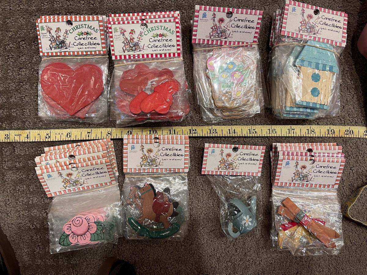7 big hearts, 14 small hearts, 7 baskets, 13 houses, 13 flowers, 7 horses, and other misc. items.