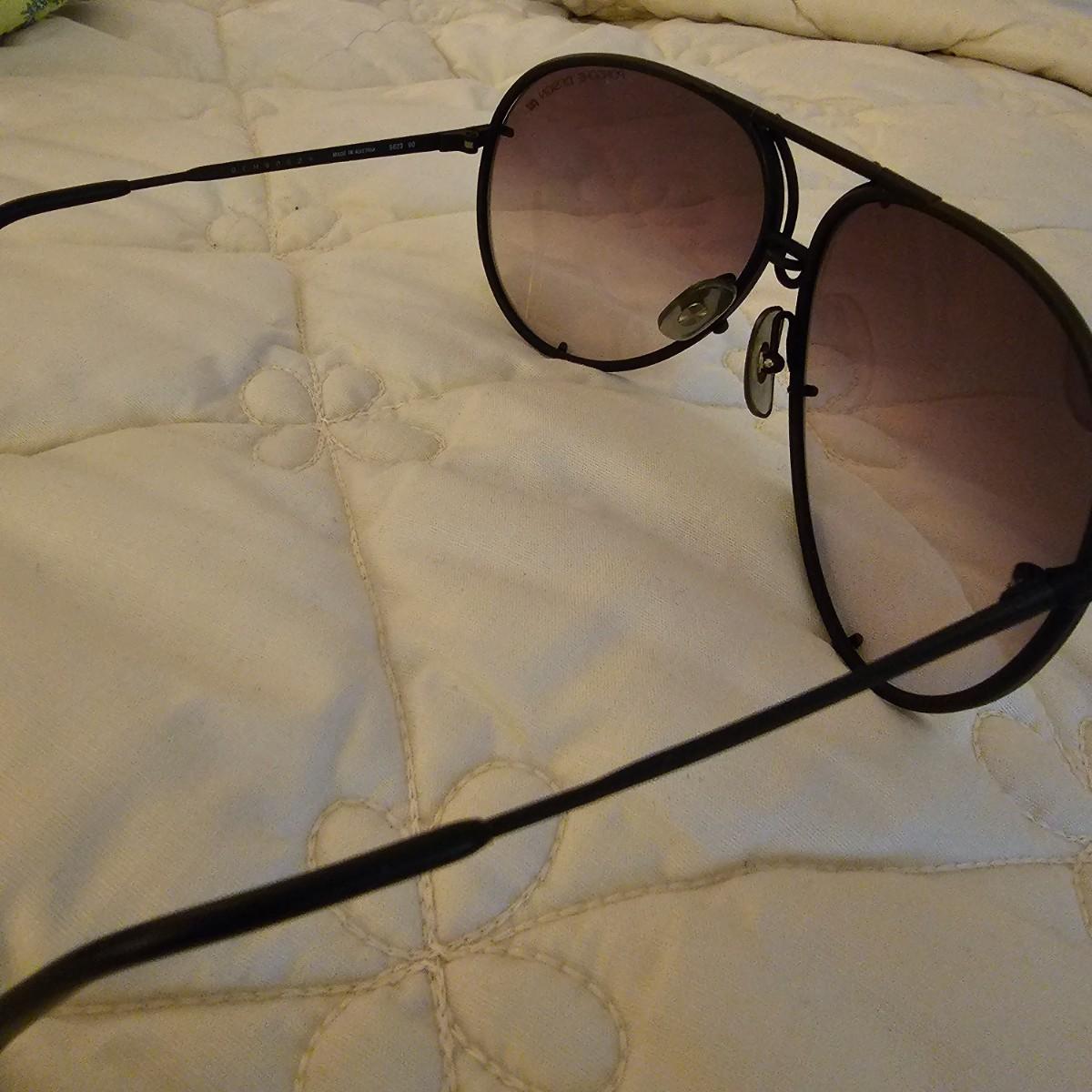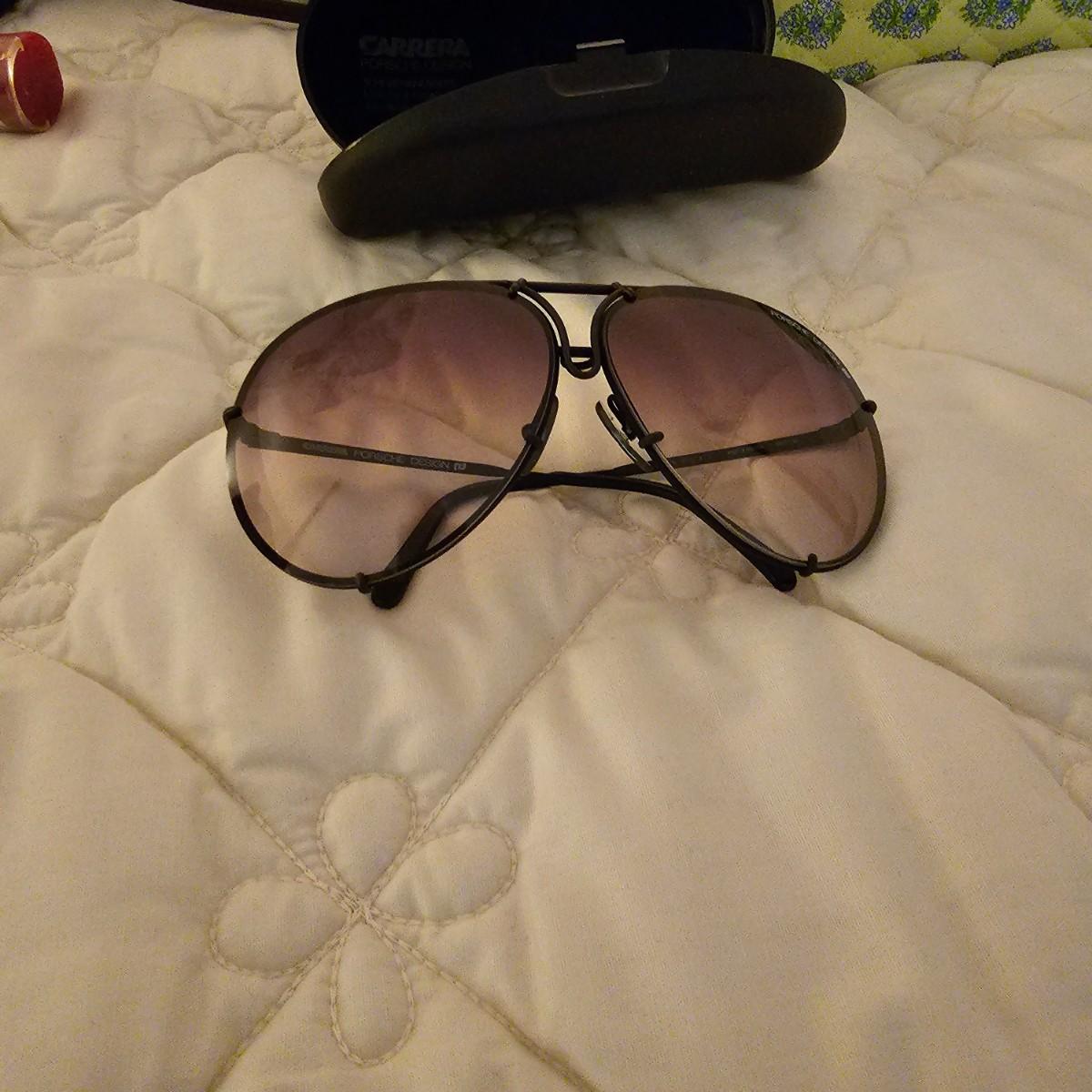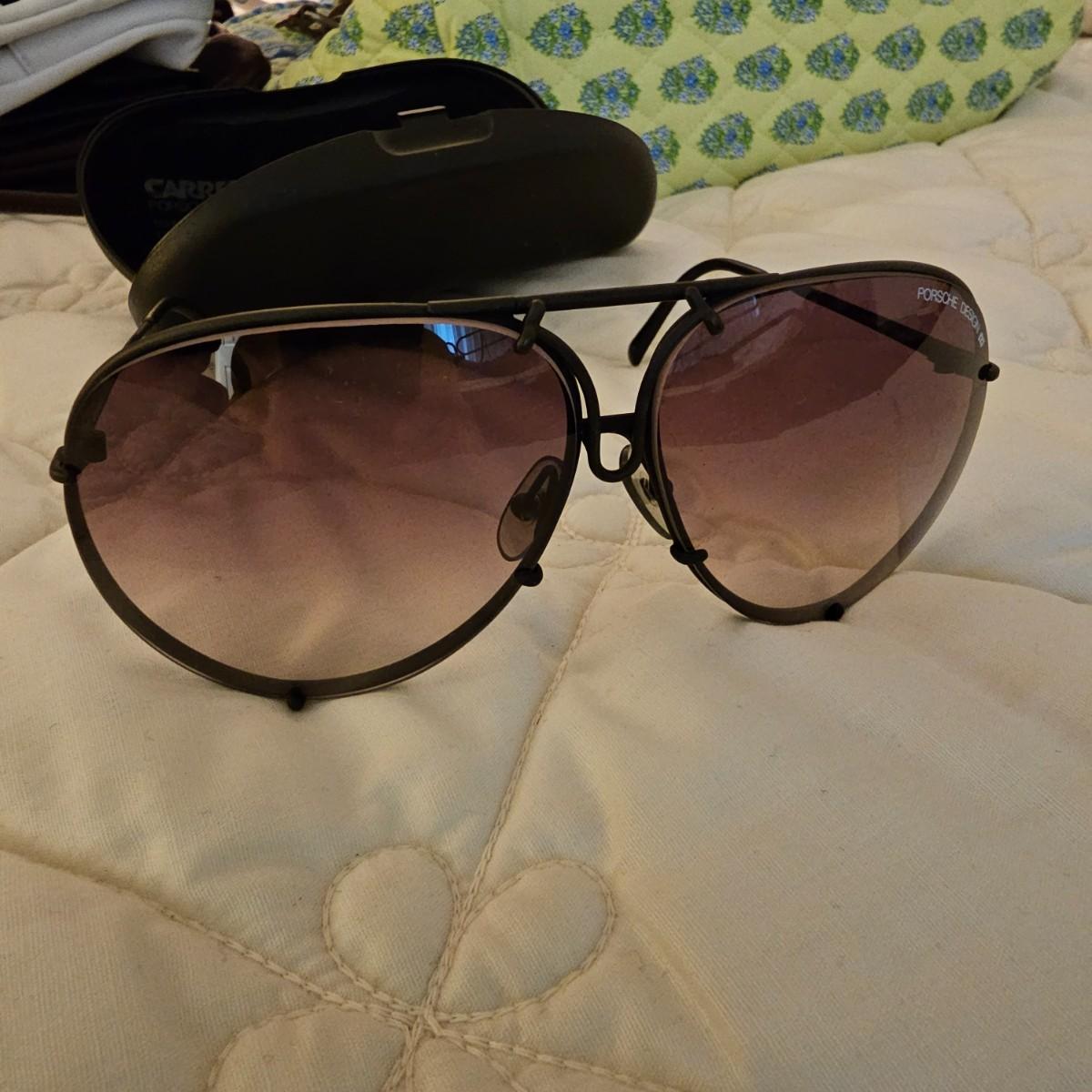 One pair Porsche Design sunglasses in hardshell case. Glasses are Carrera style, all metal frame and earpieces. Marked size small. See photos for details. Shipping available.