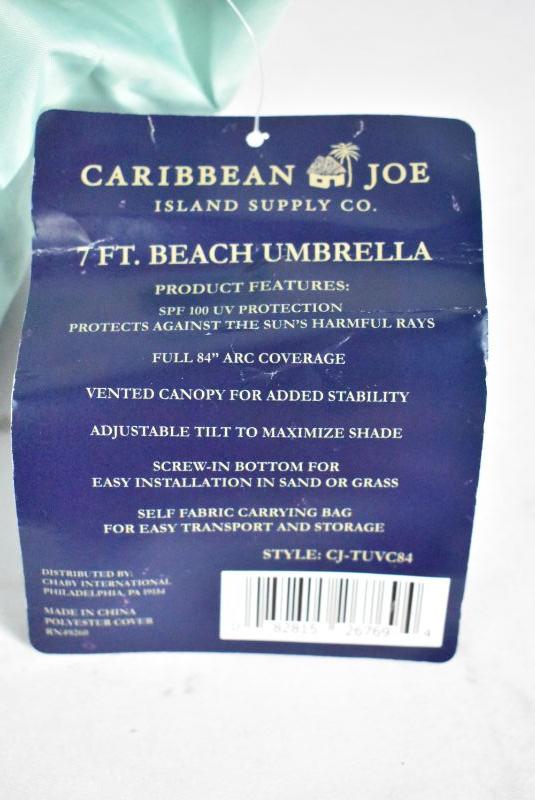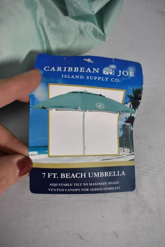 Caribbean Joe 7' Tilting Double Canopy Beach Umbrella with Case, Mint - New
