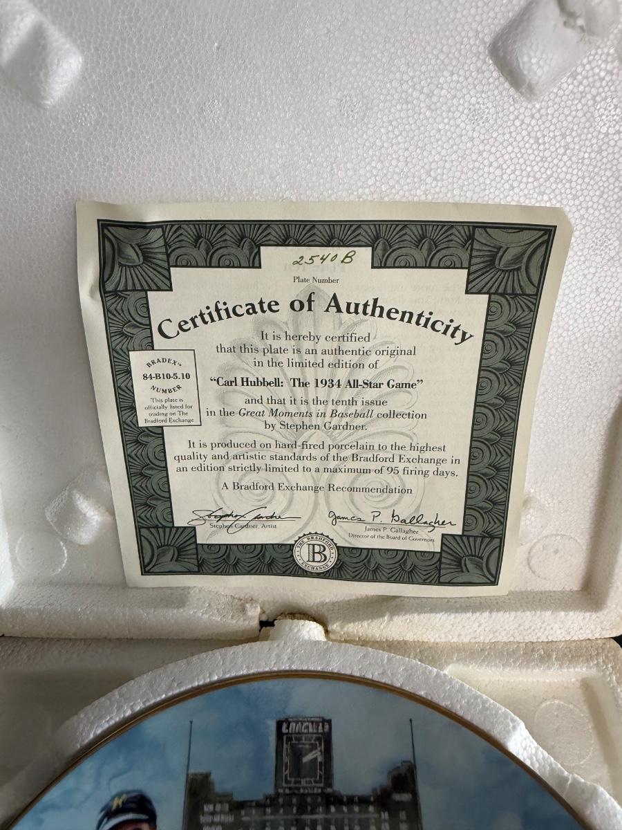 Carl Hubbell commemorative plate