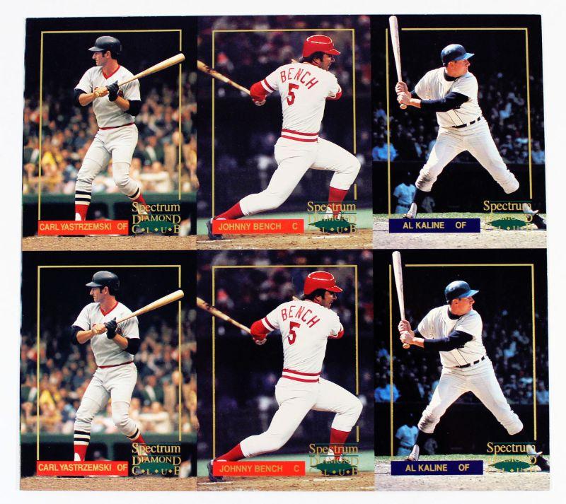 Uncut sheet - Spectrum Diamond Club series cards with Carl Yastrzemski, Johnny Bench and Al Kaline. Mint condition - 6 cards total on one uncut sheet, as seen on photos.