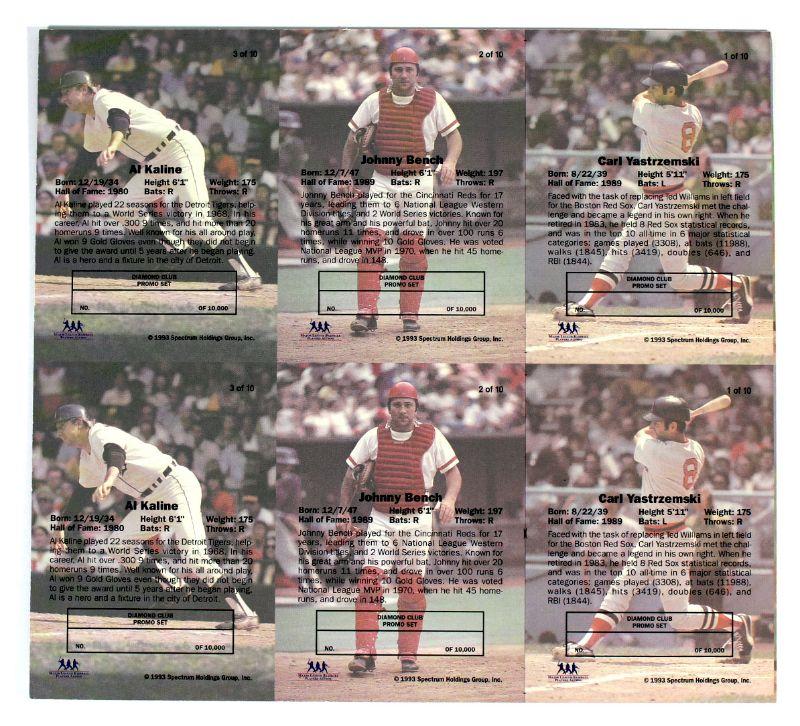 Carl Yastrzemski Johnny Bench Al Kaline UNCUT Sheet 6 Baseball Cards 1993 Spectrum Diamond Club