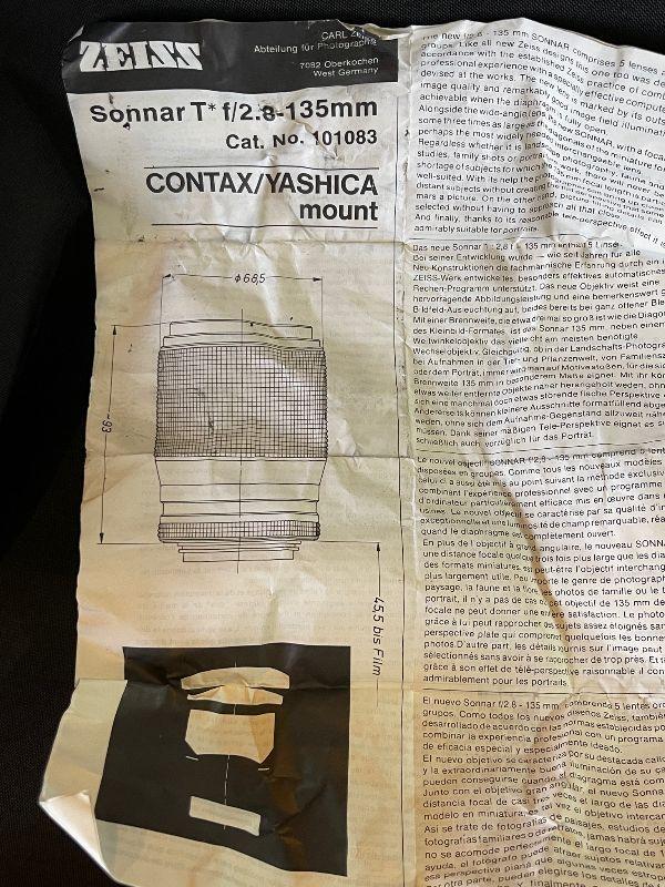 Carl Zies 135mm F2.8 55mm Camera Lens For Contax / Yashica