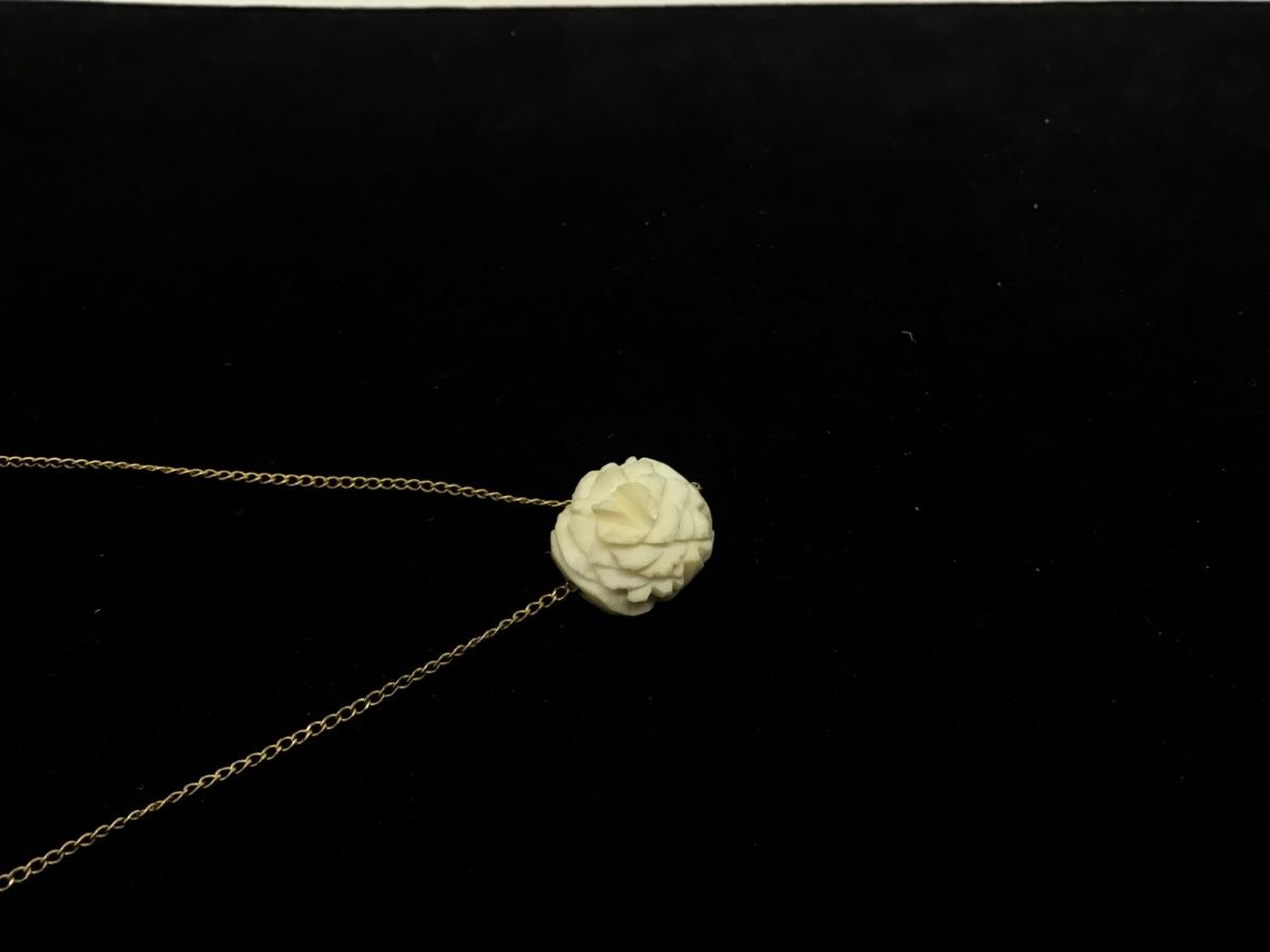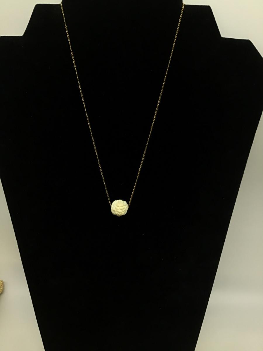 Carla Gold Filled Chain Vintage Floral Carved Celluloid Necklace