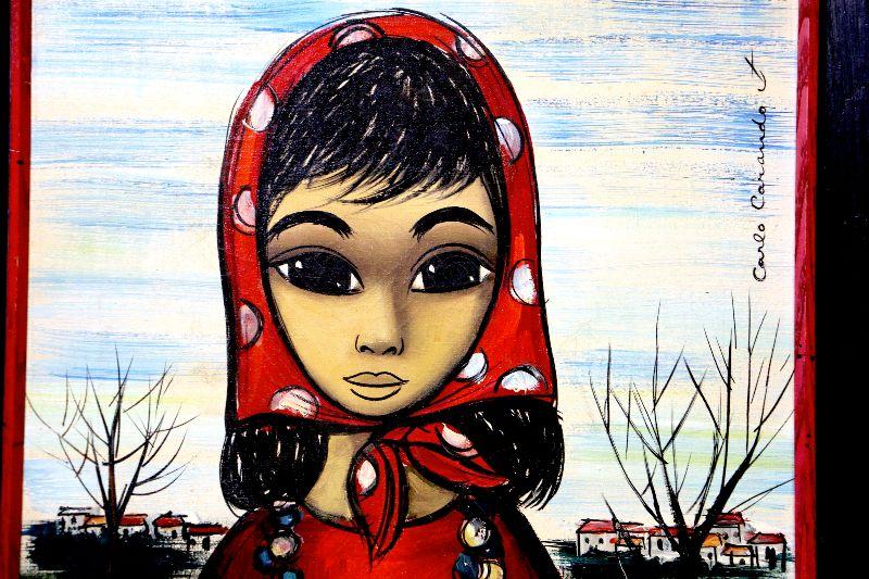 CARLO CARANDO Oil on Canvas Mid-Century Big Eyed Young Woman Original
