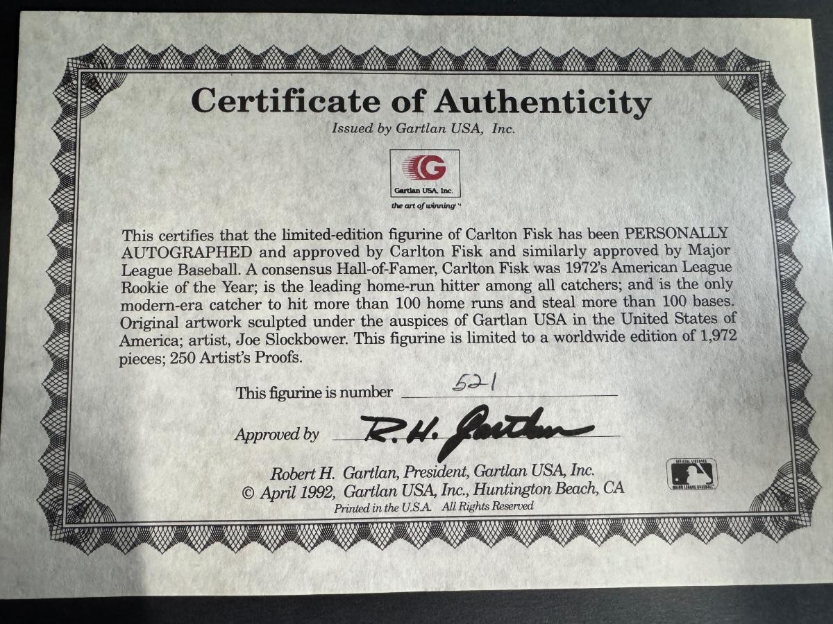 Carlton Fisk Autographed Figurine 521/1972