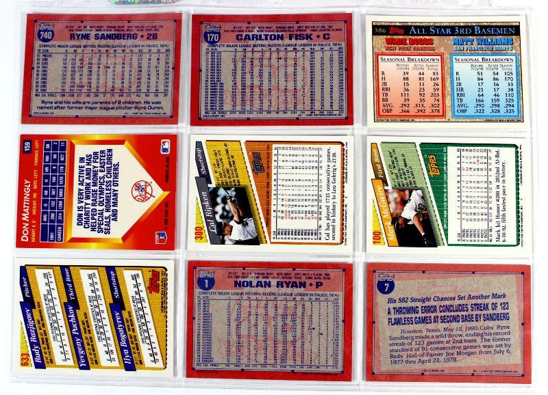 CARLTON FISK CAL RIPKEN Mark McGwire NOLAN RYAN Don Mattingly BASEBALL CARDS SET OF 9 MINT