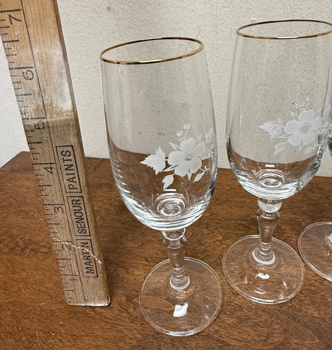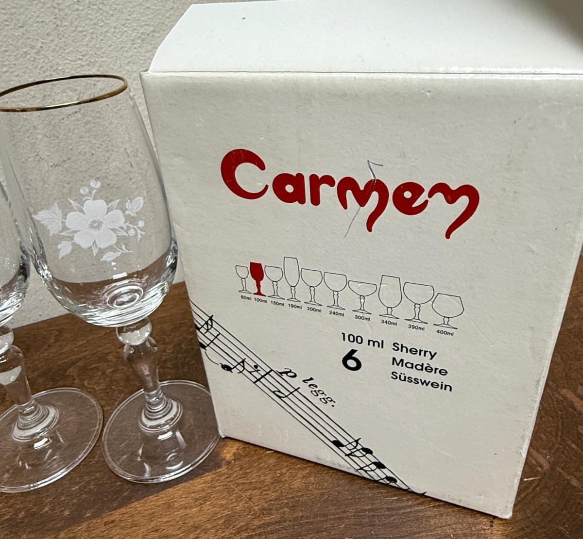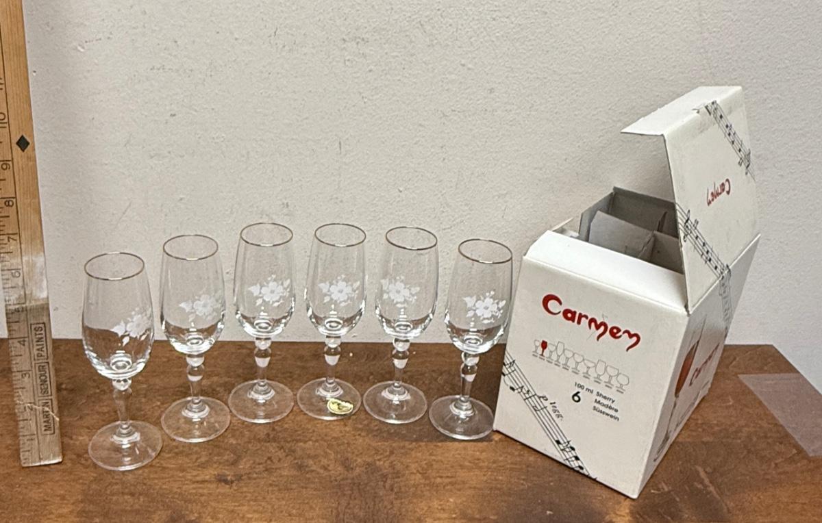 CARMEN lot of (6) Sherry Glasses Painted white flowers and gold trimmed rims