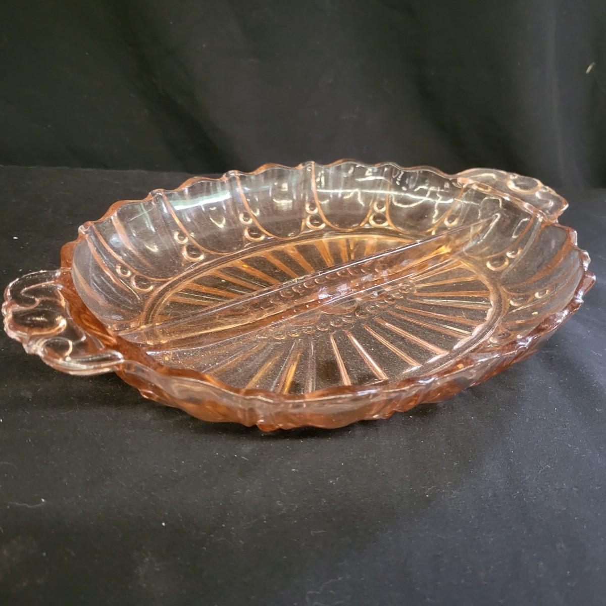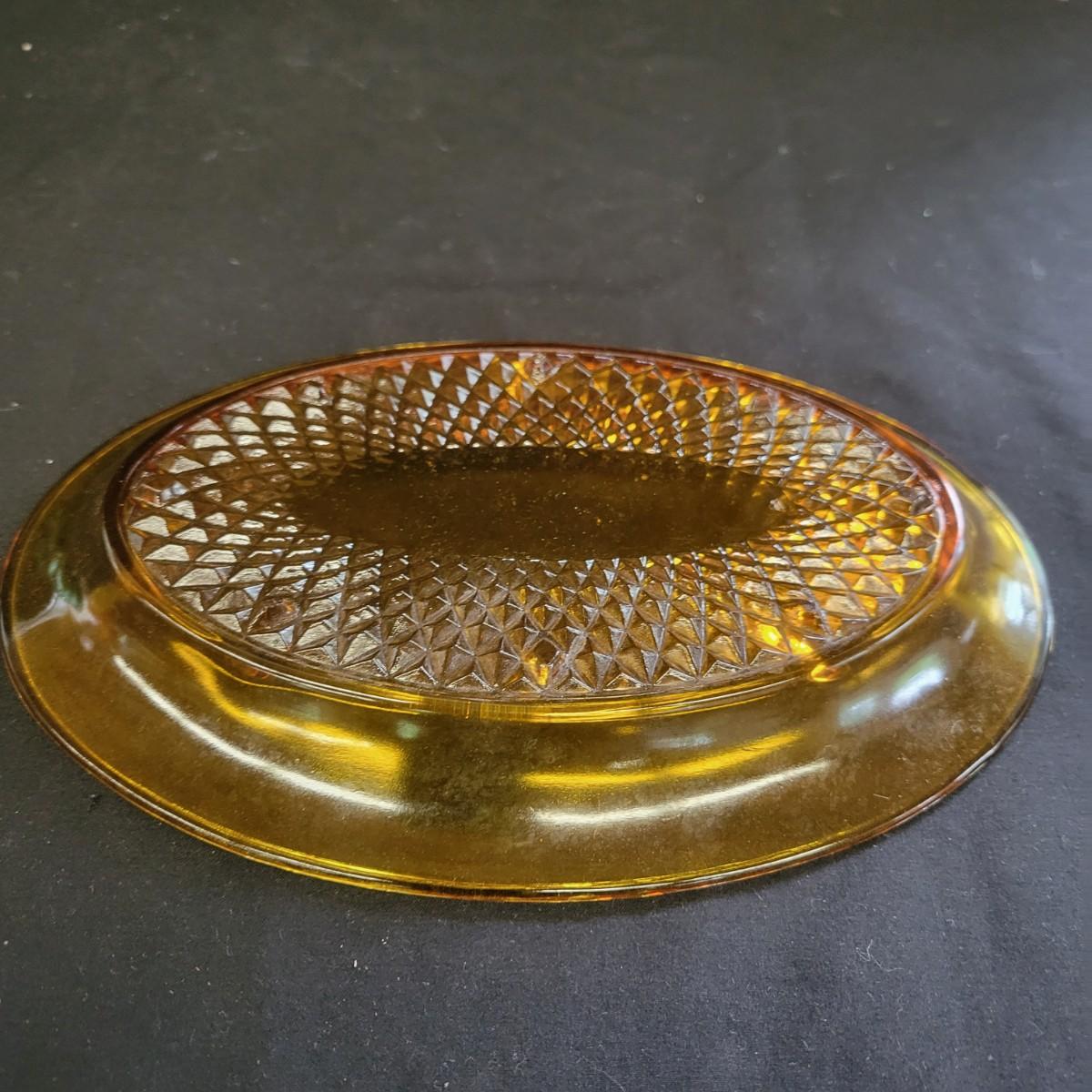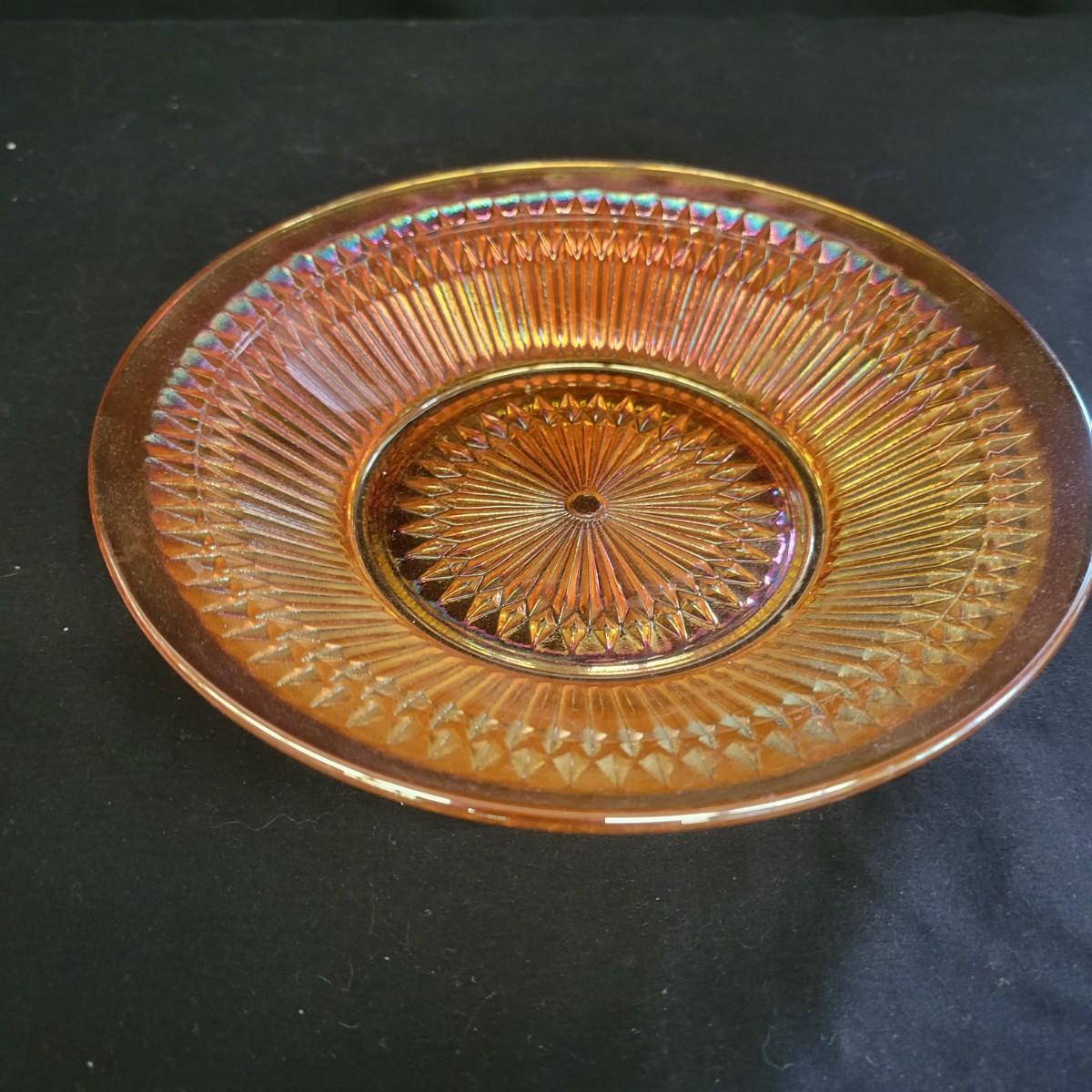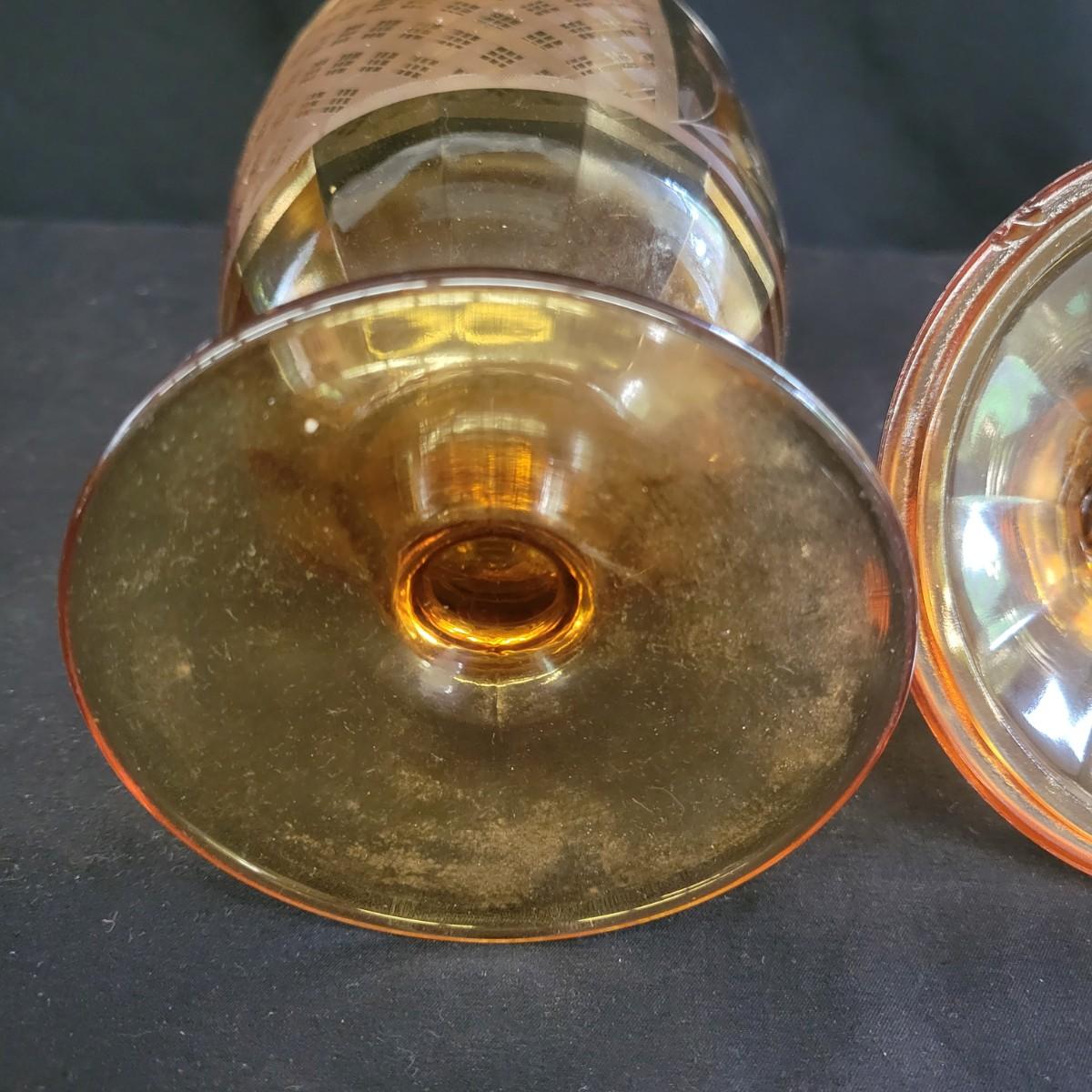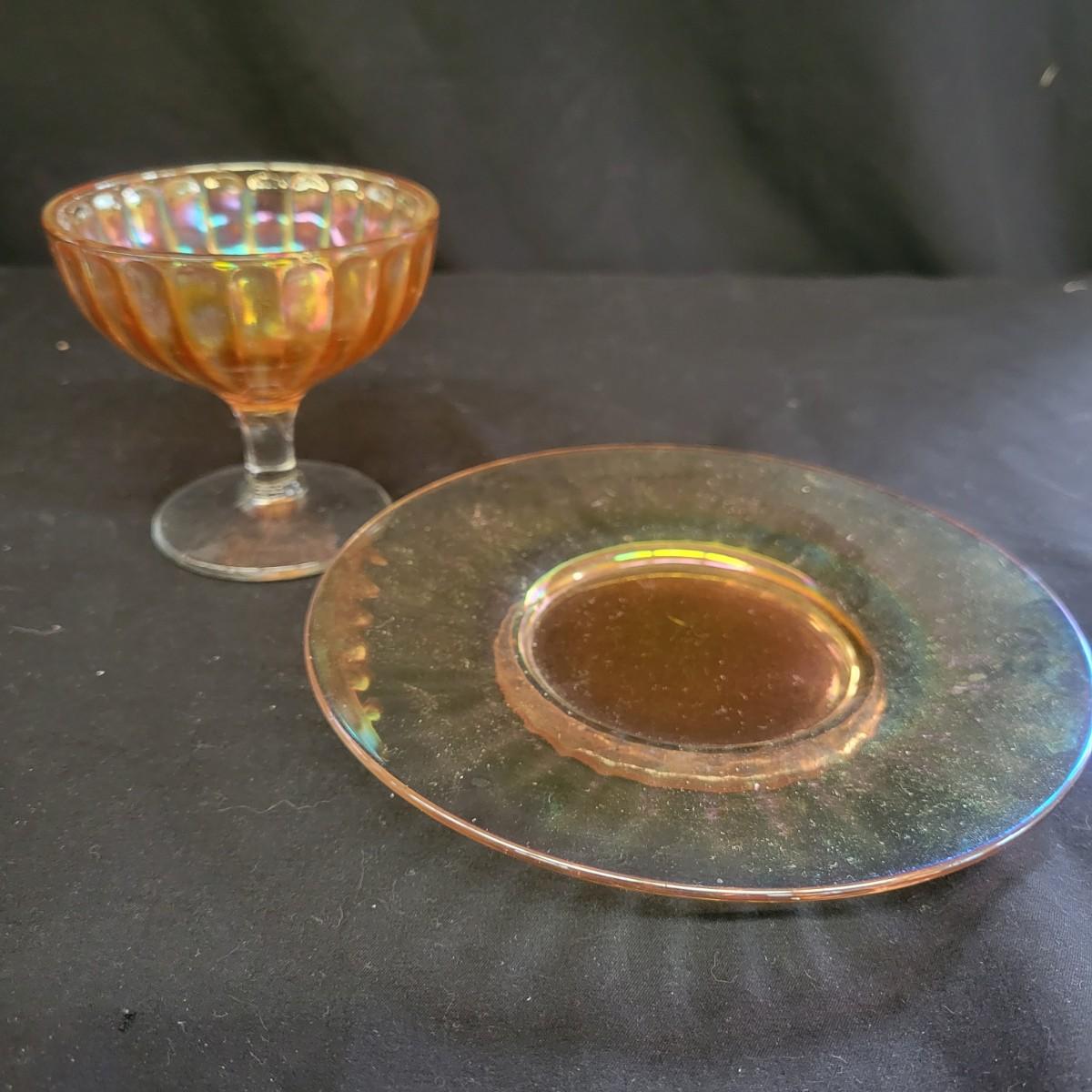 An assortment of over 12 pieces of colored glass, most of which is carnival glass. Largest green bowl pictured last measures approximately 12" x 9" x 4.5"H. The vase with the top has a small chip in its lid. Shipping available. Shipping can be costly. We suggest contacting our preferred local shipping provider, Postage Express, with dimensions and getting an estimate before bidding: (828) 670-5501 or postageexpress@yahoo.com.
