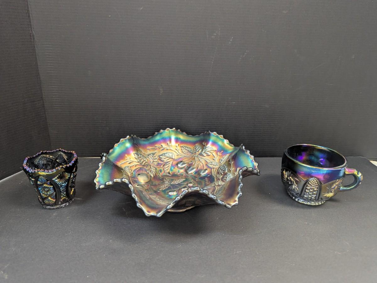 Carnival Glass Bowl, Cup, & Toothpick Holder
