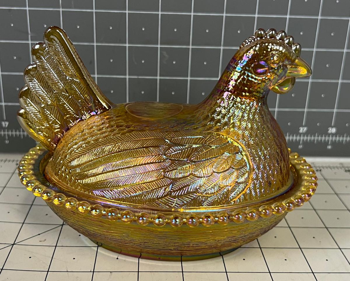 Carnival Glass Chicken Covered Dish