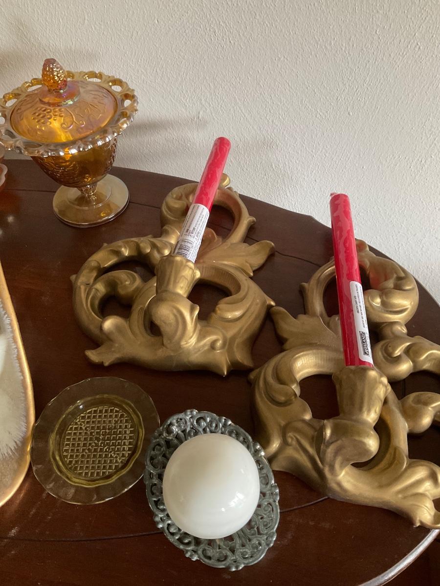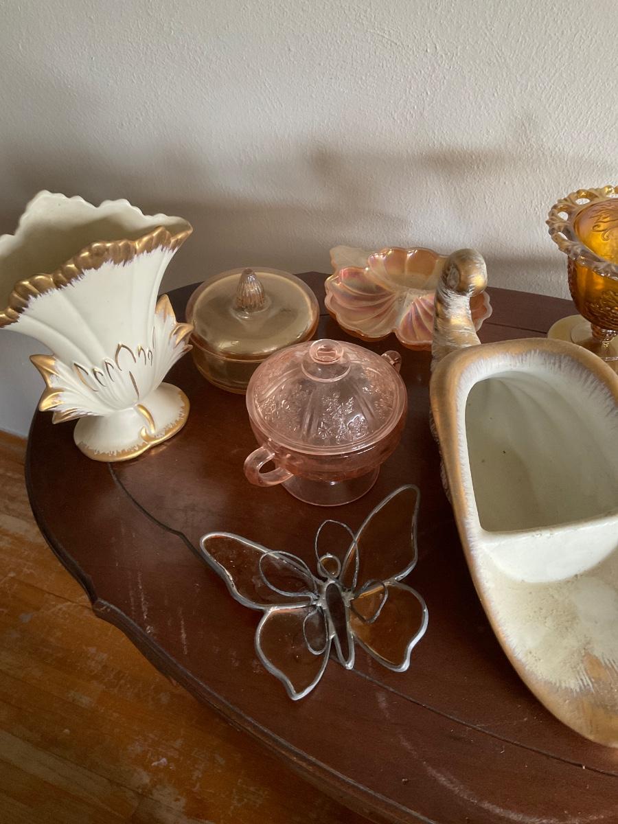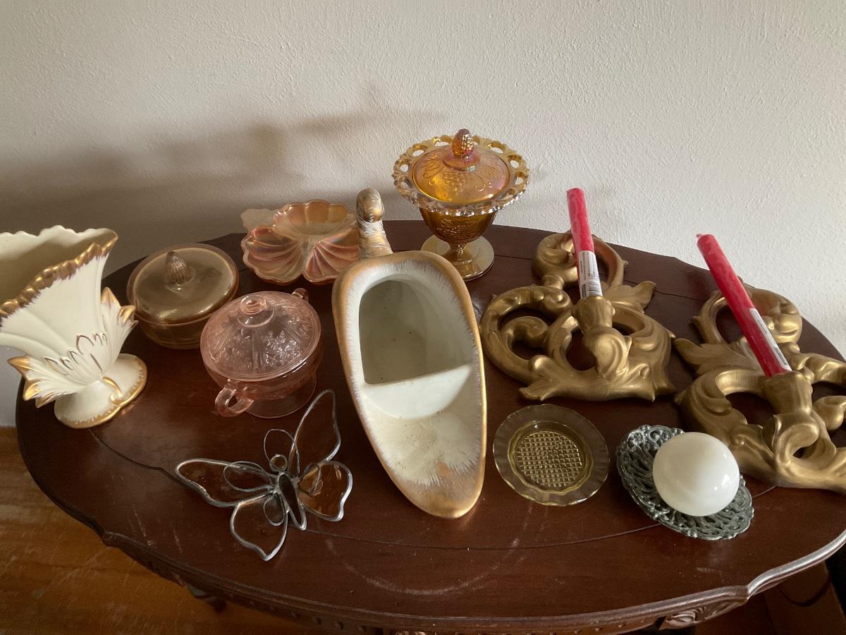 Carnival glass, gold items