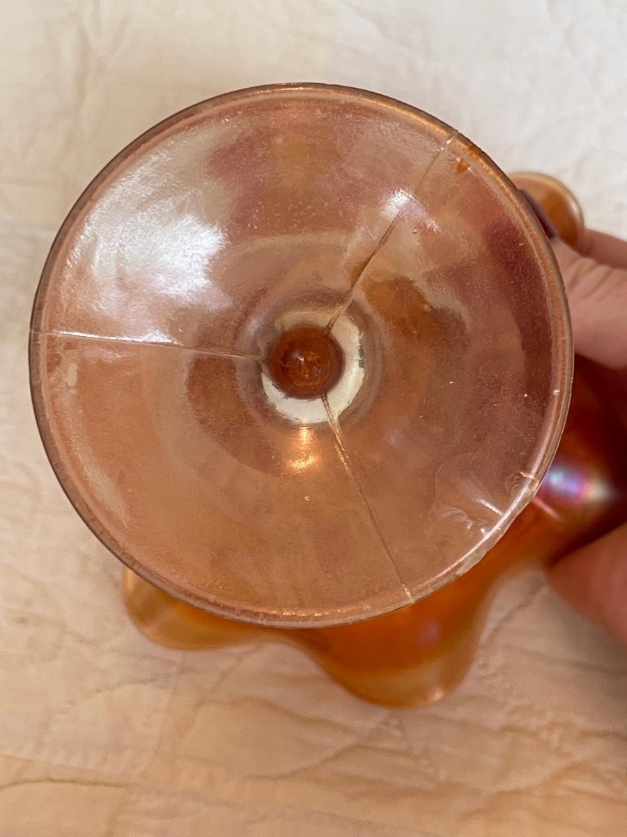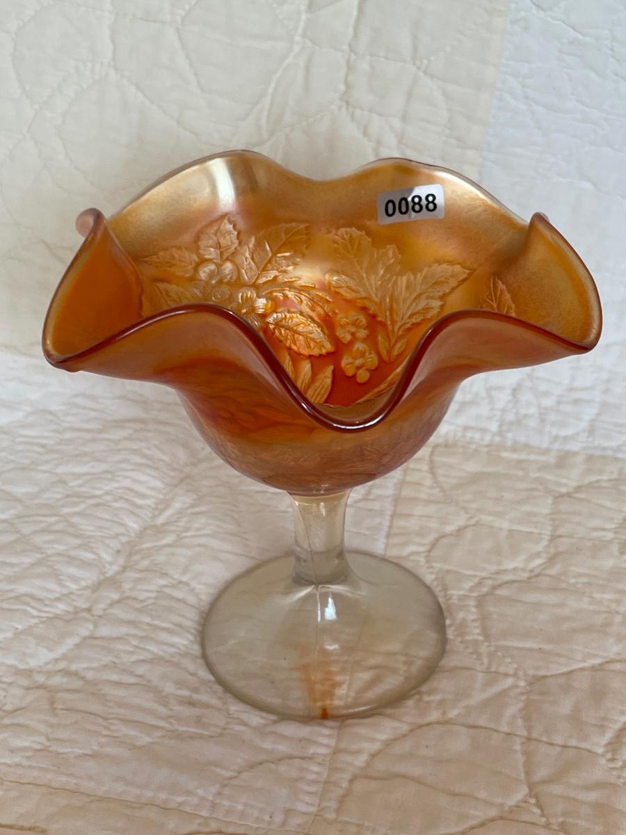Carnival glass marigold ruffled compote dish