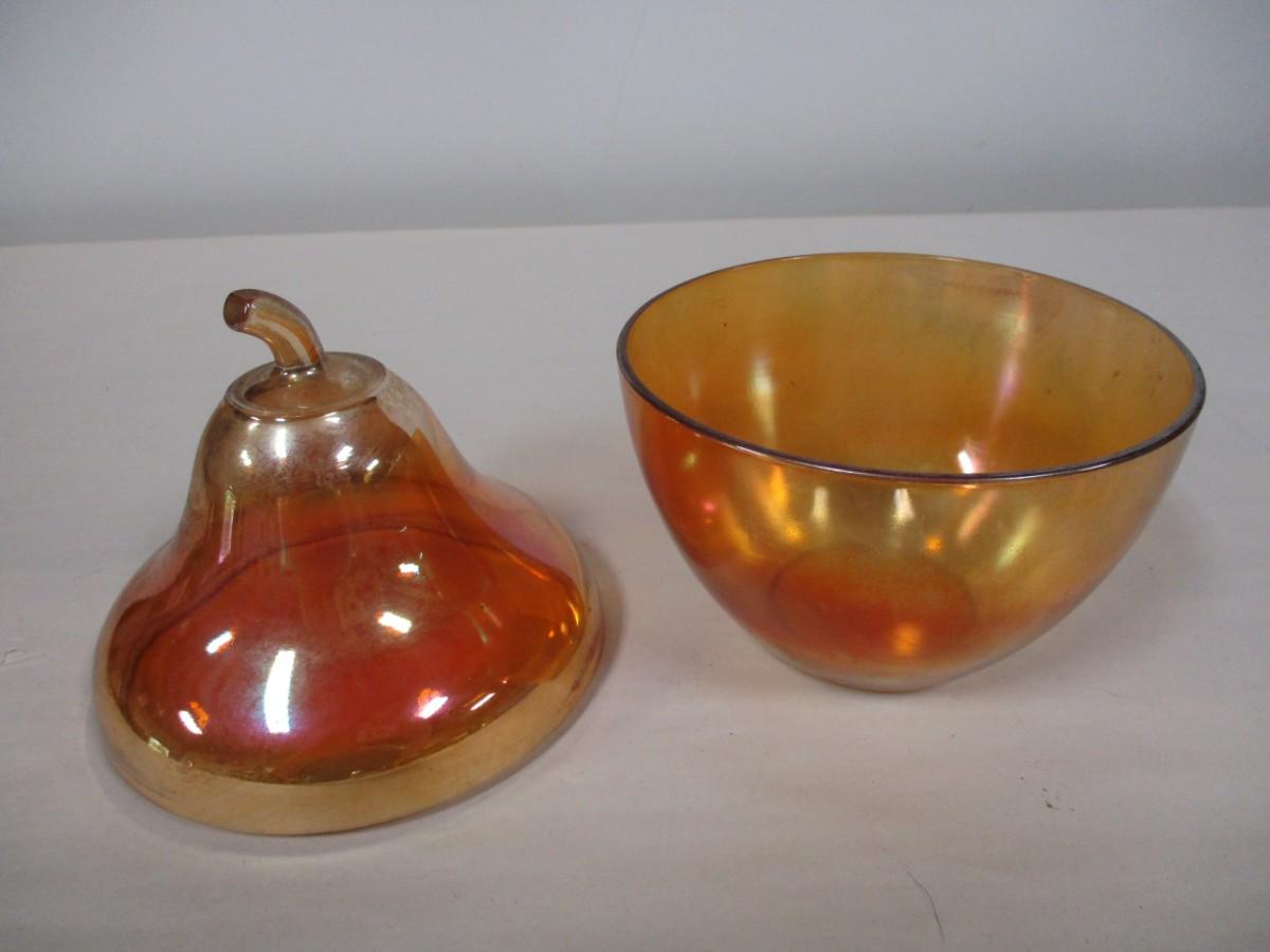 Carnival Glass Pear Shaped Lidded Jar