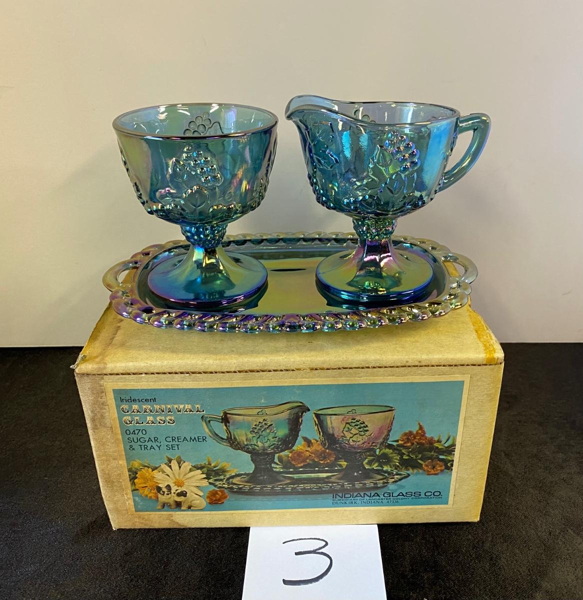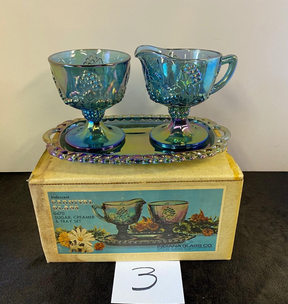 Carnival Glass Sugar, Creamer and Tray