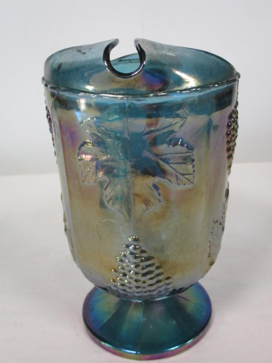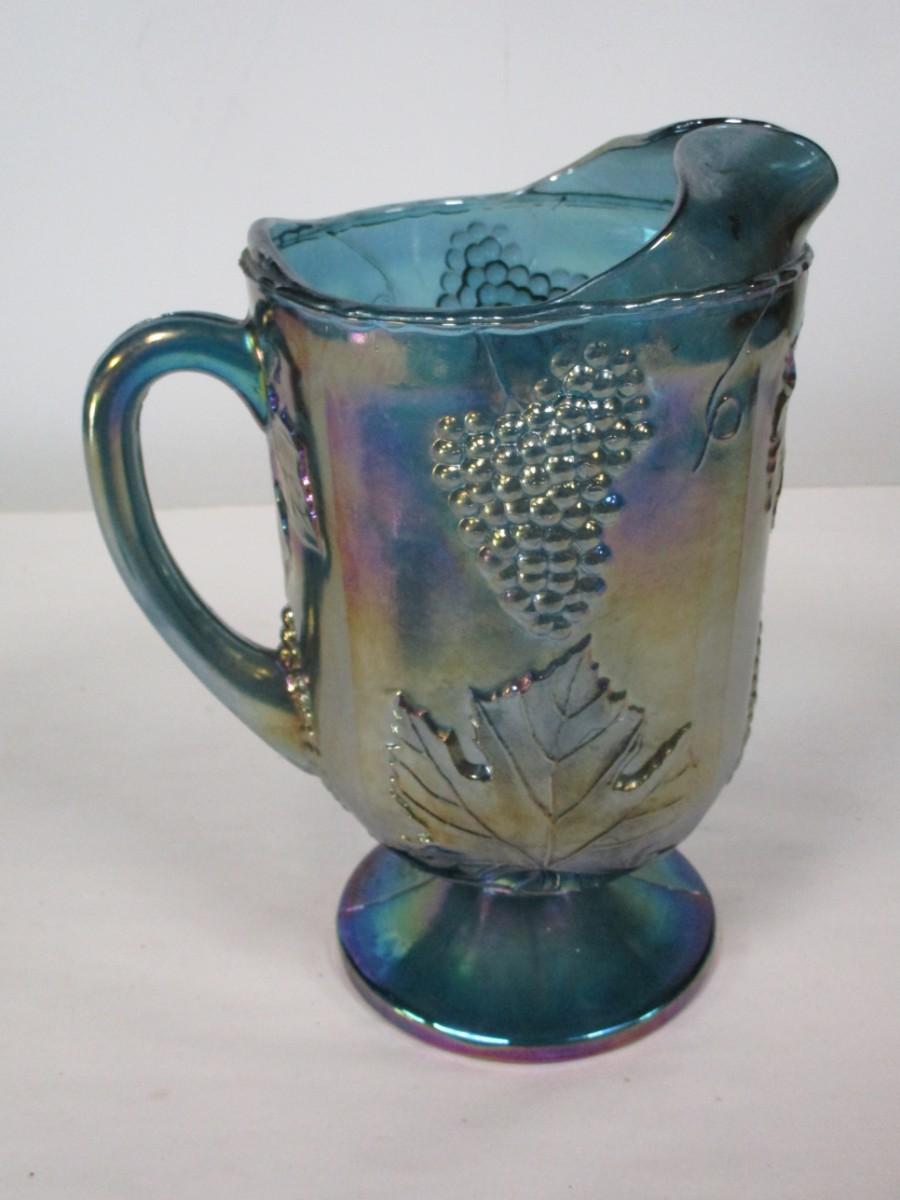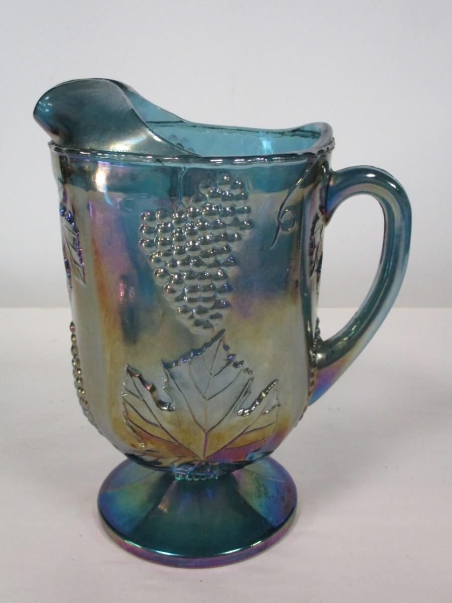 Carnival Glass Grape Leaf Design Tall Water Pitcher
