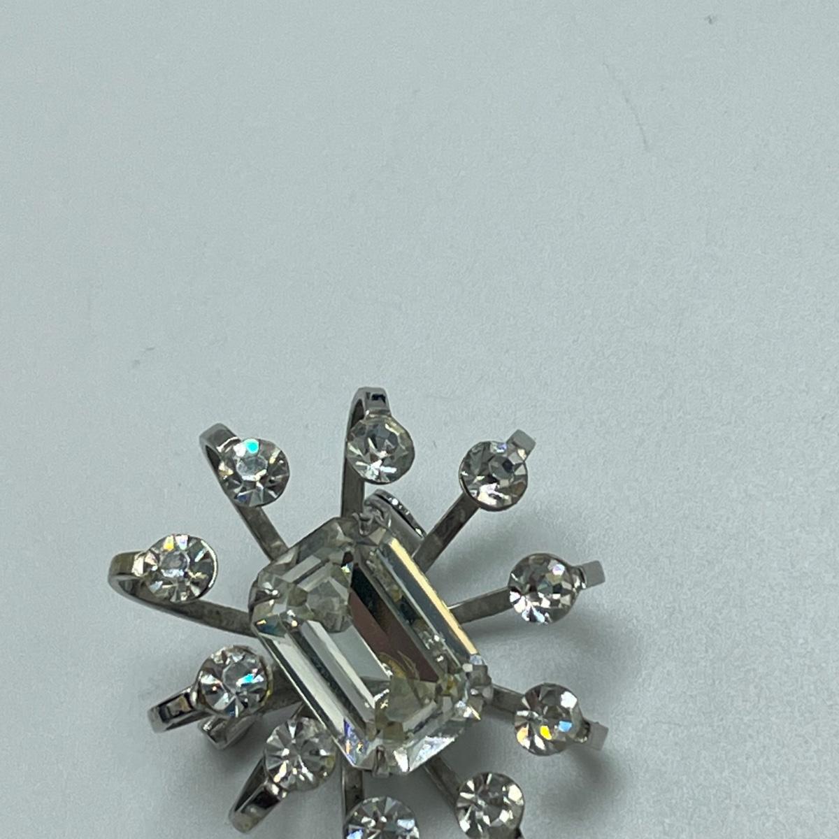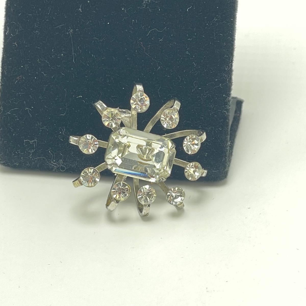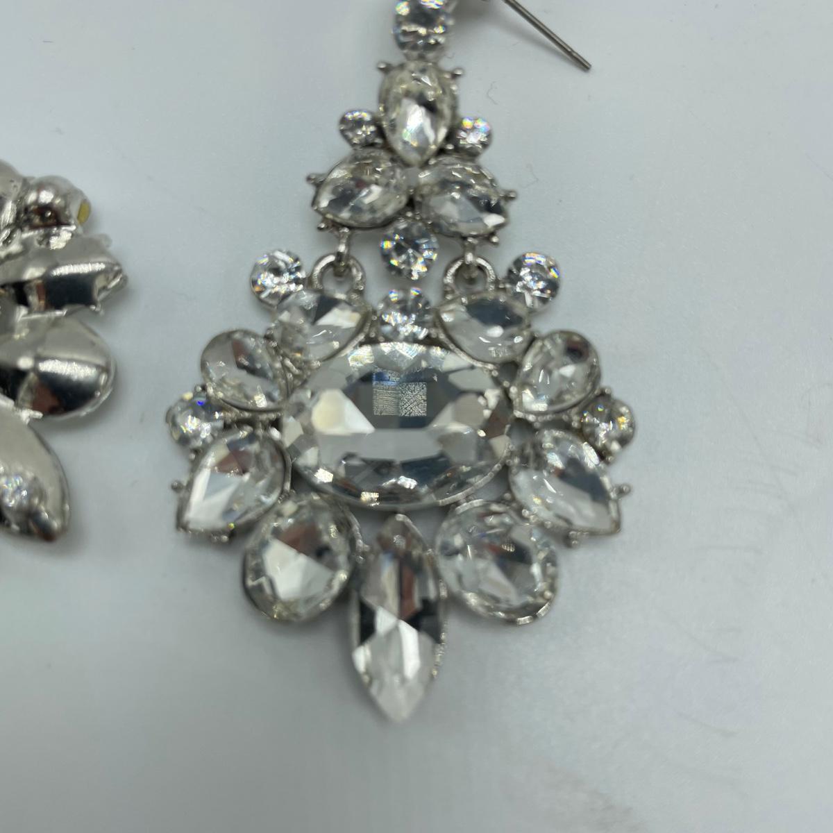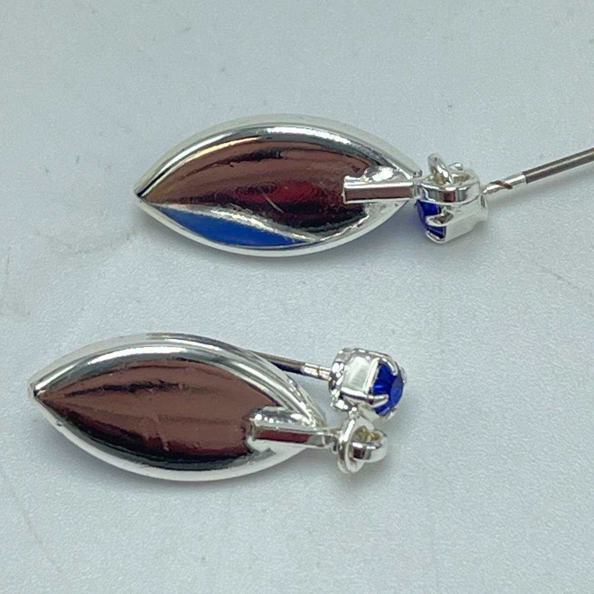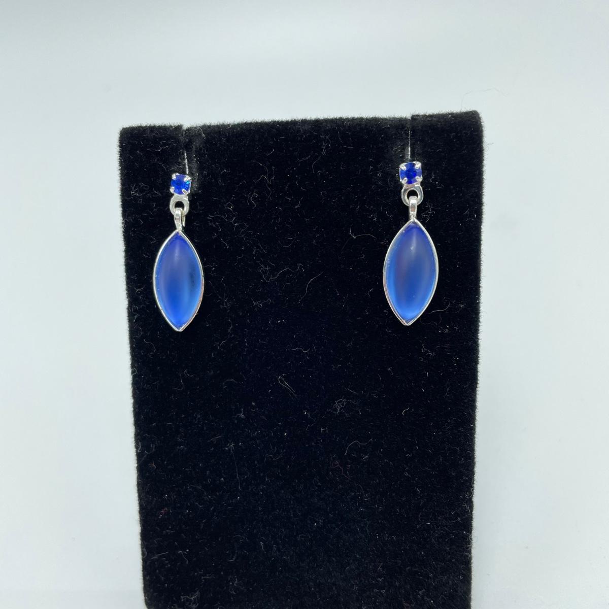 Sparkling Caro brooch with a complementing pair of earrings. These large earrings also have a sparkly gem on the back side. Lastly, a sapphire colored stud with a polymer style dangle set of earrings. See images. Shipping available.