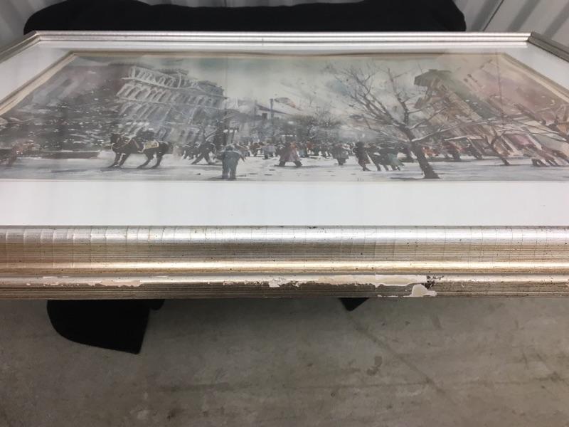 Overall measurements, with mat and frame, is 320w x 26”h.