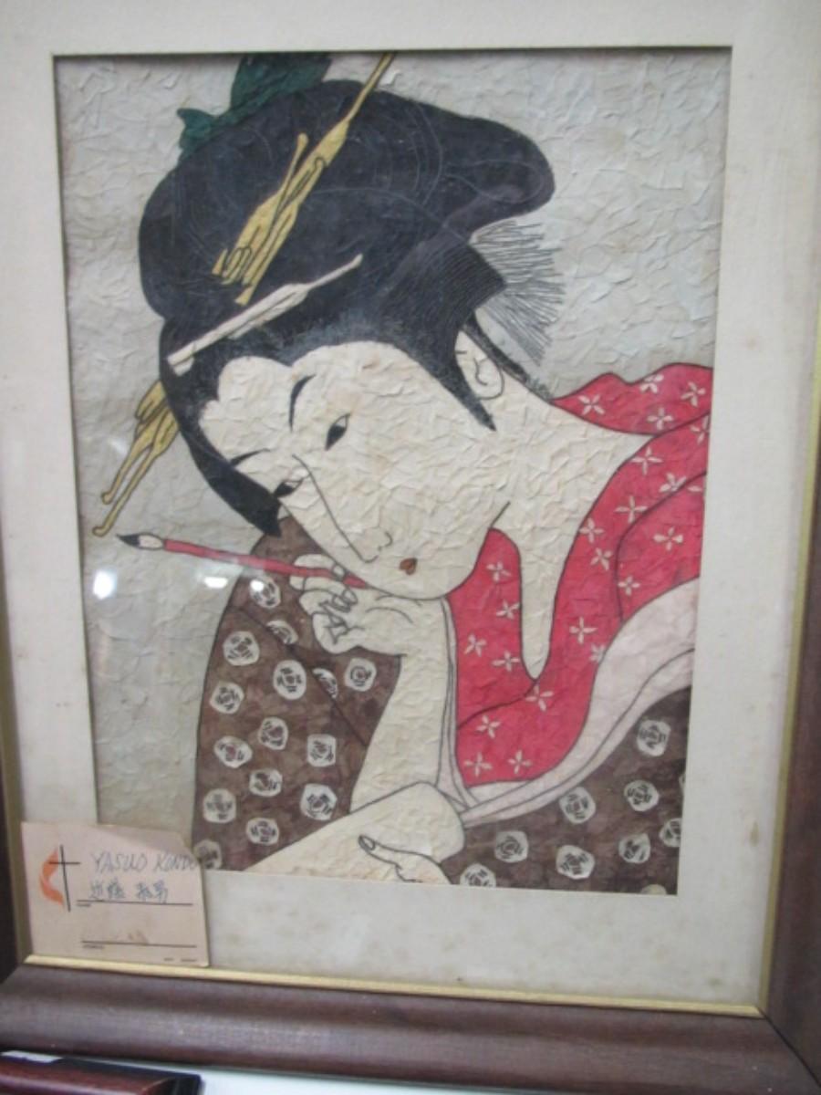 Carolyn Oltman Prints & Yasuo Kondo Wood Block Print On Textured Paper Geisha Portrait