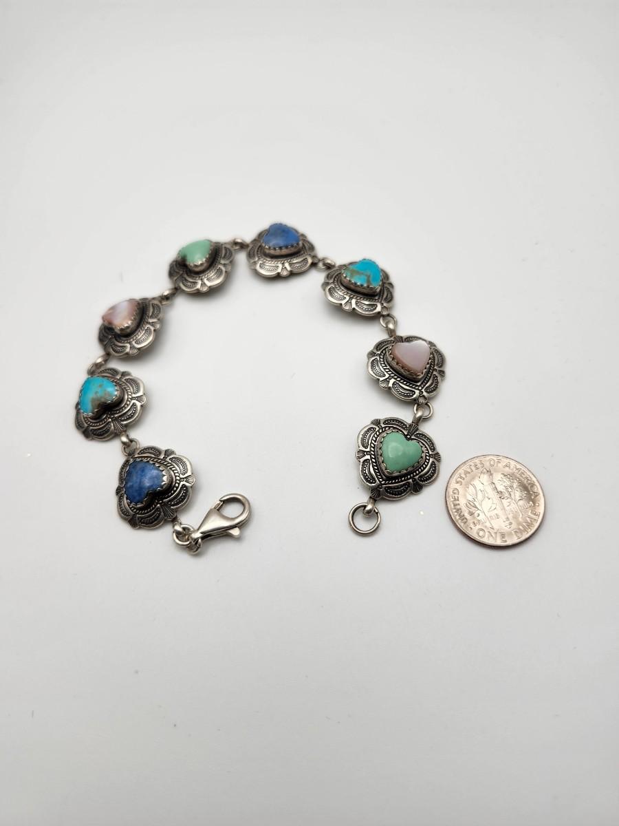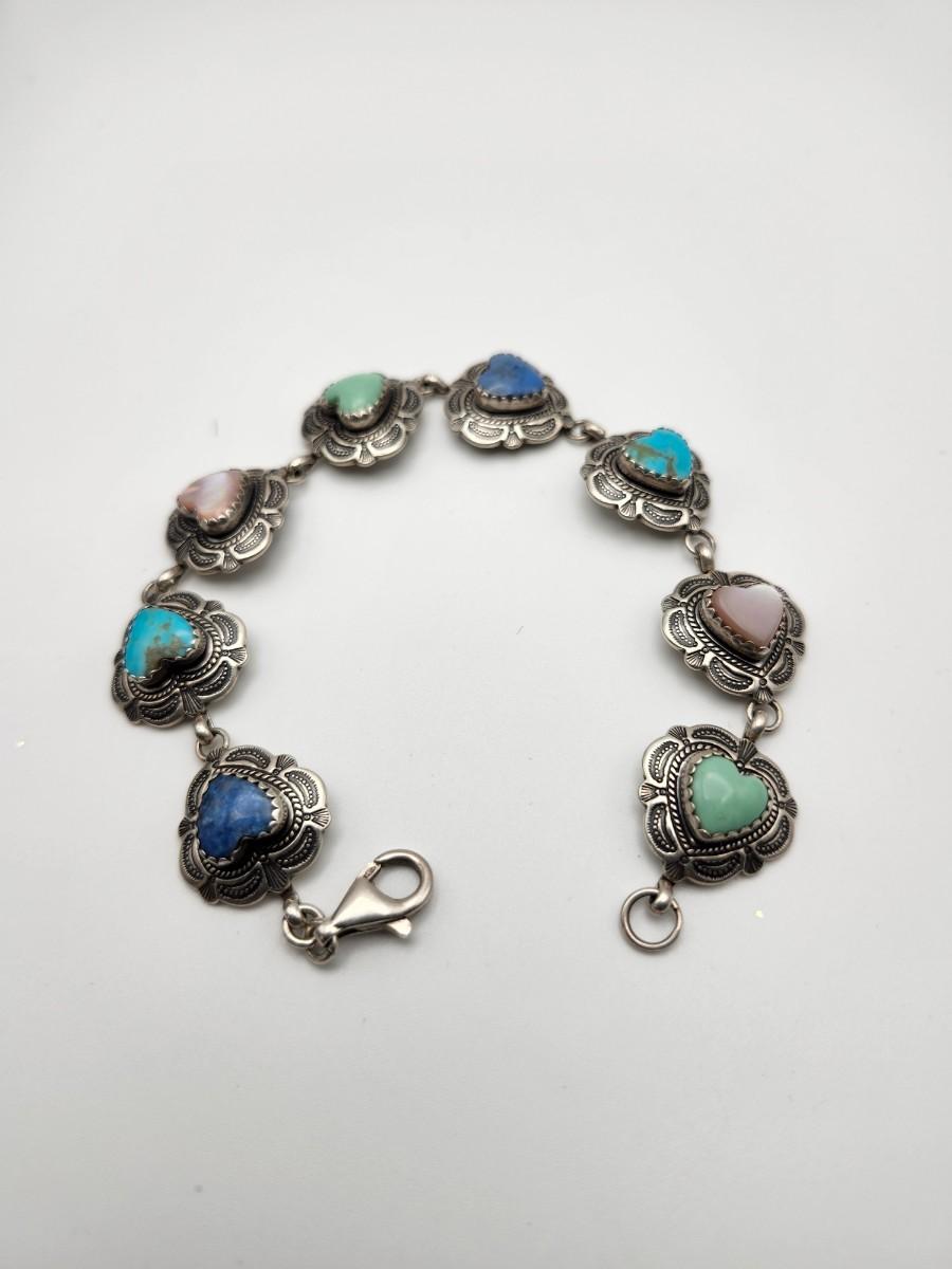 Stamped 925 Multi gemstones set in heart shaped conchos