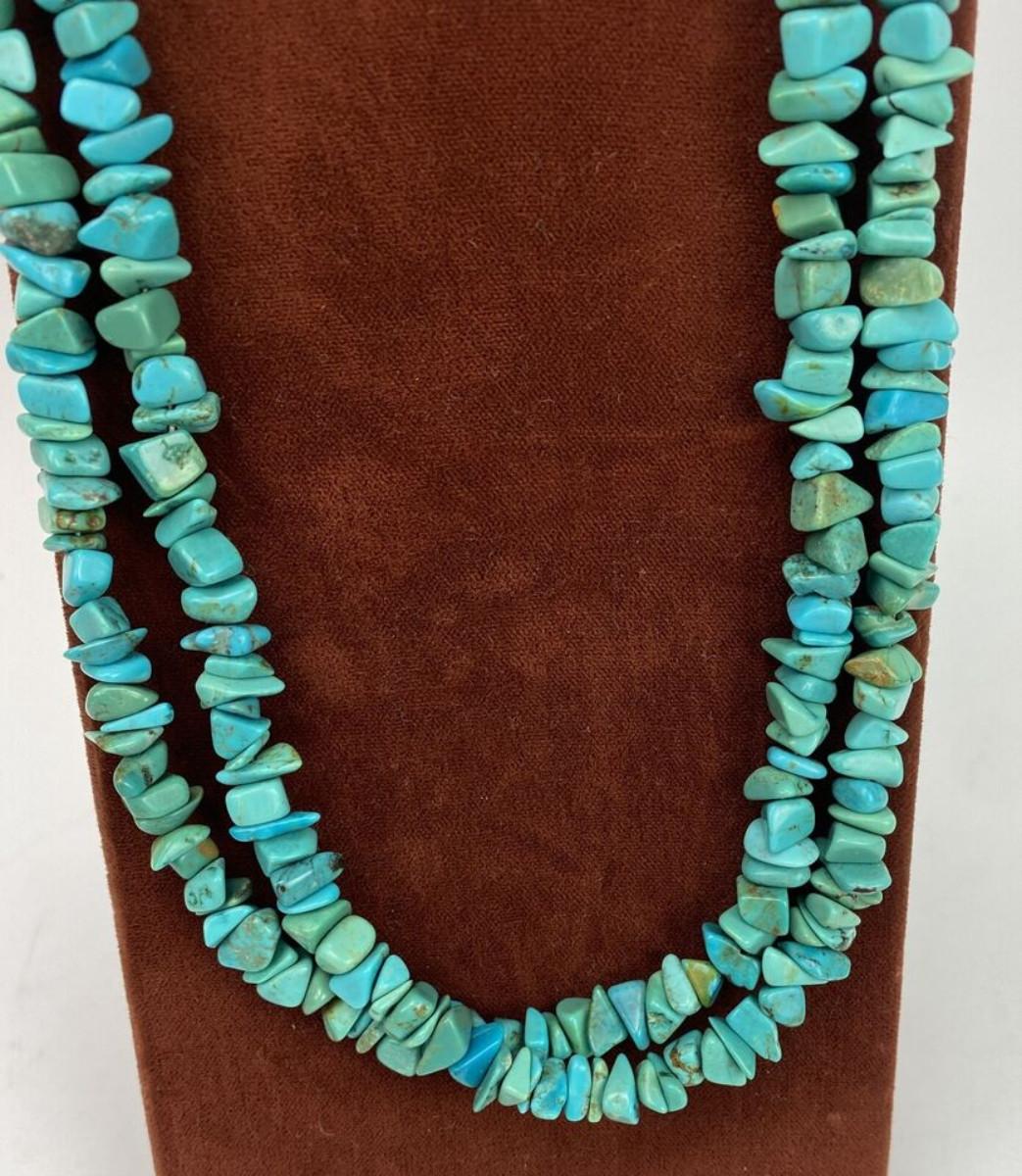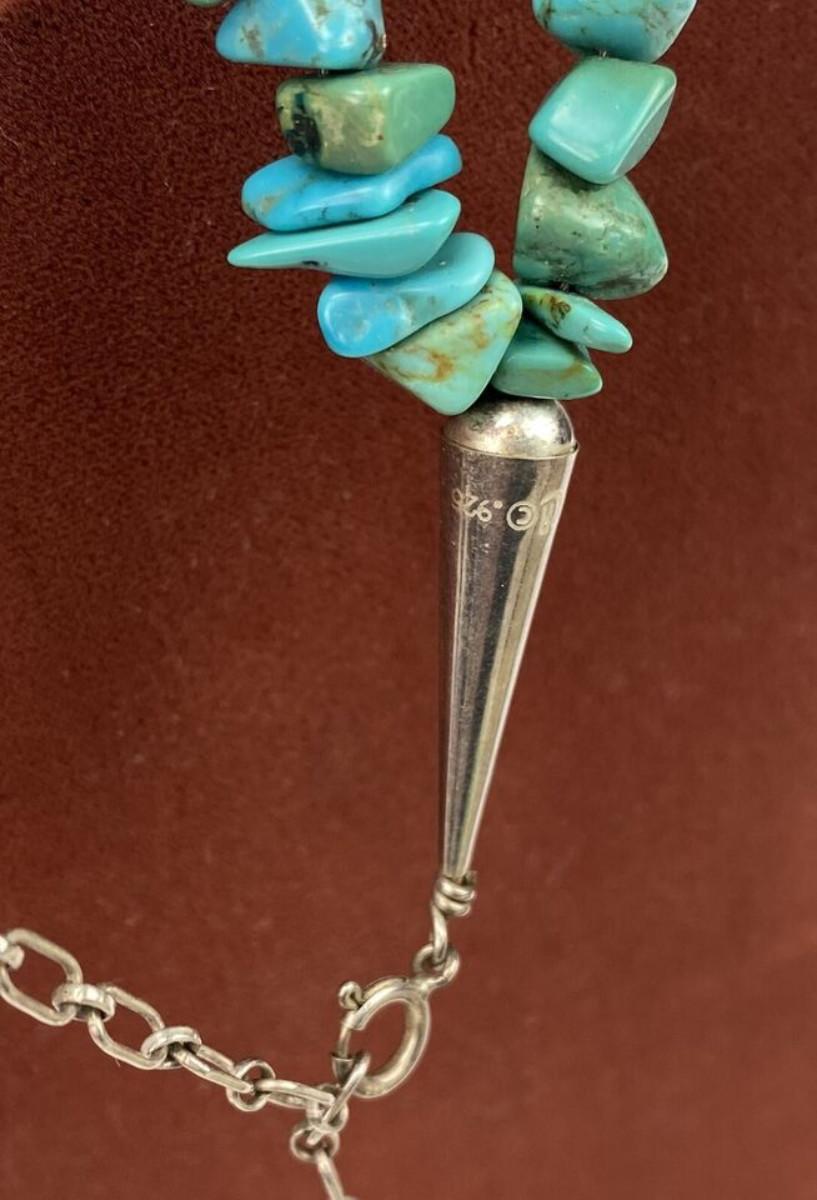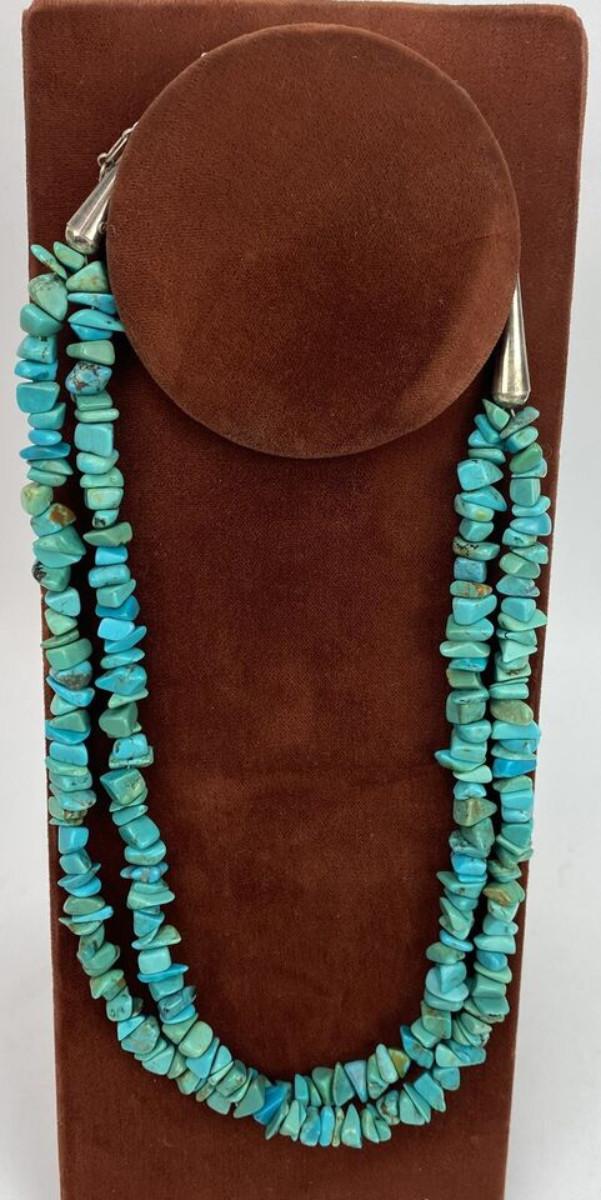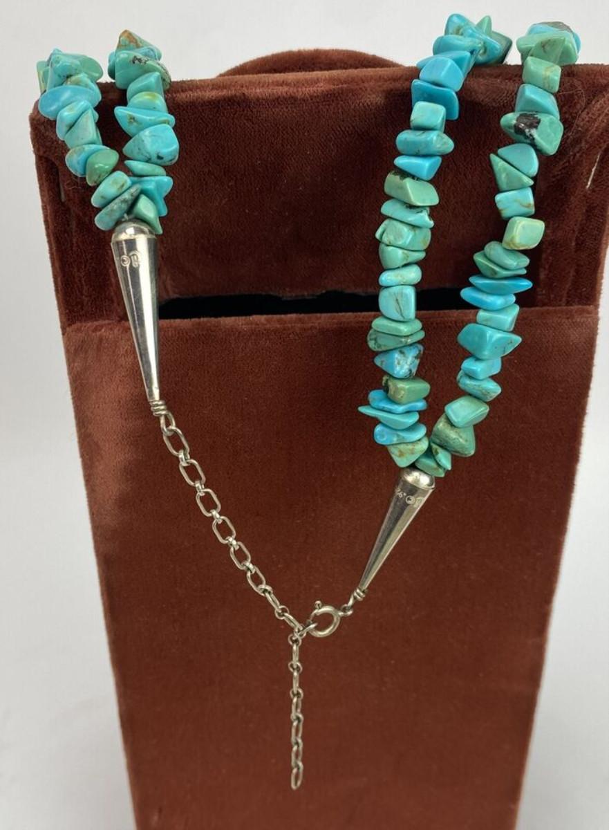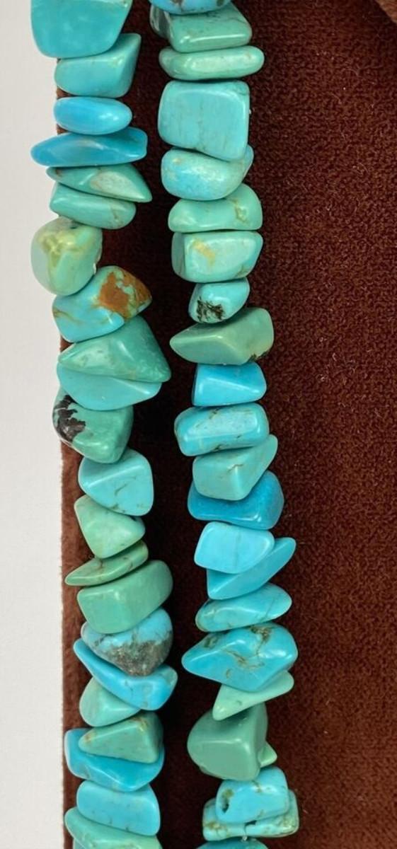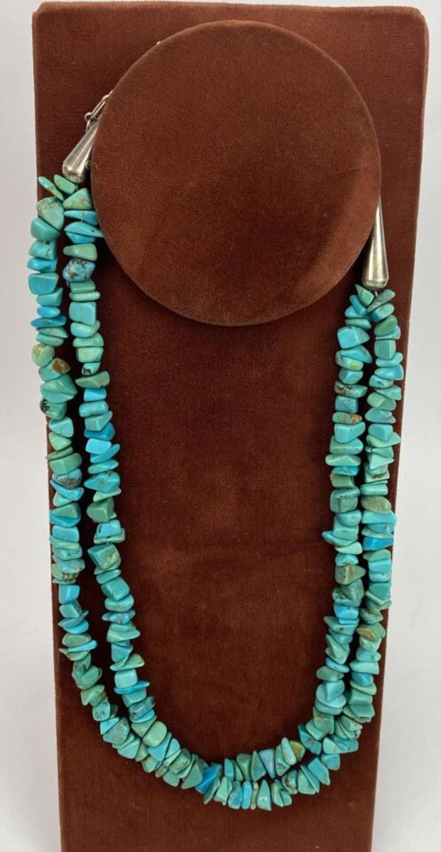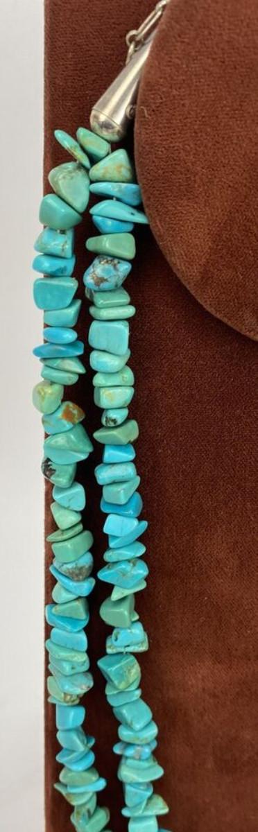 Here is a Southwestern style Double Strand Turquoise Nugget and Sterling Silver Necklace designed by Carolyn Pollack for Relios..Sterling Silver Cone ends...measures from 17" to 21" with the Sterling Extender Chain...Marked with the Crescent and 925 on the Spring Ring class., Very Good condition on this estate find...Total weight 60.1 grams