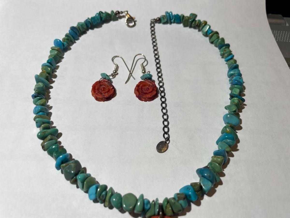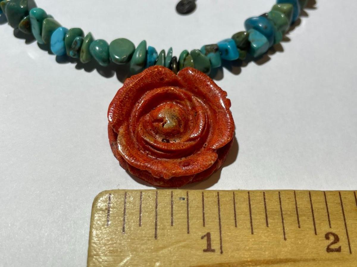 Carolyn Pollack Sterling Silver 925 Turquoise Coral Rose Pendant Necklace 16-20" Adjustable in VG Preowned Condition. $5 Domestic Shipping.