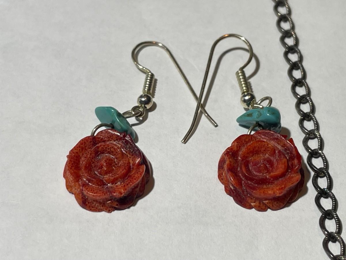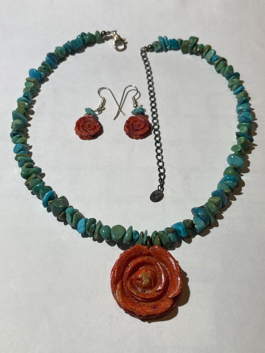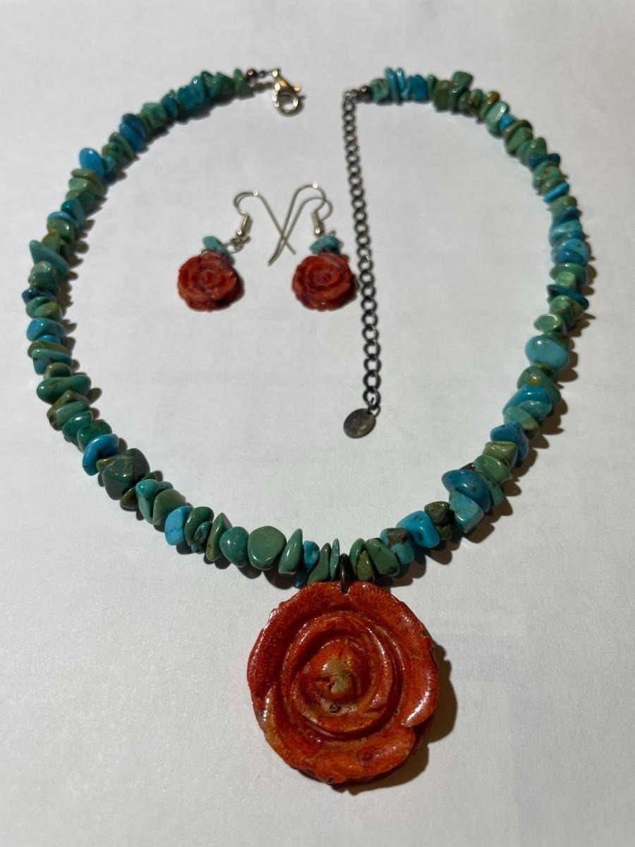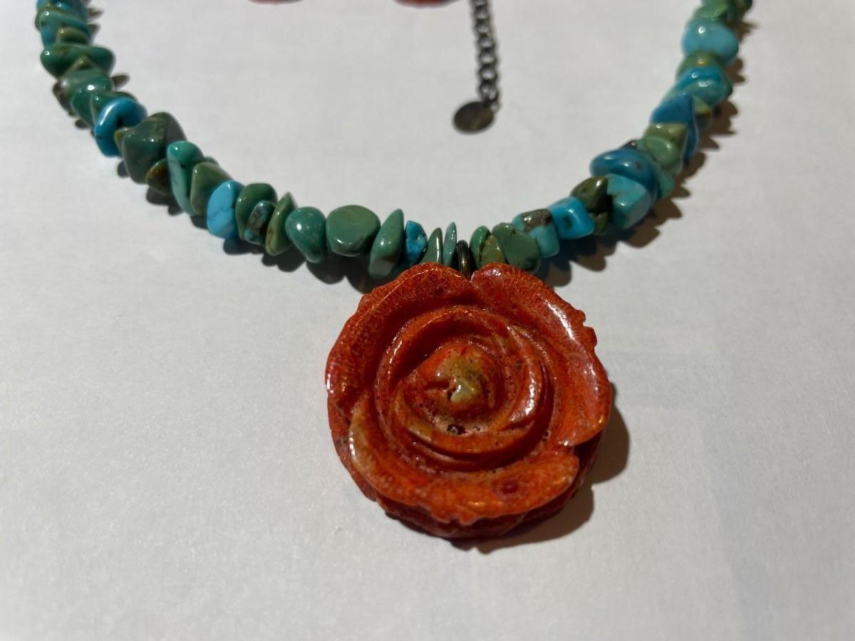 Carolyn Pollack Sterling Silver 925 Turquoise Coral Rose Pendant Necklace 16-20" Adjustable in VG Preowned Condition. $5 Domestic Shipping.