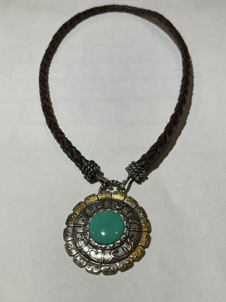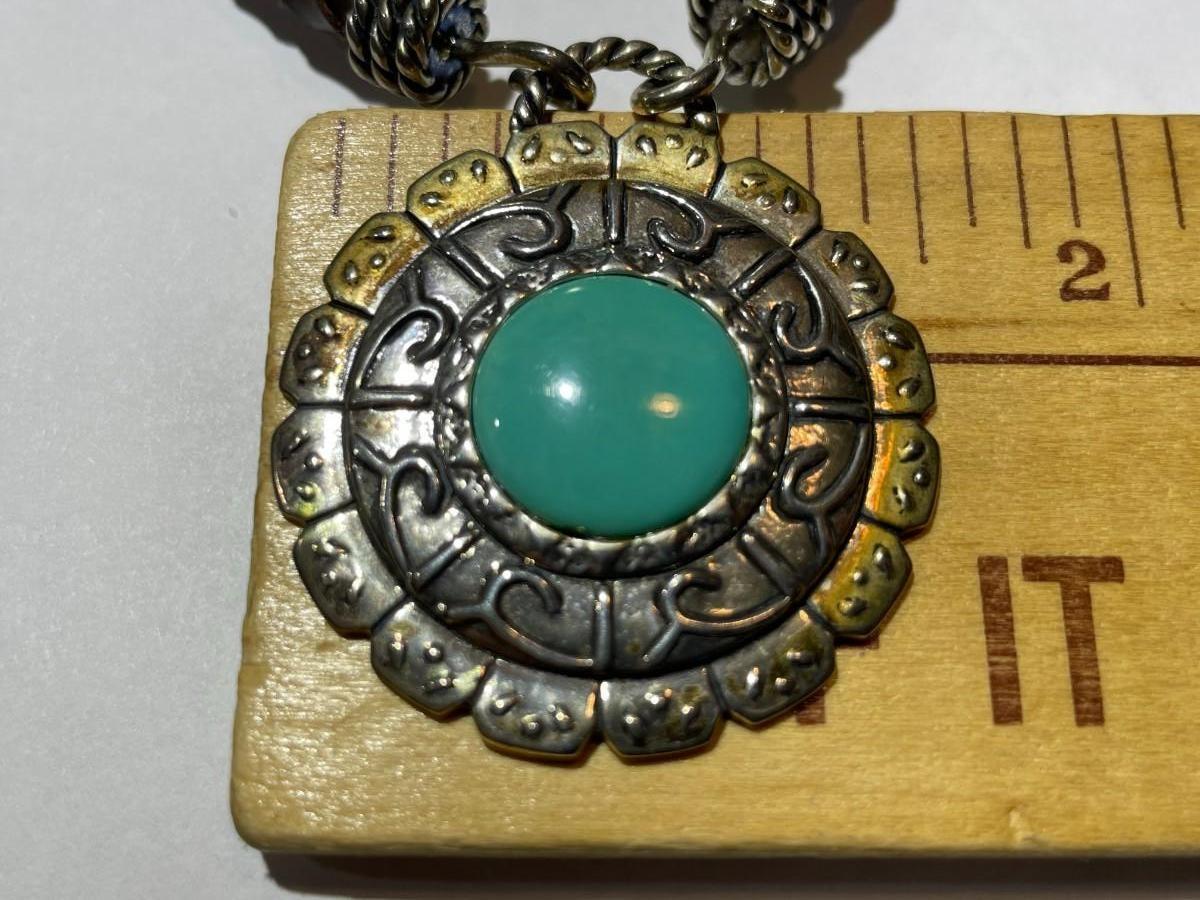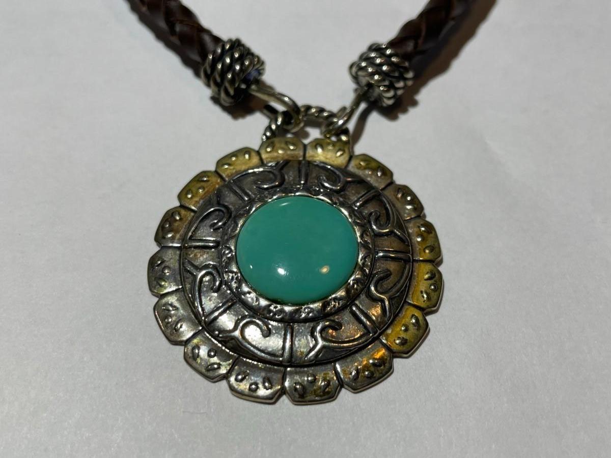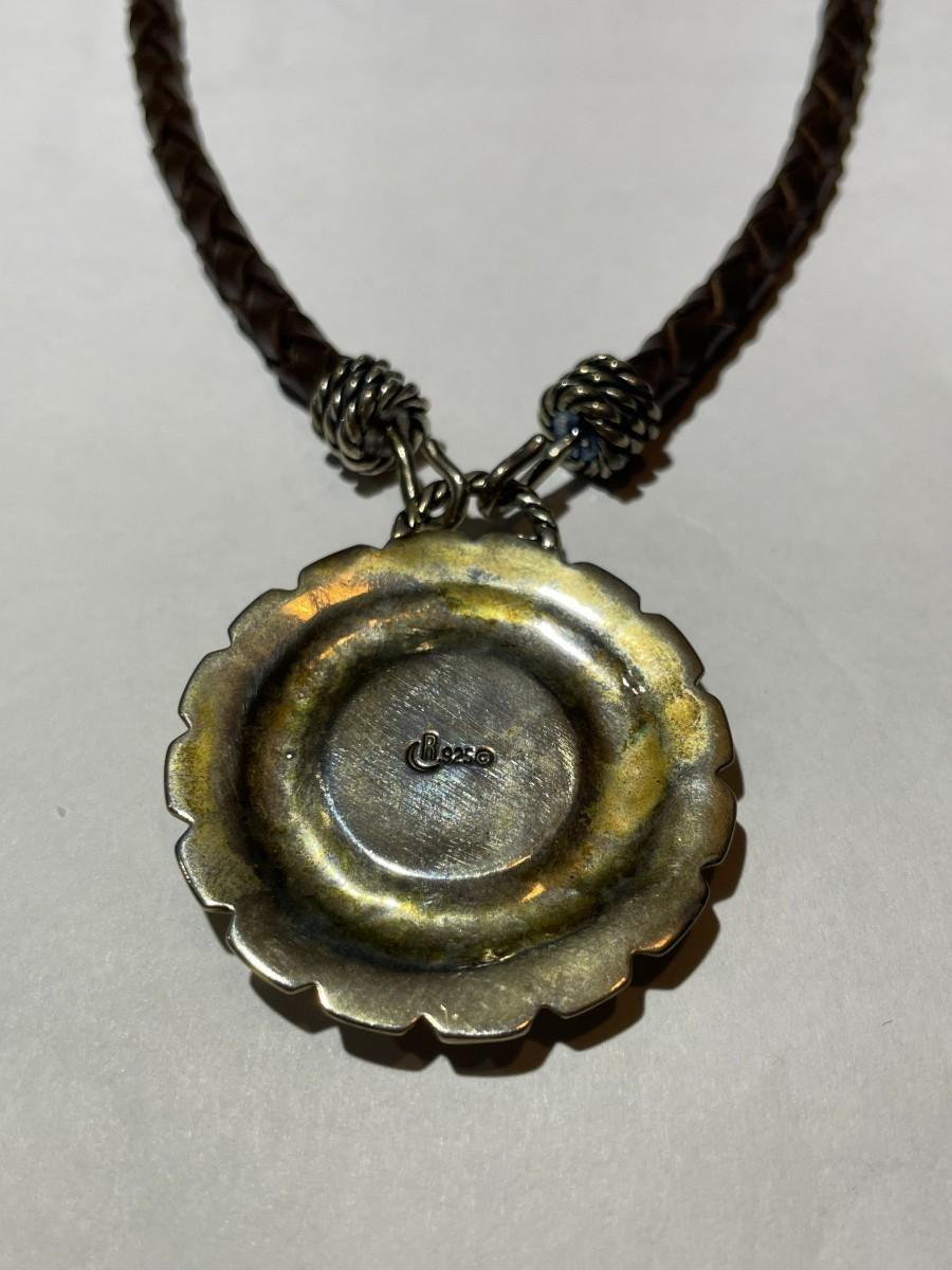 Carolyn Pollack/Relios Sterling Silver 925 Turquoise Color Pendant w/Leather Necklace 15" in VG Preowned Condition. (Jewelry #55). $5 Domestic Shipping.