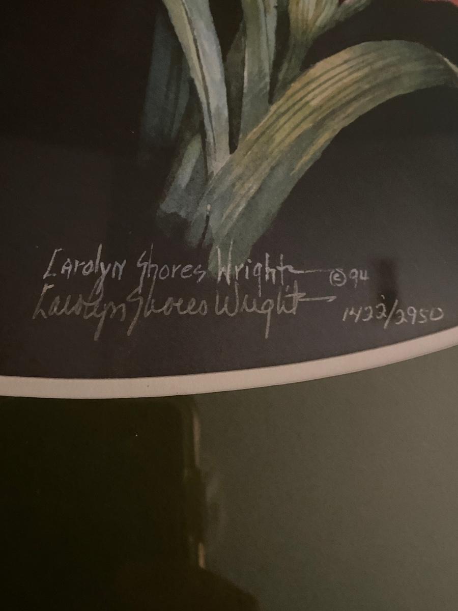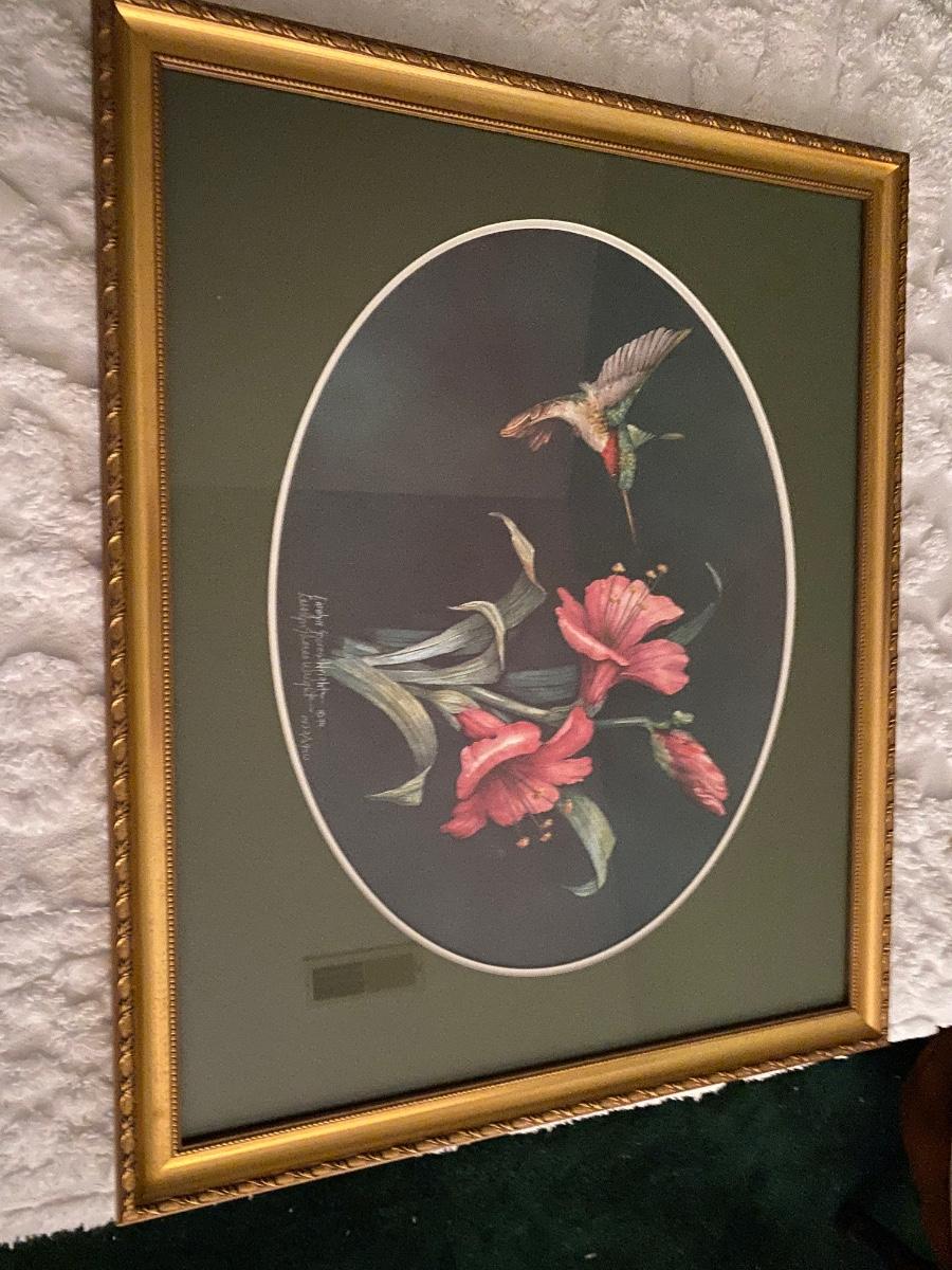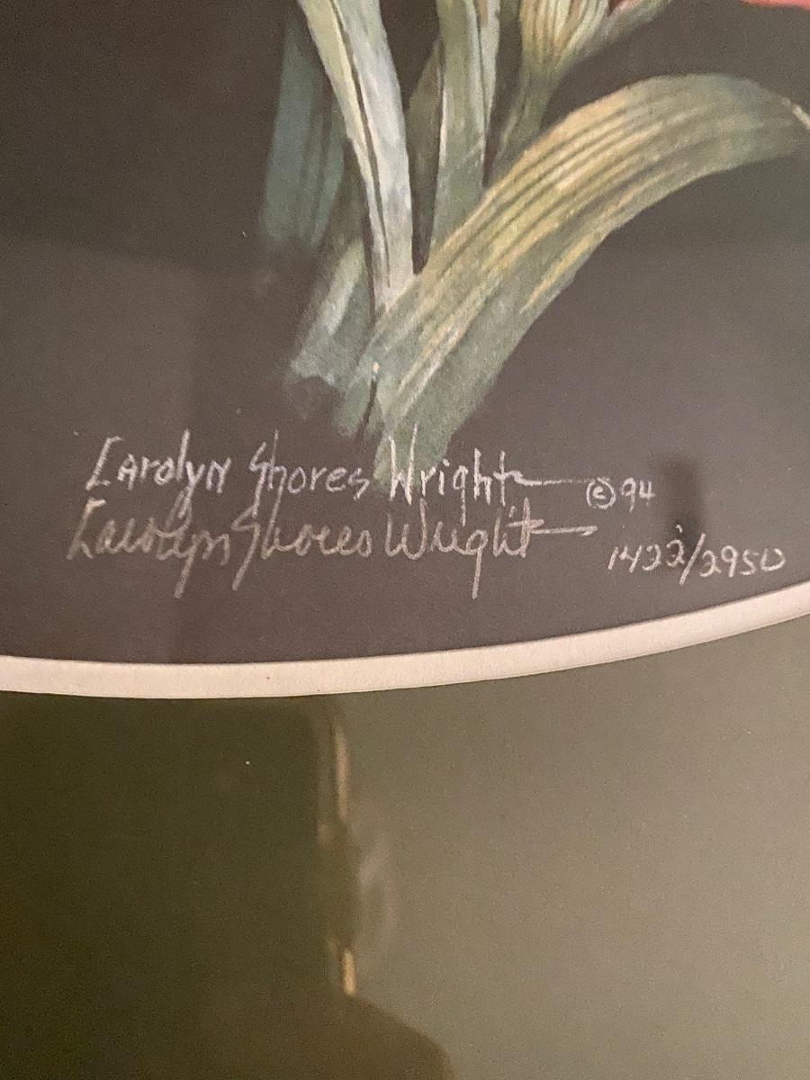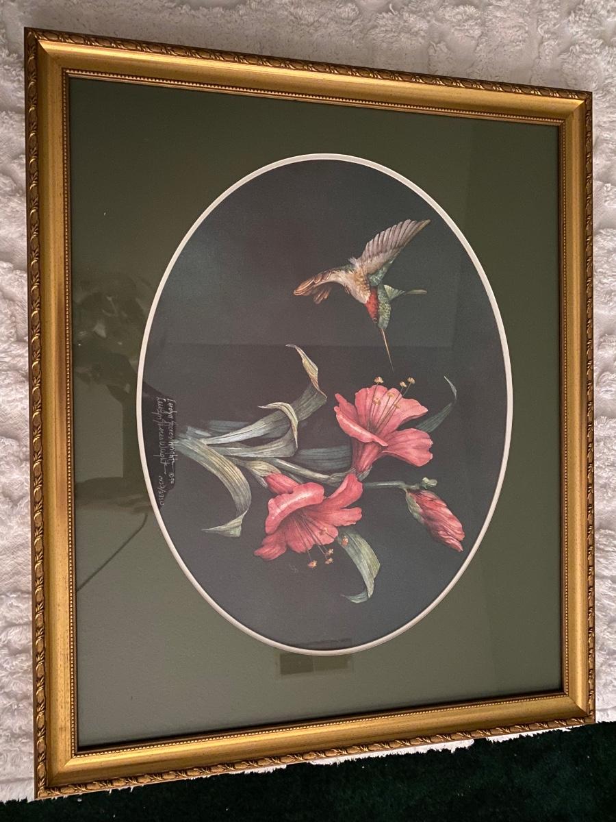 Carolyn Shoars Wright Signed Numbered Humming Bird Print, Includes 2 Framed Iris Pictures
