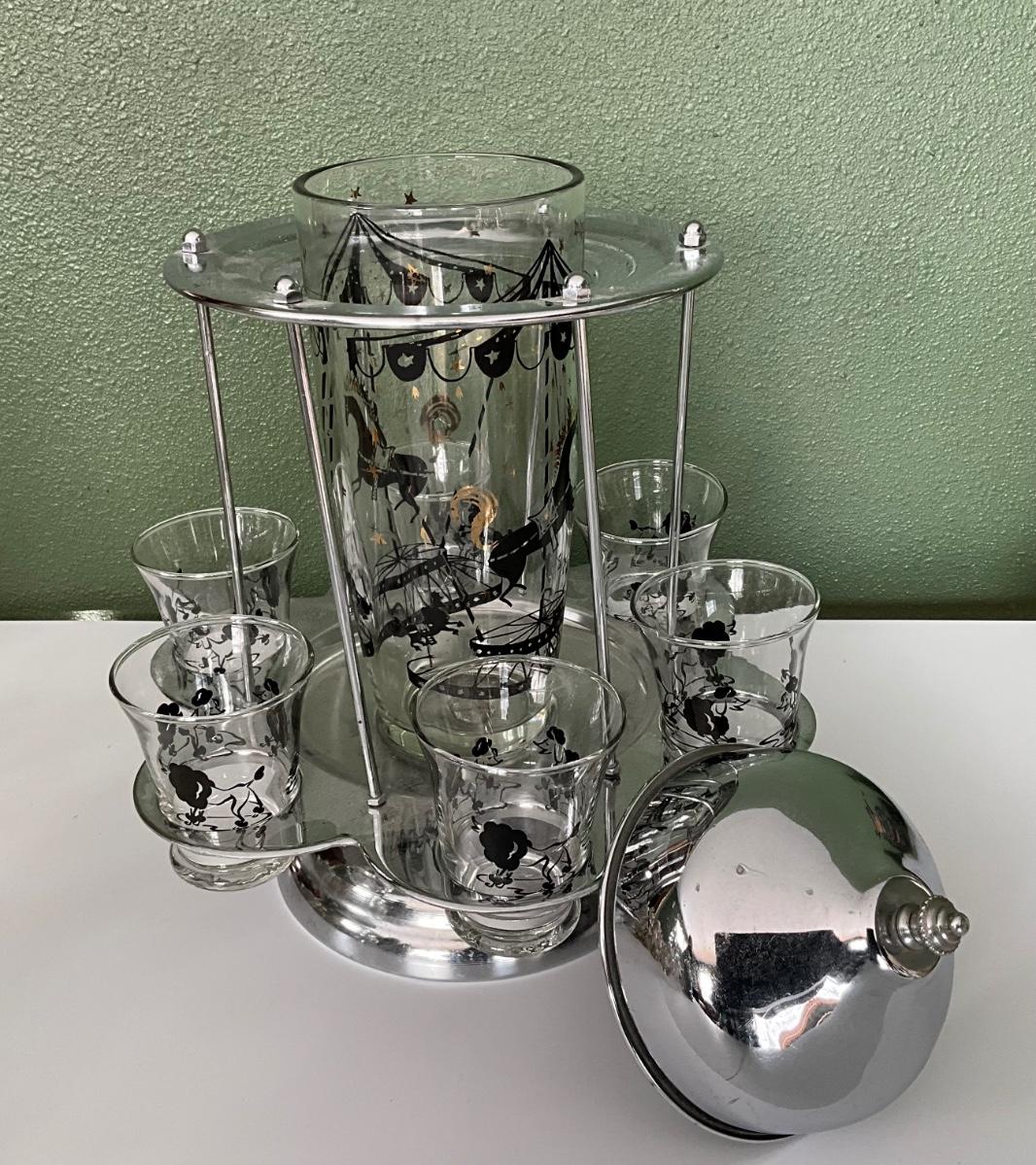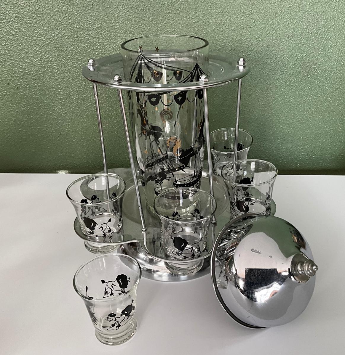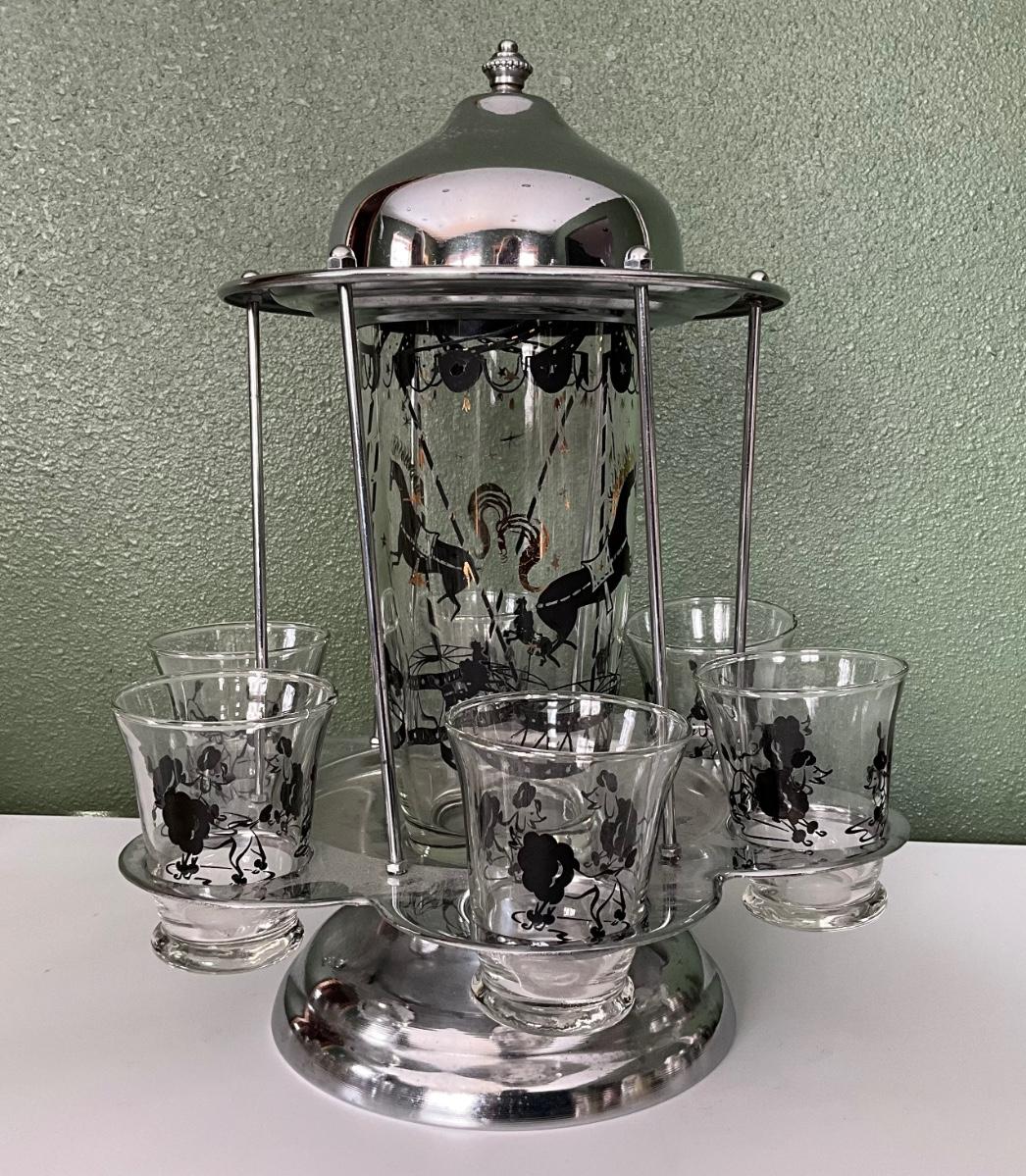 Vtg Carousel Cocktail Shaker Poodle Sits on Chrome Spinning Holder