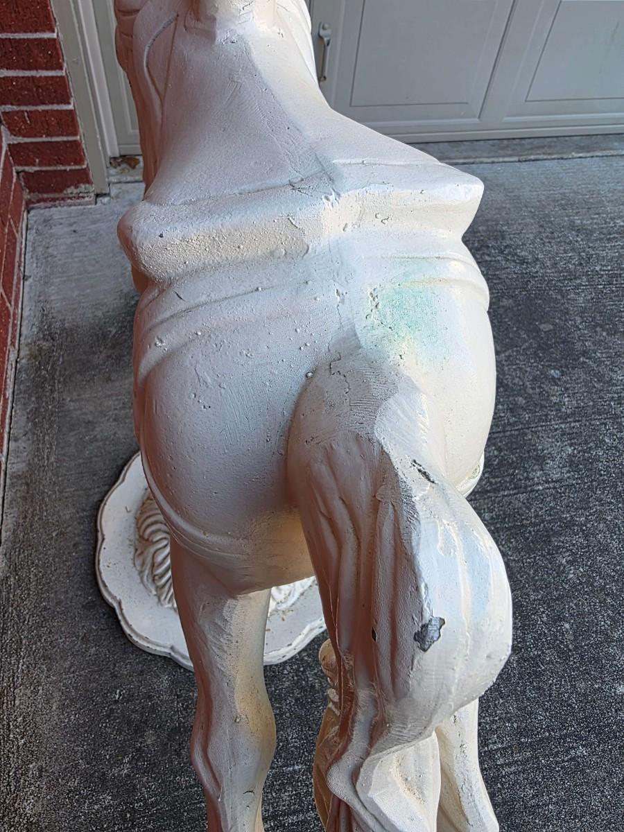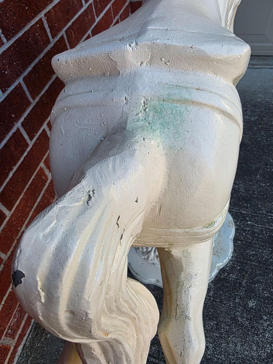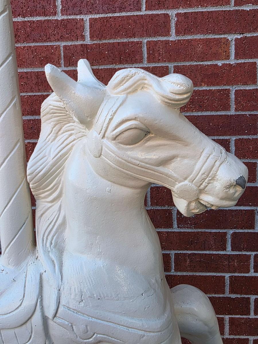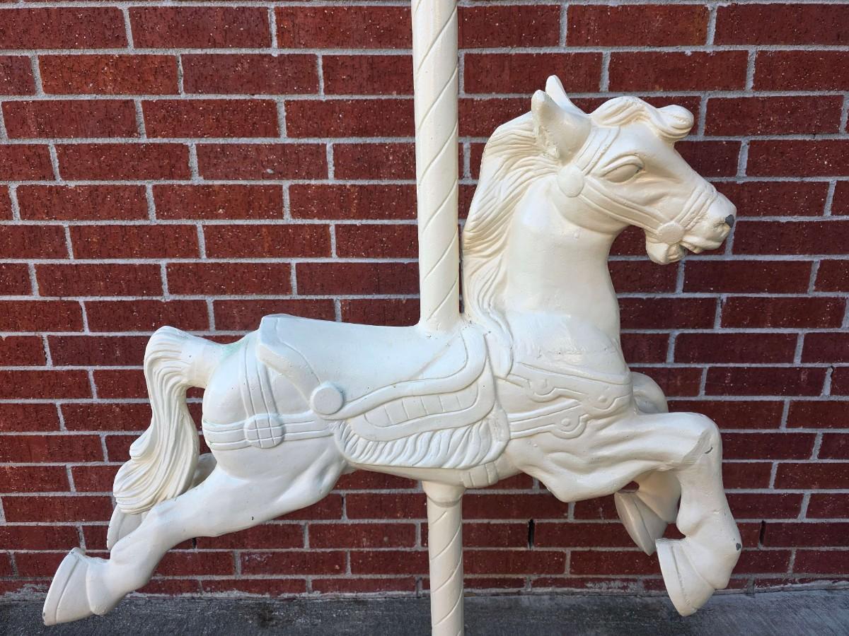Vintage iron carousel horse, a "jumper." It measures approximately 36" wide with the pole measuring approximately 60" tall from base to top).