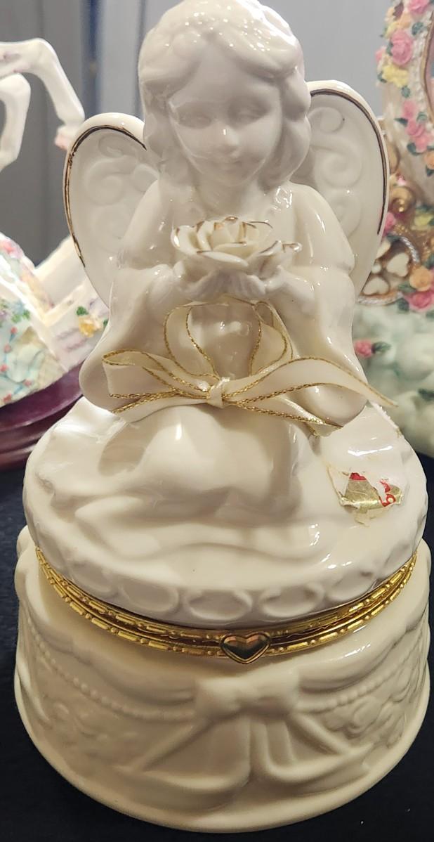 Carousel Horse & Carriage Music Box Frank Sinatra fly me to the moon & Vintage Angel Jewelry Box Trinket Box