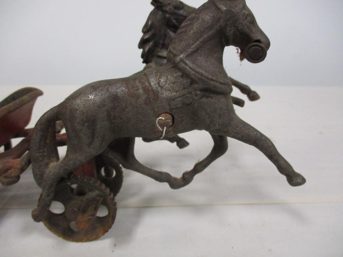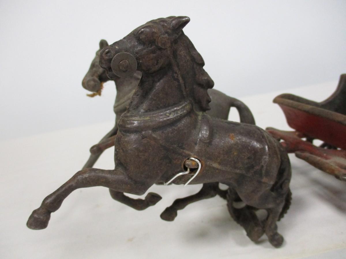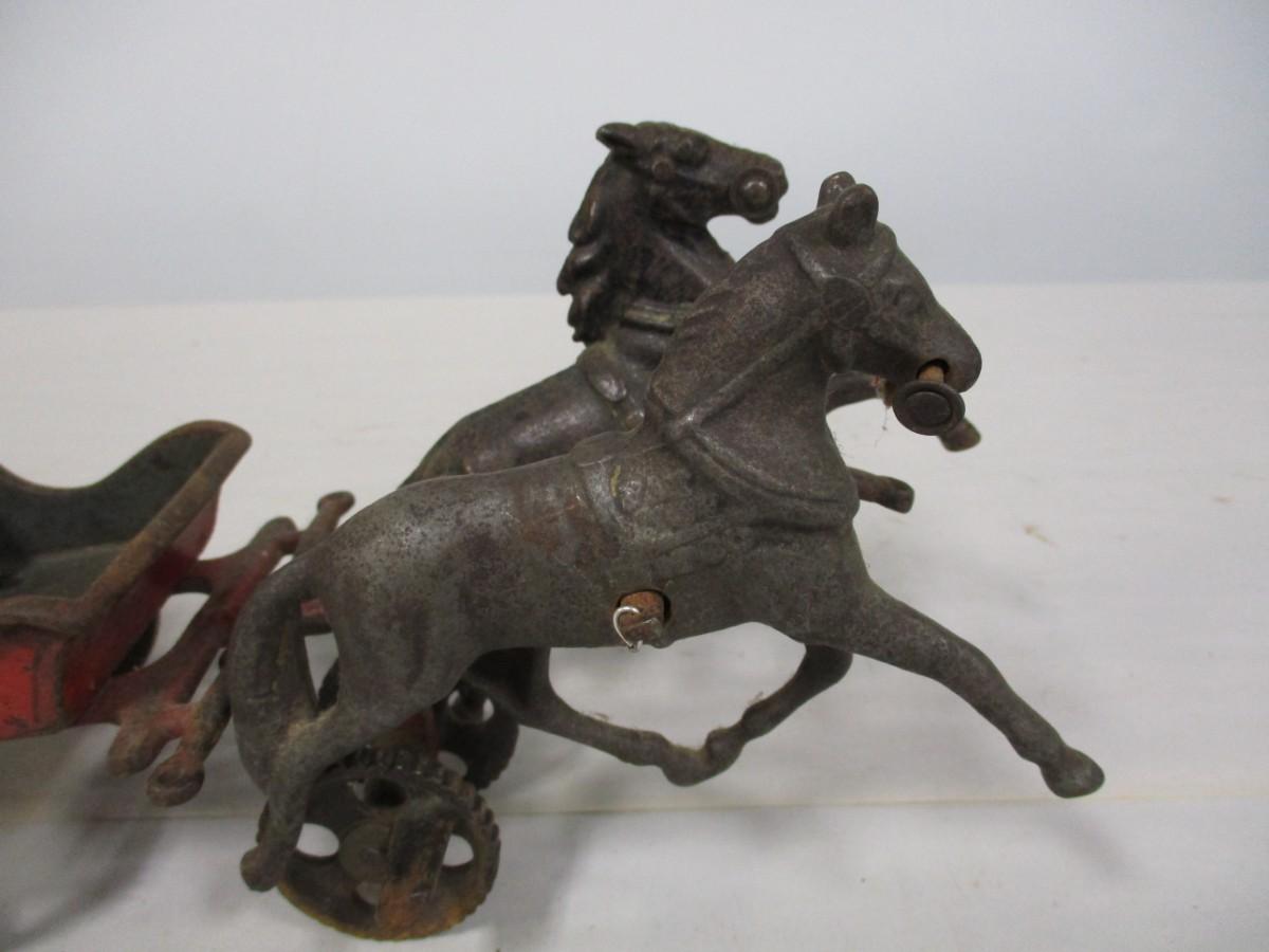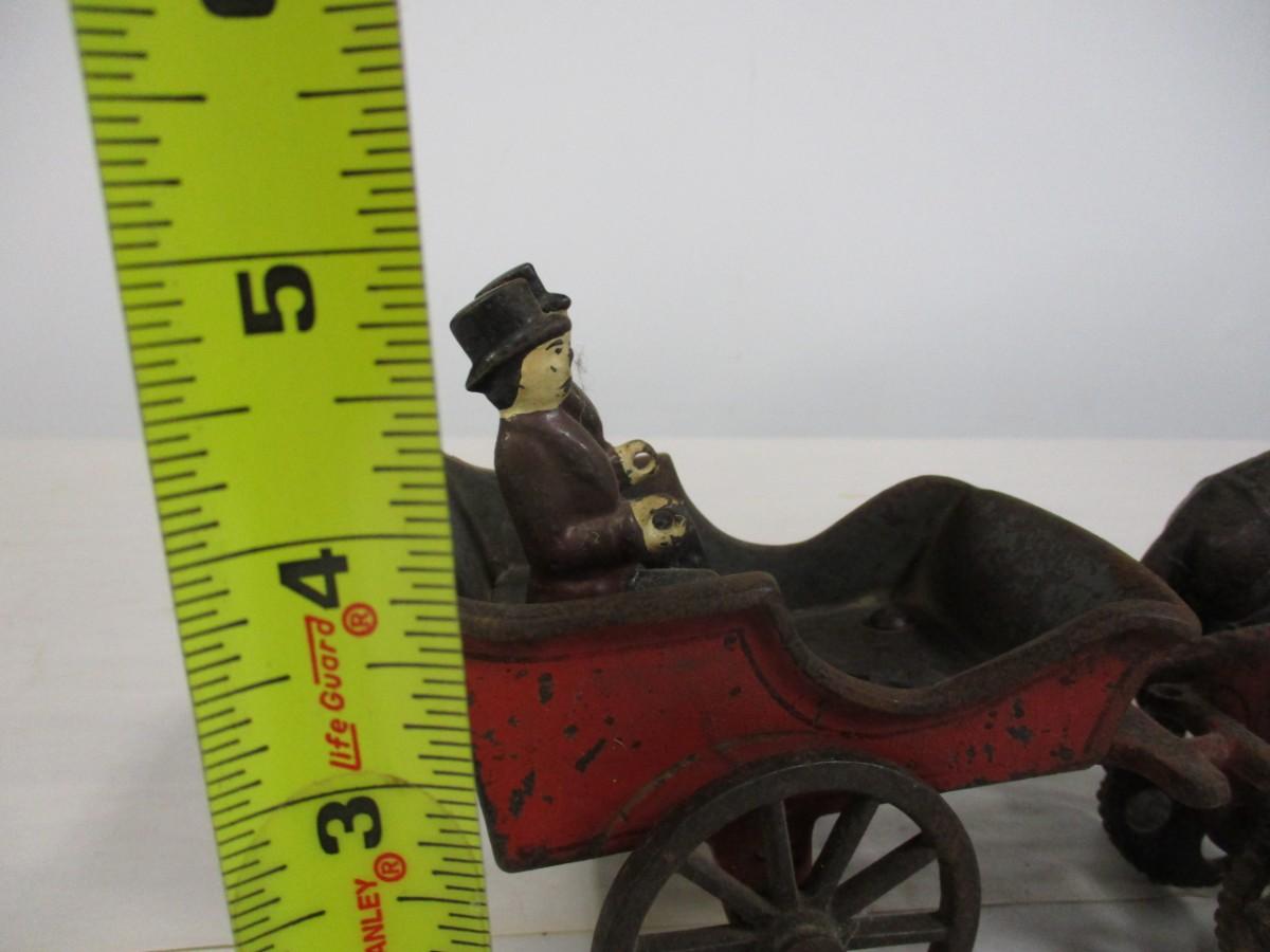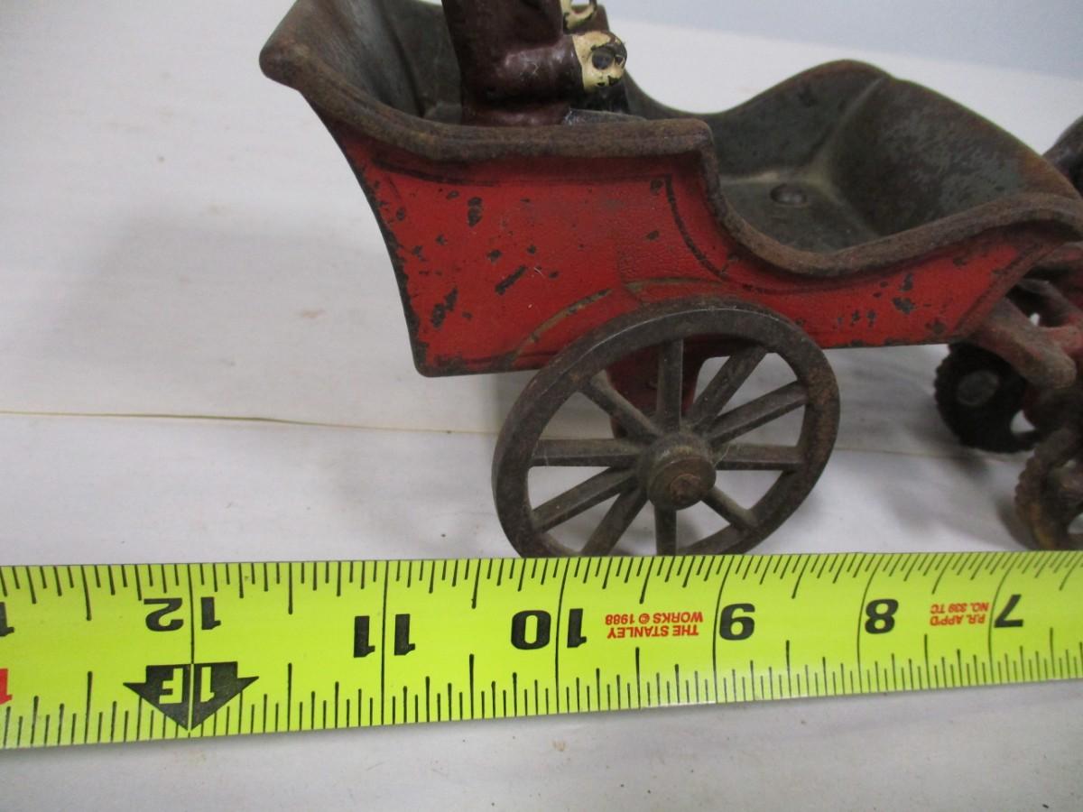 Vintage Carpenter Cast Iron Double Horse Team Drawn Surrey with Drivers