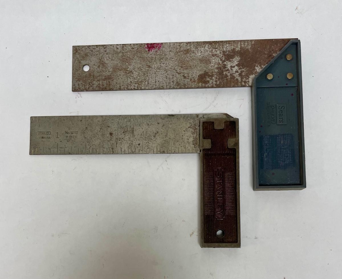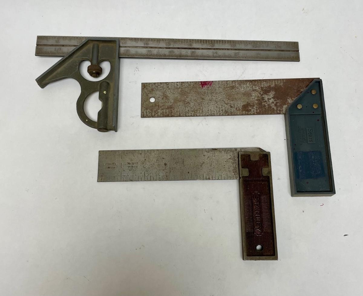 Carpenter squares, different types and sizes. Some rust, but good to fair condition.